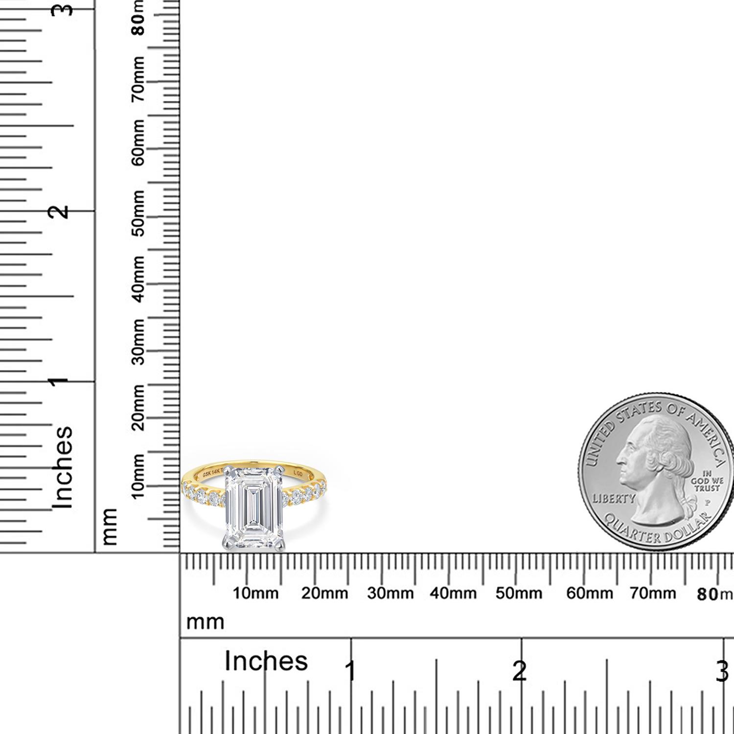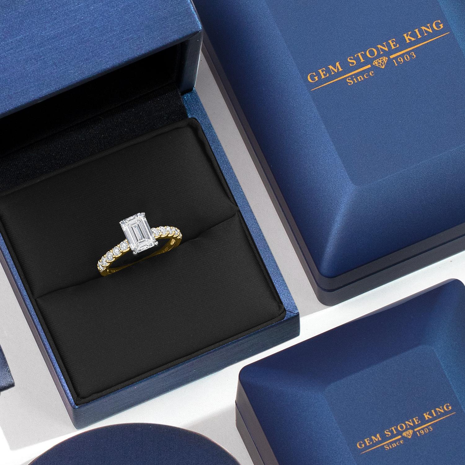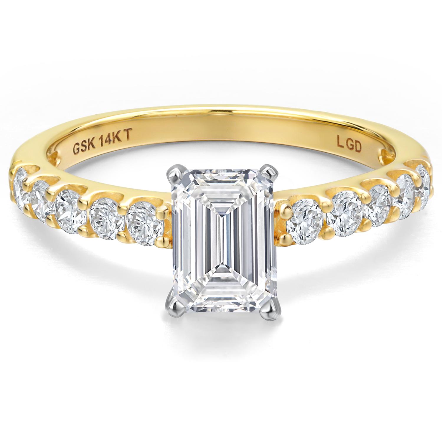 1.13 to 5.38 Cttw IGI Certified Lab Grown Diamond 2-Tone 14K White and Yellow Gold Engagement Wedding Ring for Women | Emerald Cut | E-F Color | VS1-VS2 Clarity