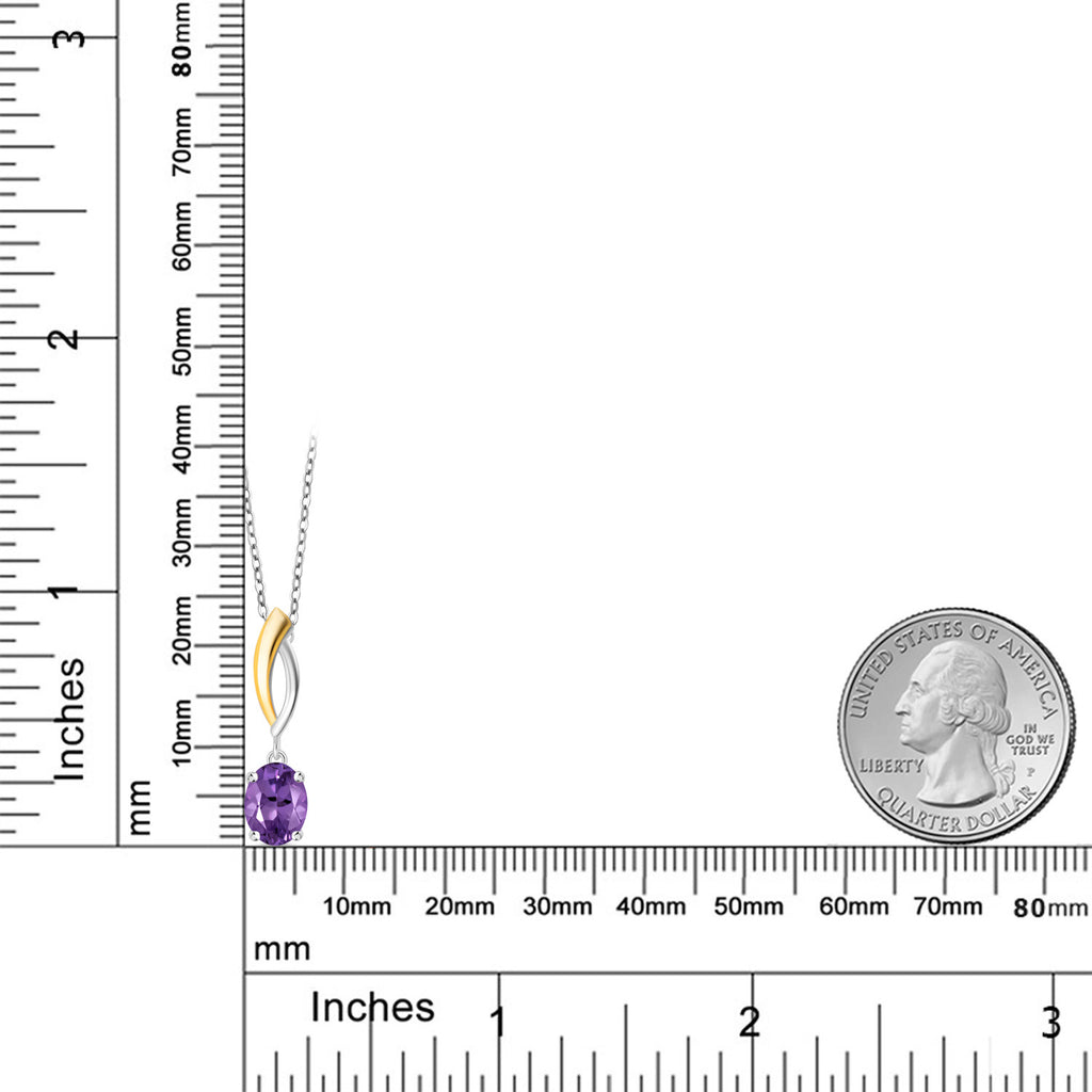 1.15 Ct Oval Purple Amethyst 925 Silver and 10K Yellow Gold Pendant with Chain