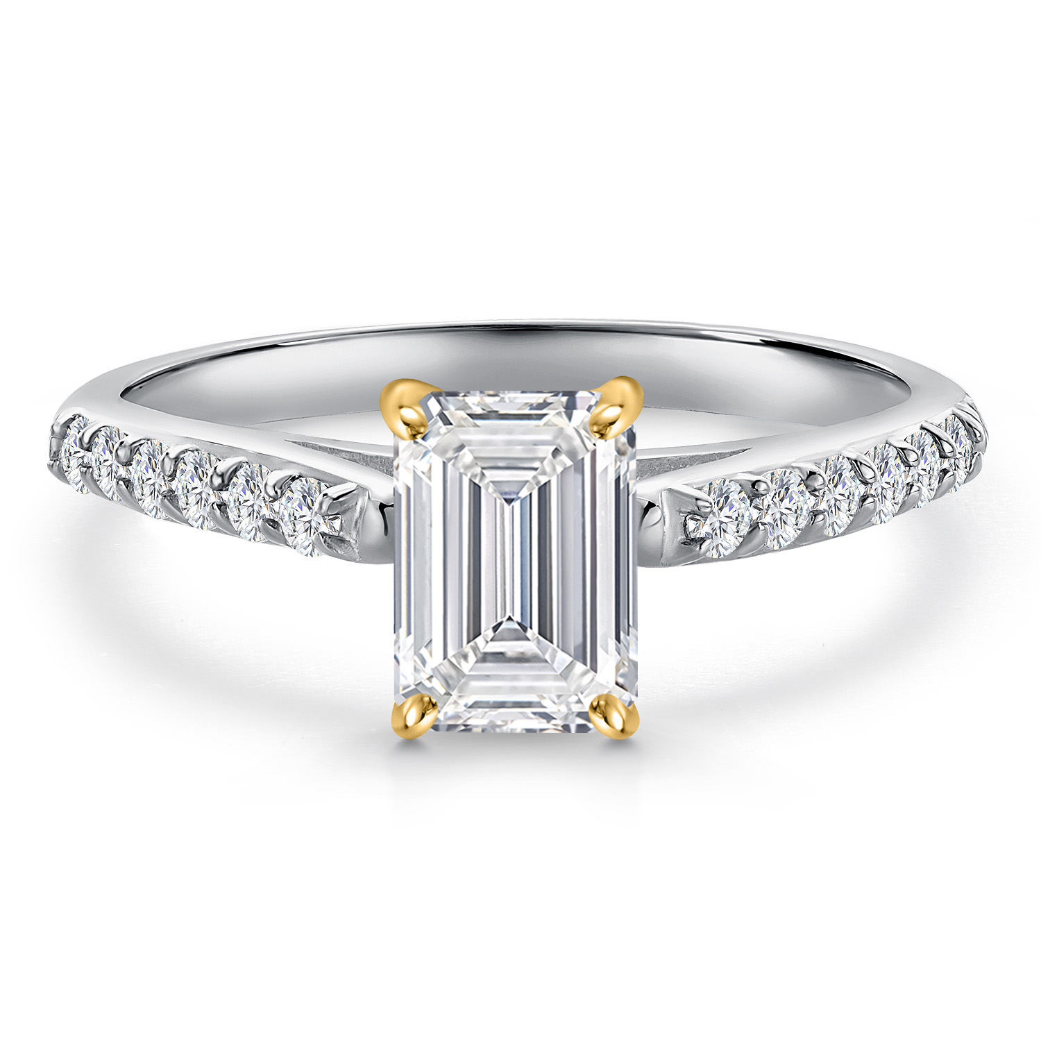 1.24 Cttw IGI Certified Lab Grown Diamond in 10K White Gold with Yellow Gold Prongs Engagement Ring For Women | Emerald Cut Center Diamond 1 Ct | E-F Color | VS1 Clarity