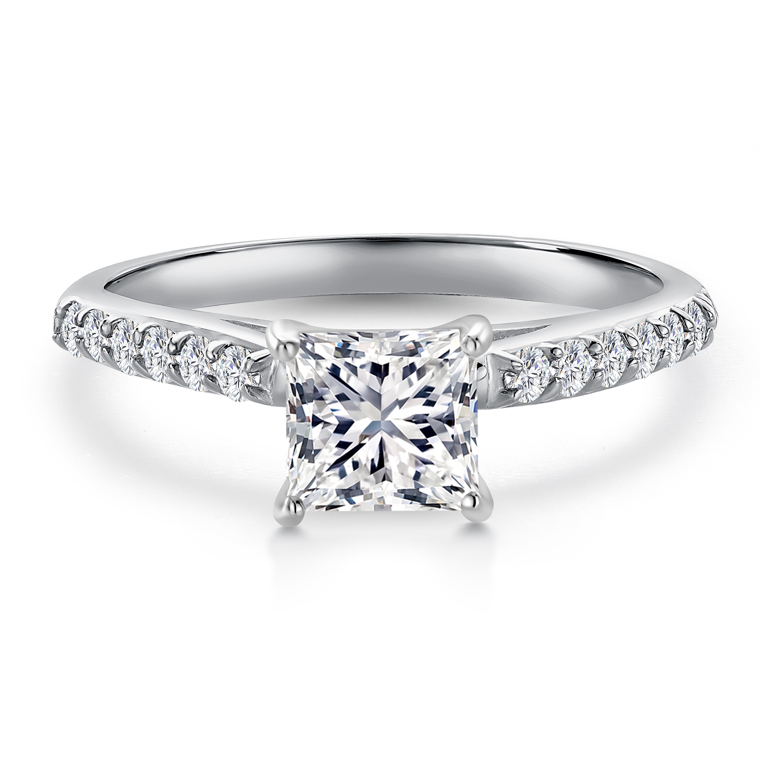 1.25 CTTW LAB-GROWN DIAMOND BRILLIANCE: This stunning engagement ring features a 1.00 carat princess-cut lab-grown diamond at its center, enhanced by accent stones for a total of 1.25 carats. With E-F color and VS1-VS2 clarity, the diamond radiates crisp brilliance and exceptional fire—offering a luxurious and ethical alternative to mined diamonds.