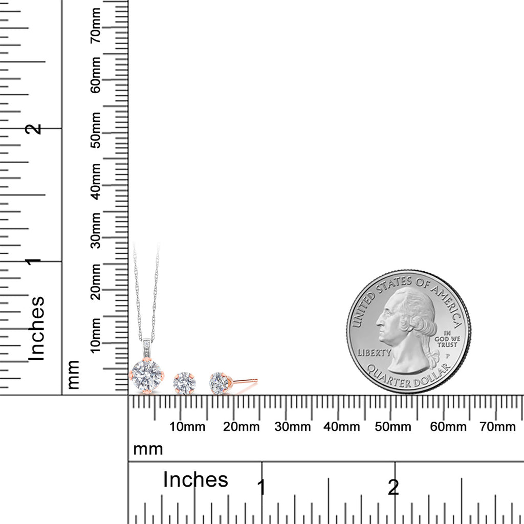 1.28 CTTW ROUND LAB-GROWN DIAMOND SPARKLE: This pendant and earring set features a captivating trio of round lab-grown diamonds—6MM and 4MM in size—totaling 1.28 carats. Expertly cut for maximum brilliance, each stone boasts DEF color and VVS-VS clarity, offering exceptional fire and icy-white sparkle that mirrors the finest natural diamonds for an elegant, high-end look.