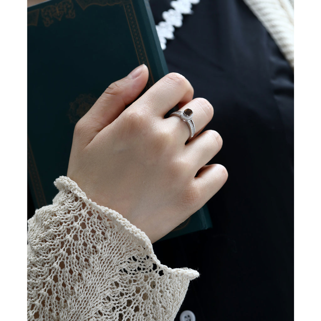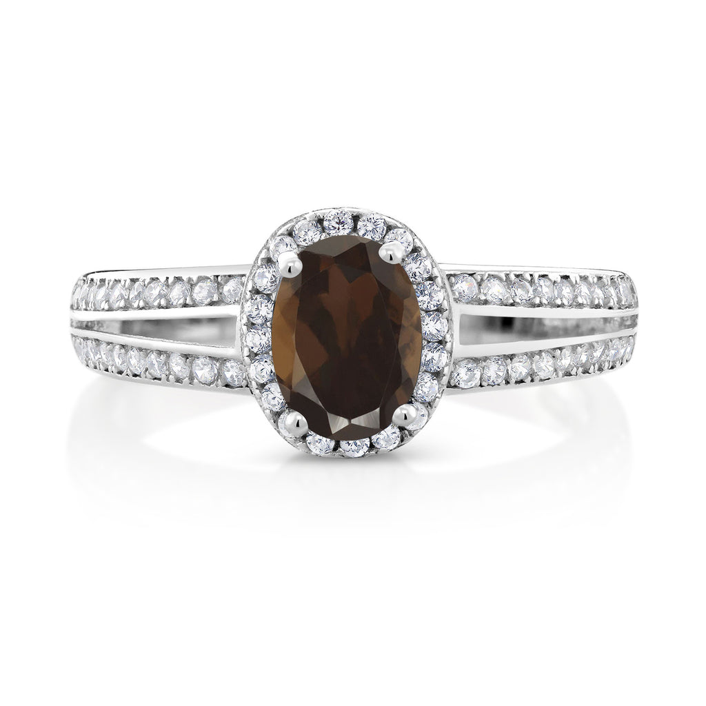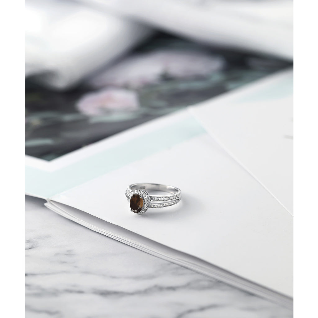 MEASUREMENTS: 7x5mm Oval Heat-Treated Brown Smoky Quartz, 1x1mm Round White Zirconia. Total Carat Weight is 1.35 cttw