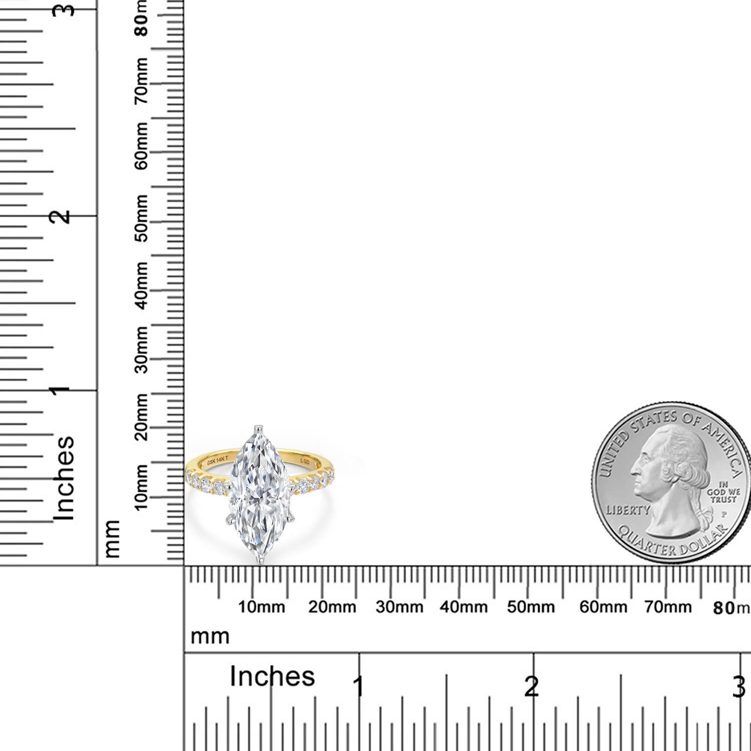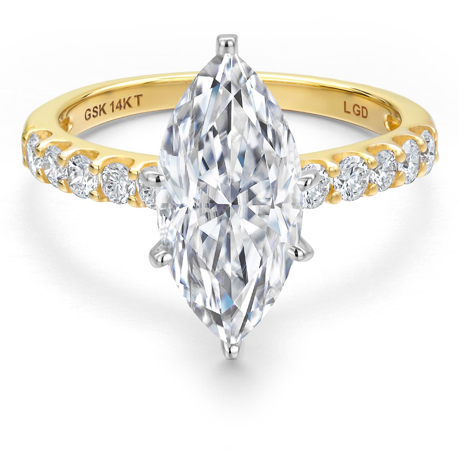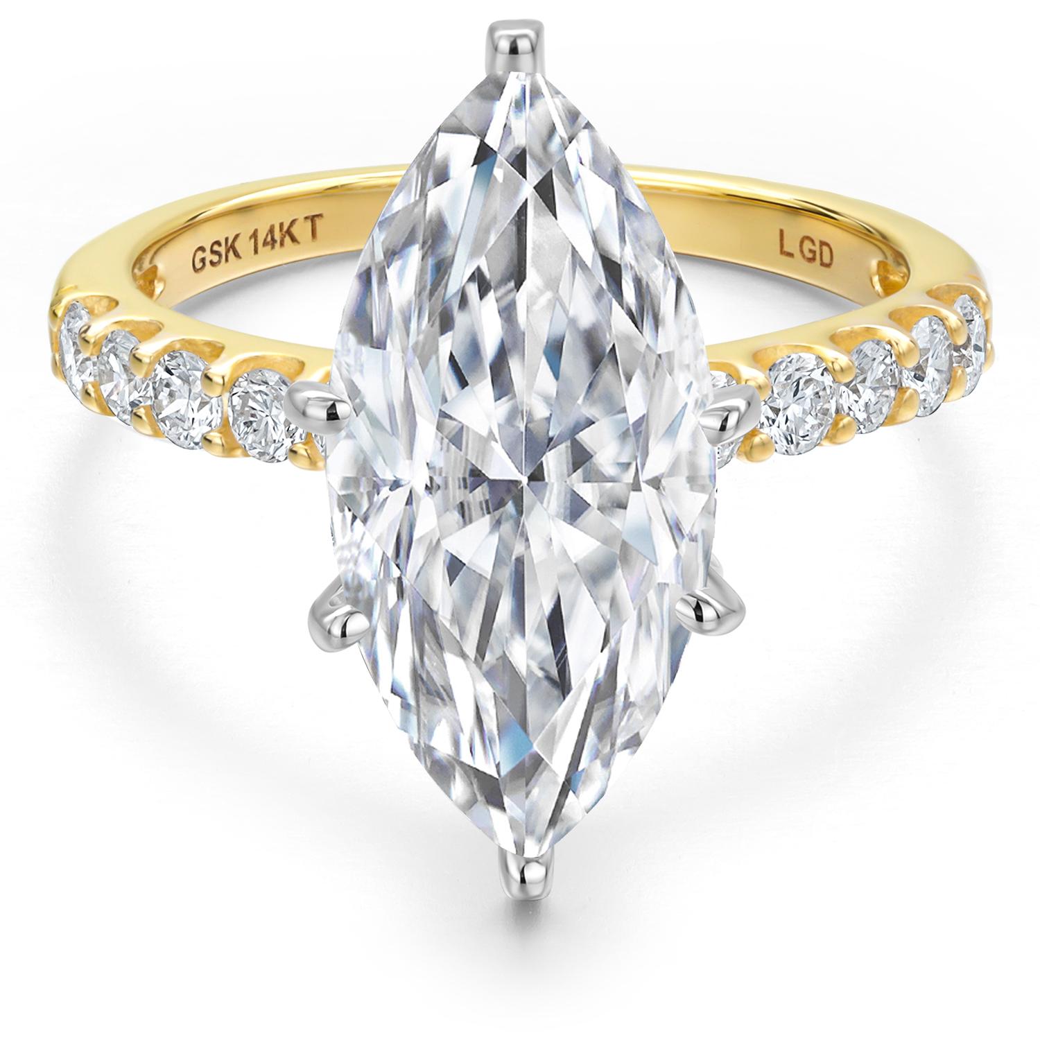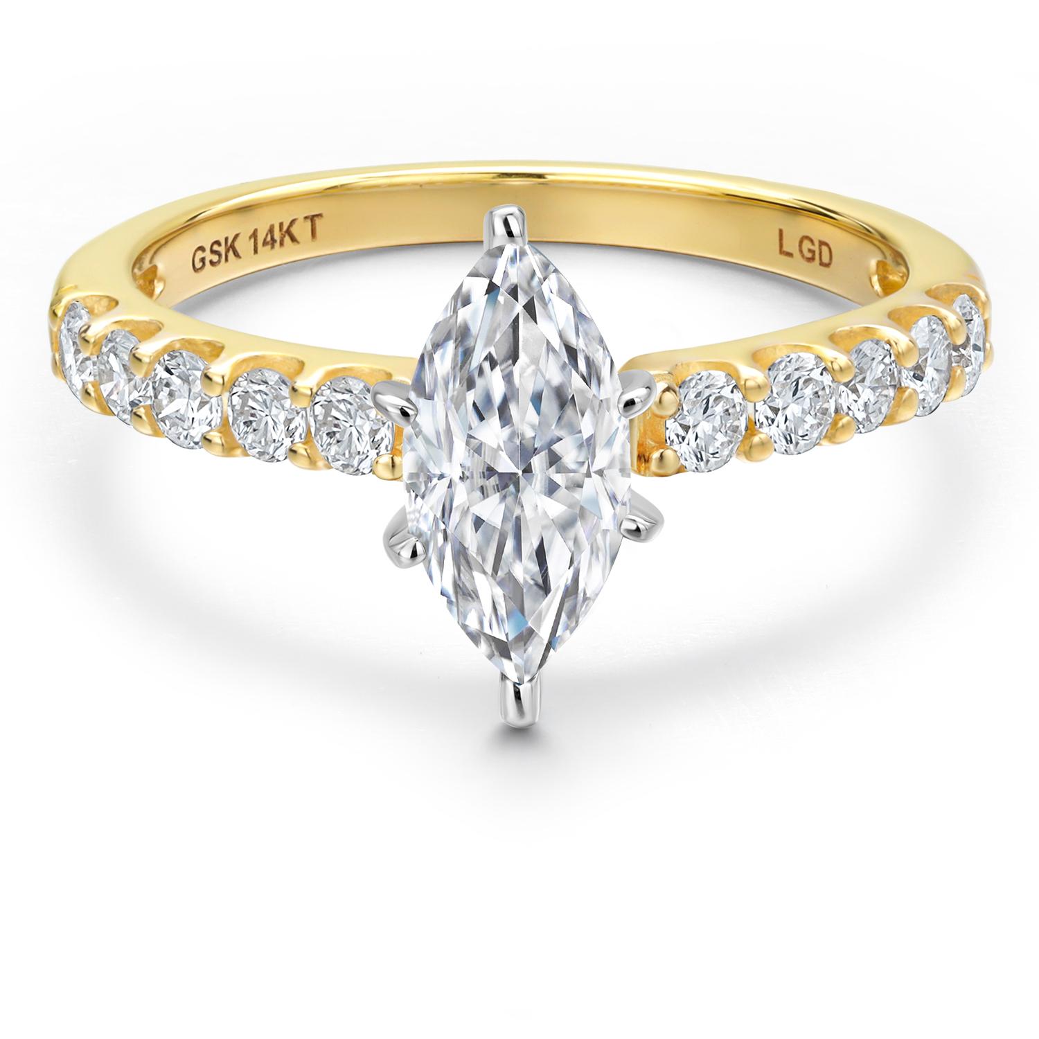 TWO-TONE GOLD EXCELLENCE: Yellow gold along the shank anchors the marquise shape with warmth, while white gold prongs enhance the center stone’s elongated brilliance. Durable and refined, this combination sharpens detail and brightens every facet.