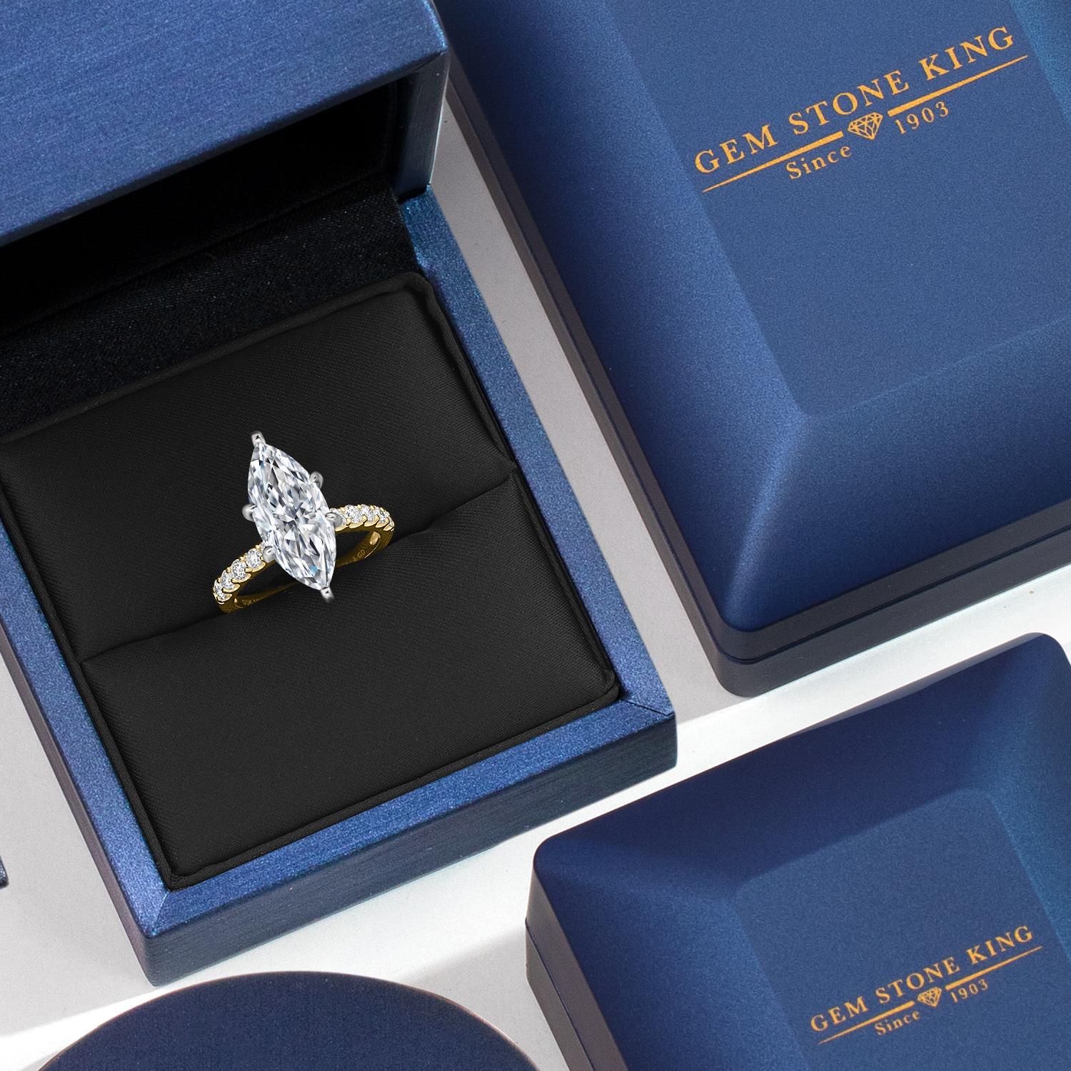 1.38 to 5.38 Cttw IGI Certified Lab Grown Diamond in 2-Tone 14K White and Yellow Gold Engagement Wedding Ring for Women | Marquise Cut | E-F Color | VS1-VS2 Clarity