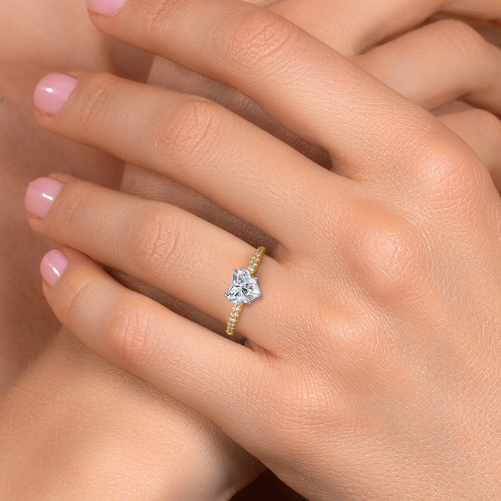 IGI CERTIFIED HEART CUT DIAMOND: This romantic engagement ring showcases an IGI-certified lab-grown diamond ranging from 1 to 4 carats, graded E–F color and VS1 clarity. The heart-shaped stone radiates love, brilliance, and timeless beauty in every facet.