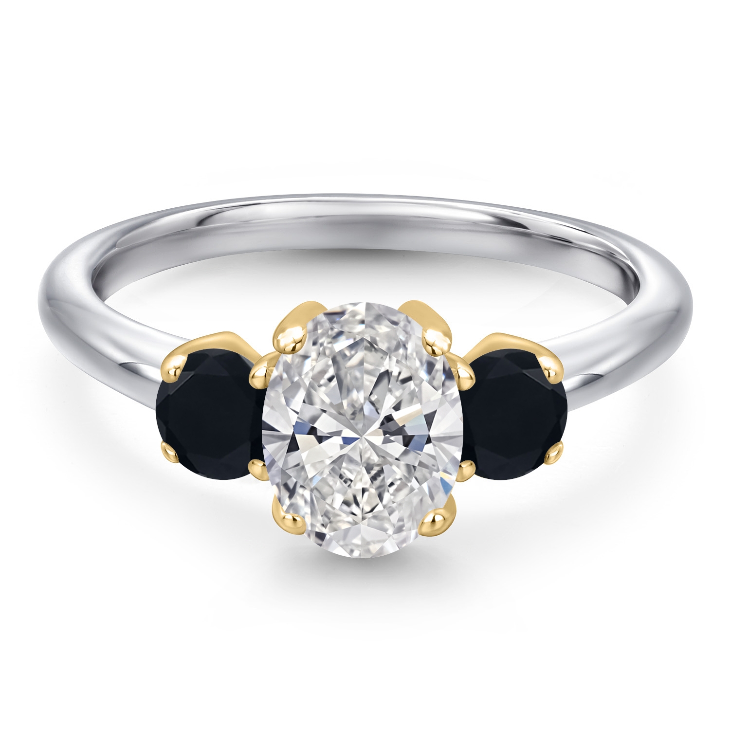 MEASUREMENTS: 8x6mm Oval E - F Lab Grown Diamond, 4x4mm Round Black Onyx. Total Carat Weight is 1.44 cttw