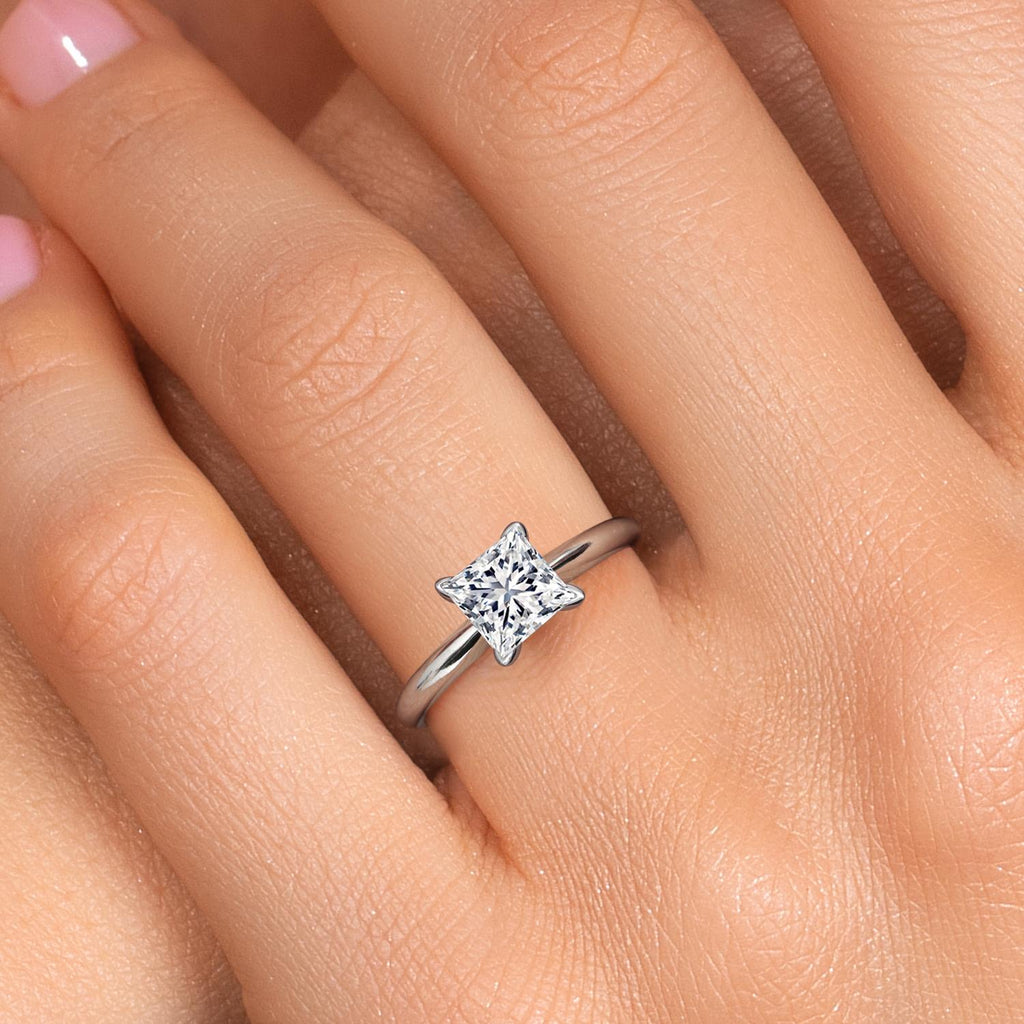 EXQUISITE PRINCESS CUT DIAMOND RING: Make a statement with this stunning solitaire ring featuring a 1 Ct princess cut lab-grown diamond. Set in luxurious 14K white gold, the diamond's brilliant E-F color and VS1-VS2 Clarity guarantee exceptional sparkle and elegance, making it a perfect symbol of your everlasting love.
