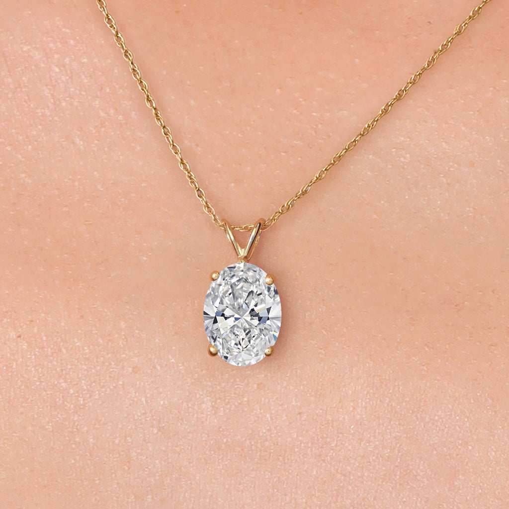 1.50 Ct IGI Certified Lab Grown Diamond Pendant Necklace For Women in 14K Yellow Gold | Oval Cut | E-F Color | VS1-VS2 Clarity | With 18 Inch Gold Chain