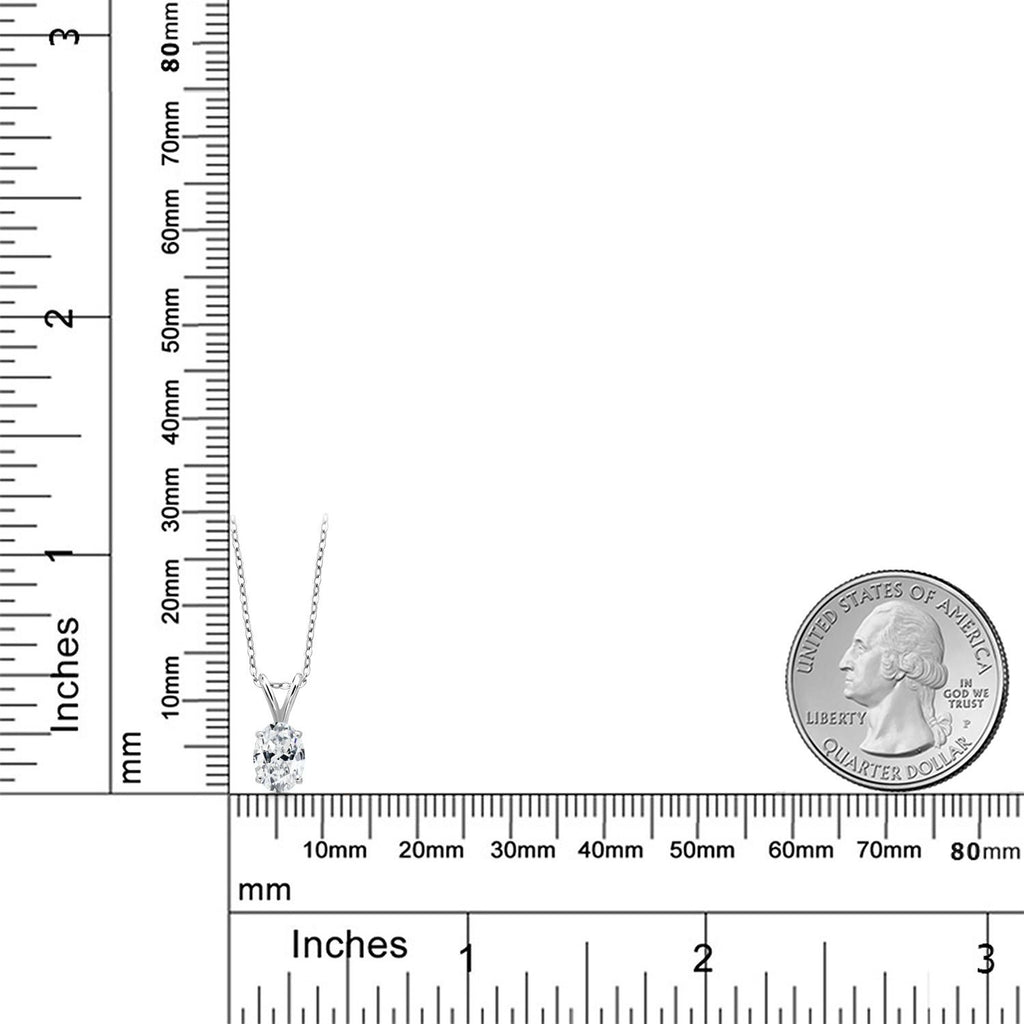 1.50 Ct Oval White Zirconia 925 Sterling Silver Pendant with Chain