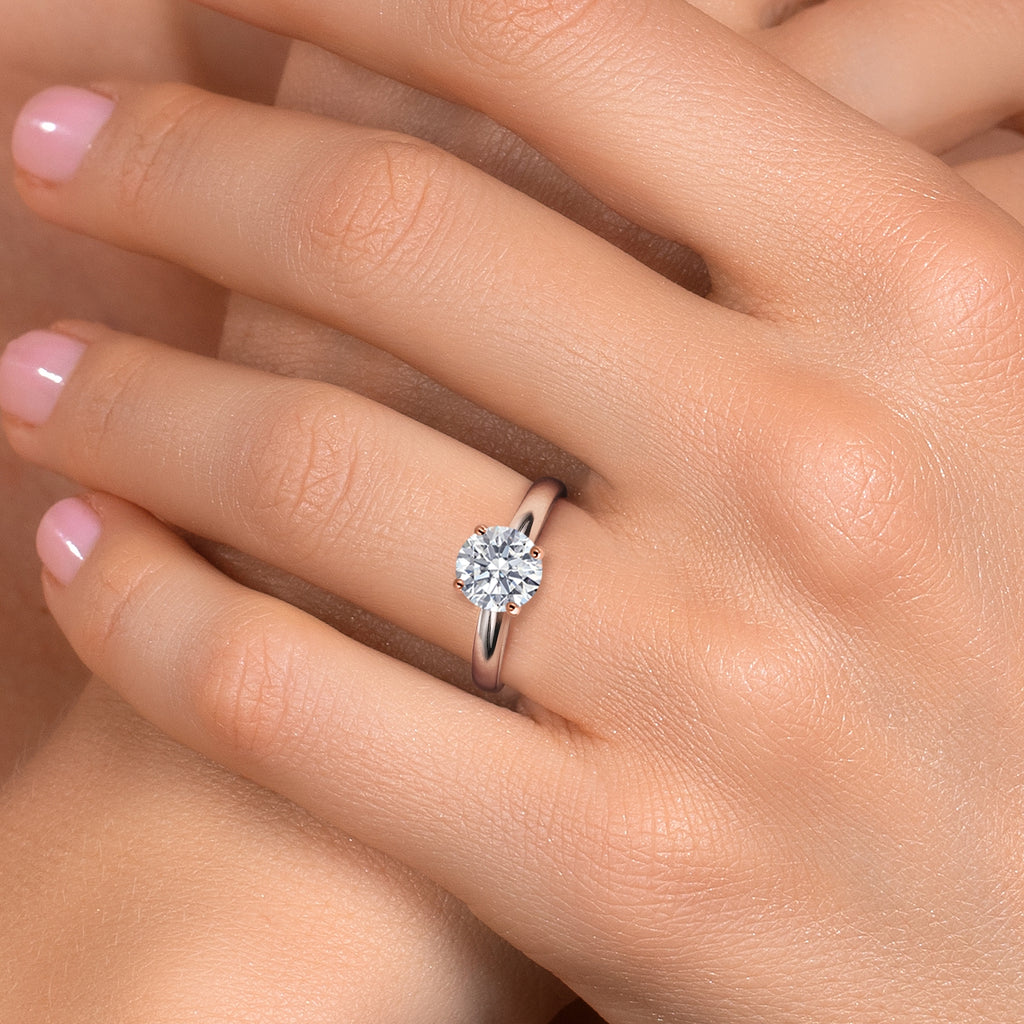 CLASSIC SOLITAIRE STYLE WITH CONTEMPORARY APPEAL: The round diamond is set in a secure four-prong setting that maximizes light return and sparkle. Handcrafted with precision, the clean, elegant lines of this design offer a refined yet bold look—perfect for the woman who values both tradition and modern sophistication.