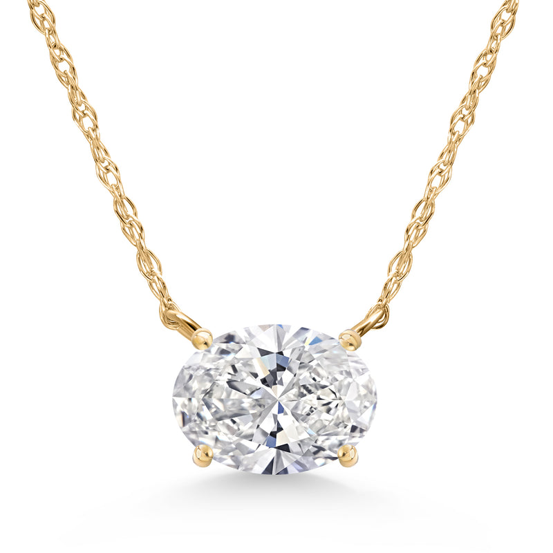 EXQUISITE OVAL CUT DIAMOND: This stunning pendant necklace features a 1.50 Cttw oval-cut lab-grown diamond, renowned for its brilliant sparkle and timeless elegance. The oval shape enhances the diamond's brilliance, making it a captivating centerpiece that draws attention to its exceptional beauty.