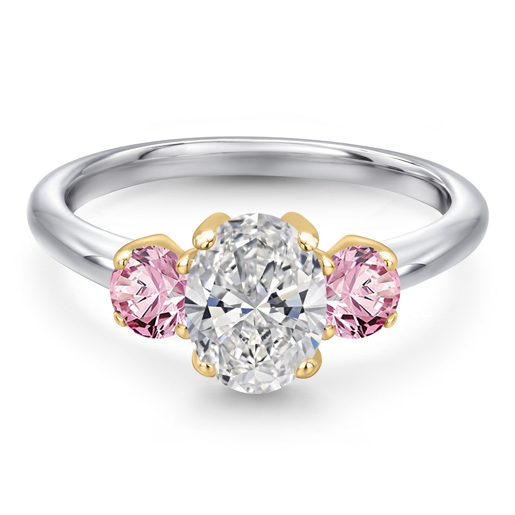 MEASUREMENTS: 8x6mm Oval E - F Lab Grown Diamond, 4x4mm Round Irradiated Pink Lab Grown Diamond. Total Carat Weight is 1.5 cttw