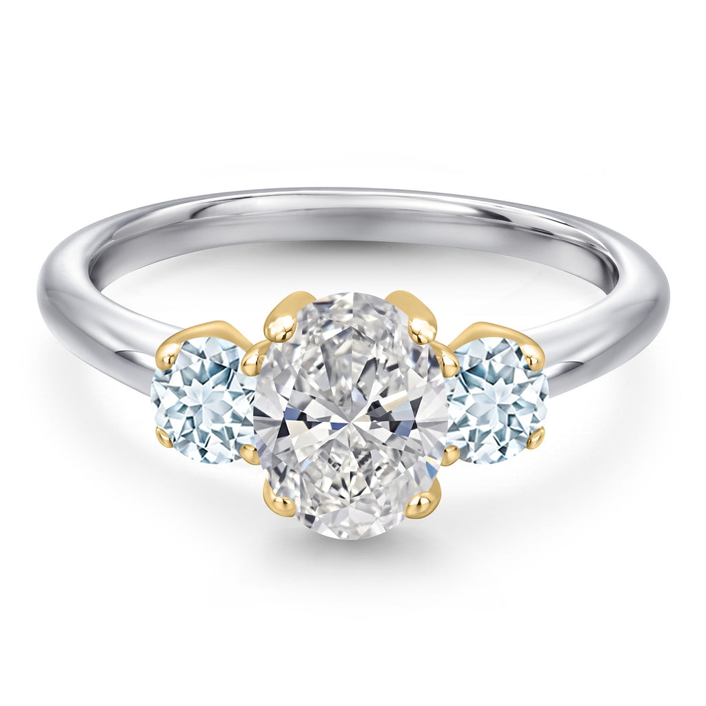 MEASUREMENTS: 8x6mm Oval E - F Lab Grown Diamond, 4x4mm Round Heat-Treated Sky Blue Aquamarine. Total Carat Weight is 1.5 cttw