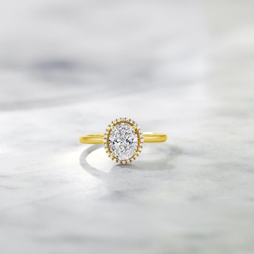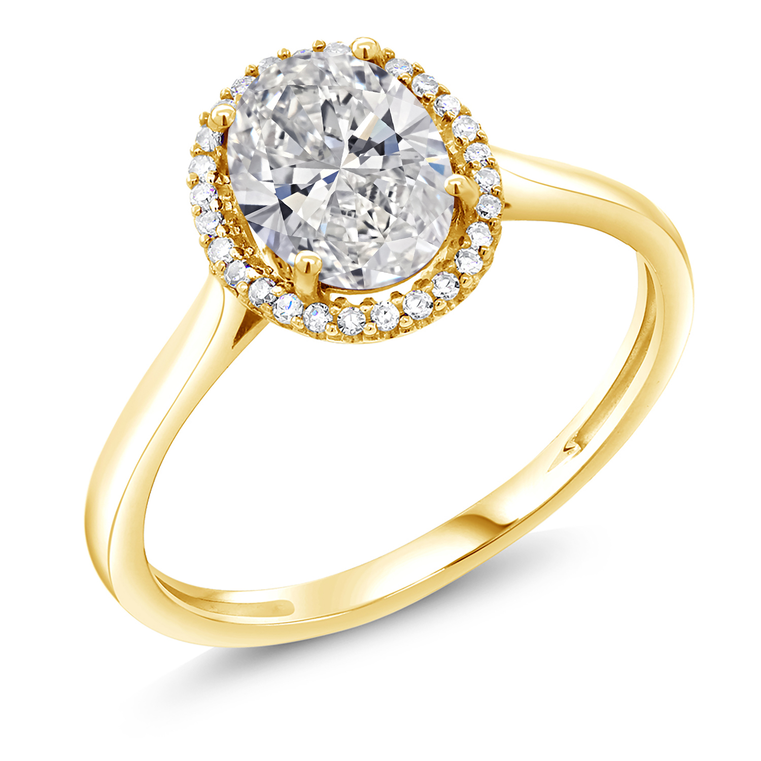 EXQUISITE HALO DESIGN: This stunning engagement ring features a 1.5 Ct oval-cut center diamond surrounded by a halo of smaller diamonds, totaling 1.58 Cttw. The halo design enhances the diamond's brilliance, creating a dazzling effect that will captivate and impress.