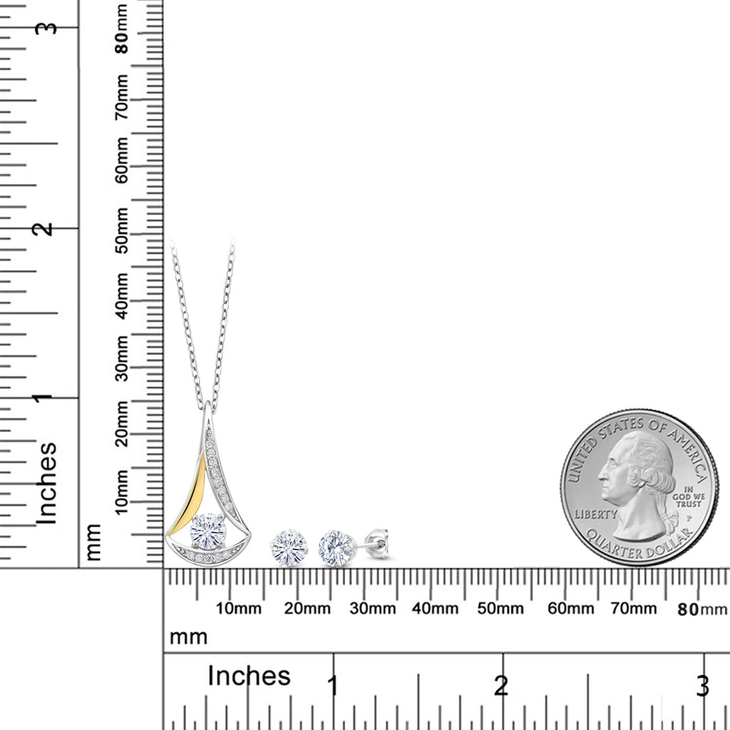1.59 Ct E-F Lab Grown Diamond 925 Silver and 10K Yellow Gold Pendant and Earrings Jewelry Set