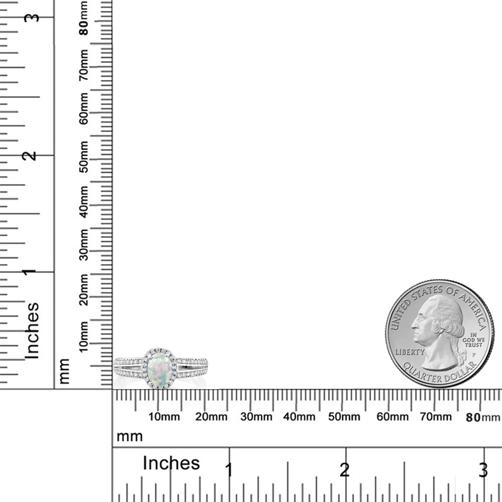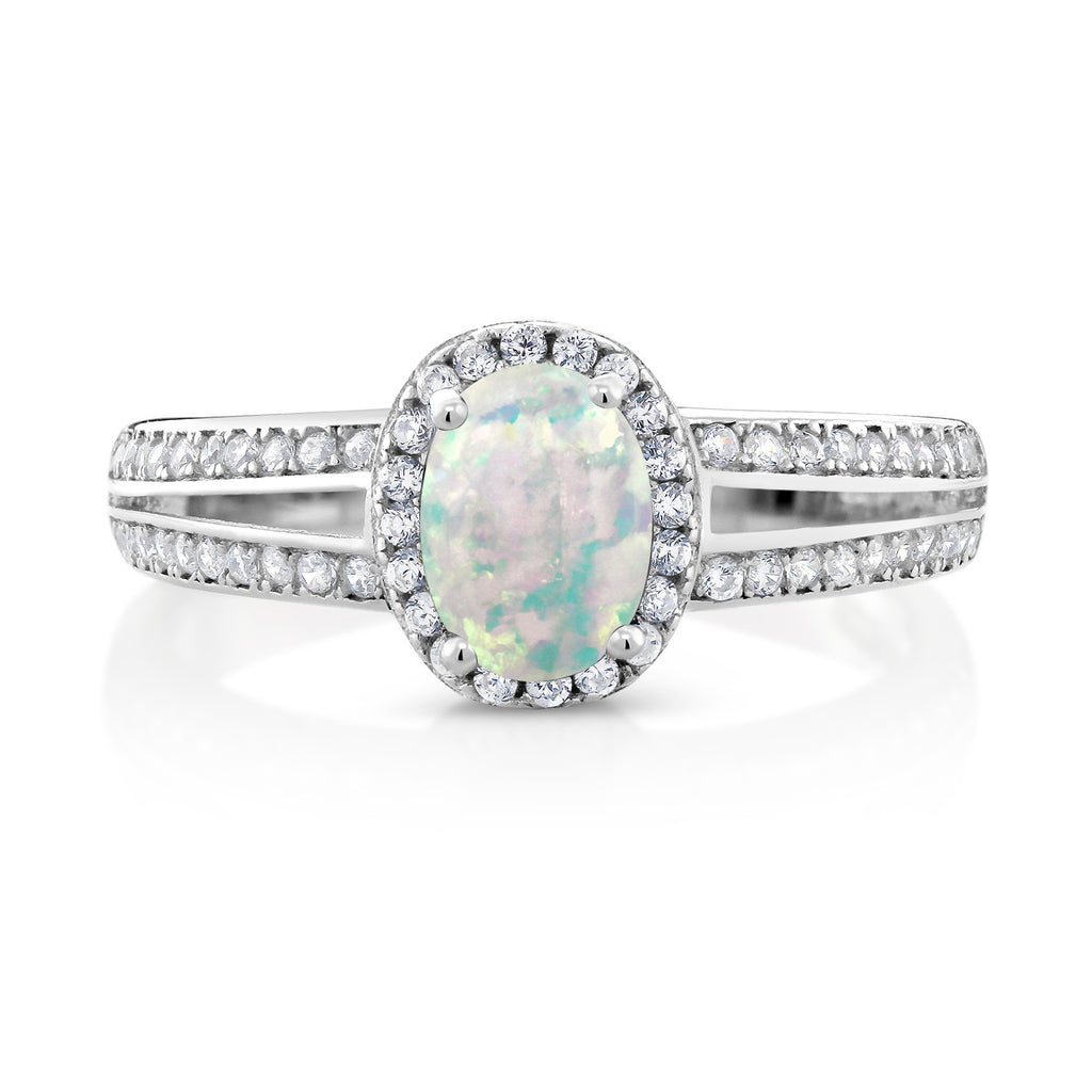 MEASUREMENTS: 7x5mm Oval Cabochon White Opal, 1x1mm Round White Zirconia. Total Carat Weight is 1.6 cttw