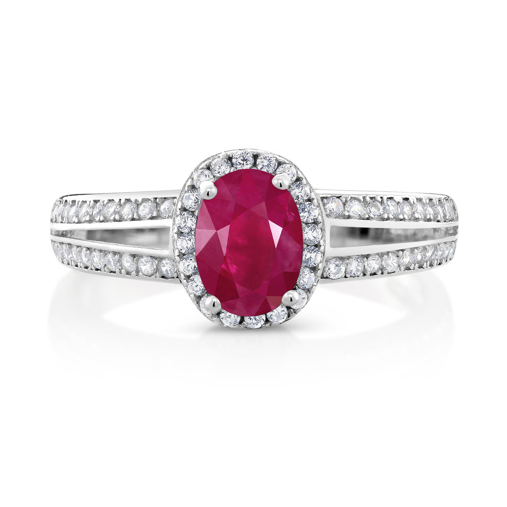 MEASUREMENTS: 7x5mm Oval Heat-Treated Red Ruby, 1x1mm Round White Zirconia. Total Carat Weight is 1.6 cttw