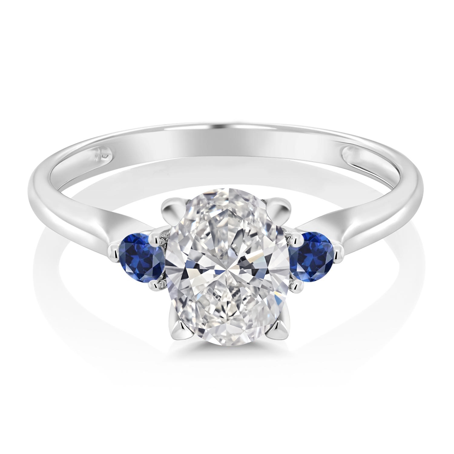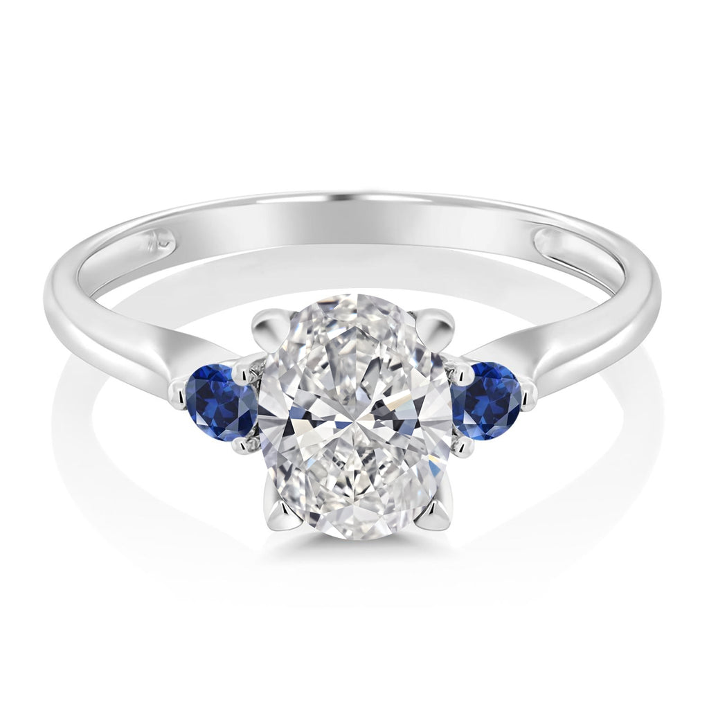 1.60 Cttw 10K White Gold IGI Certified Lab Grown Diamond and Created Sapphire Engagement Ring For Women | Center Oval 1.5 Ct Diamond | E-F Color | VS1-VS2 Clarity