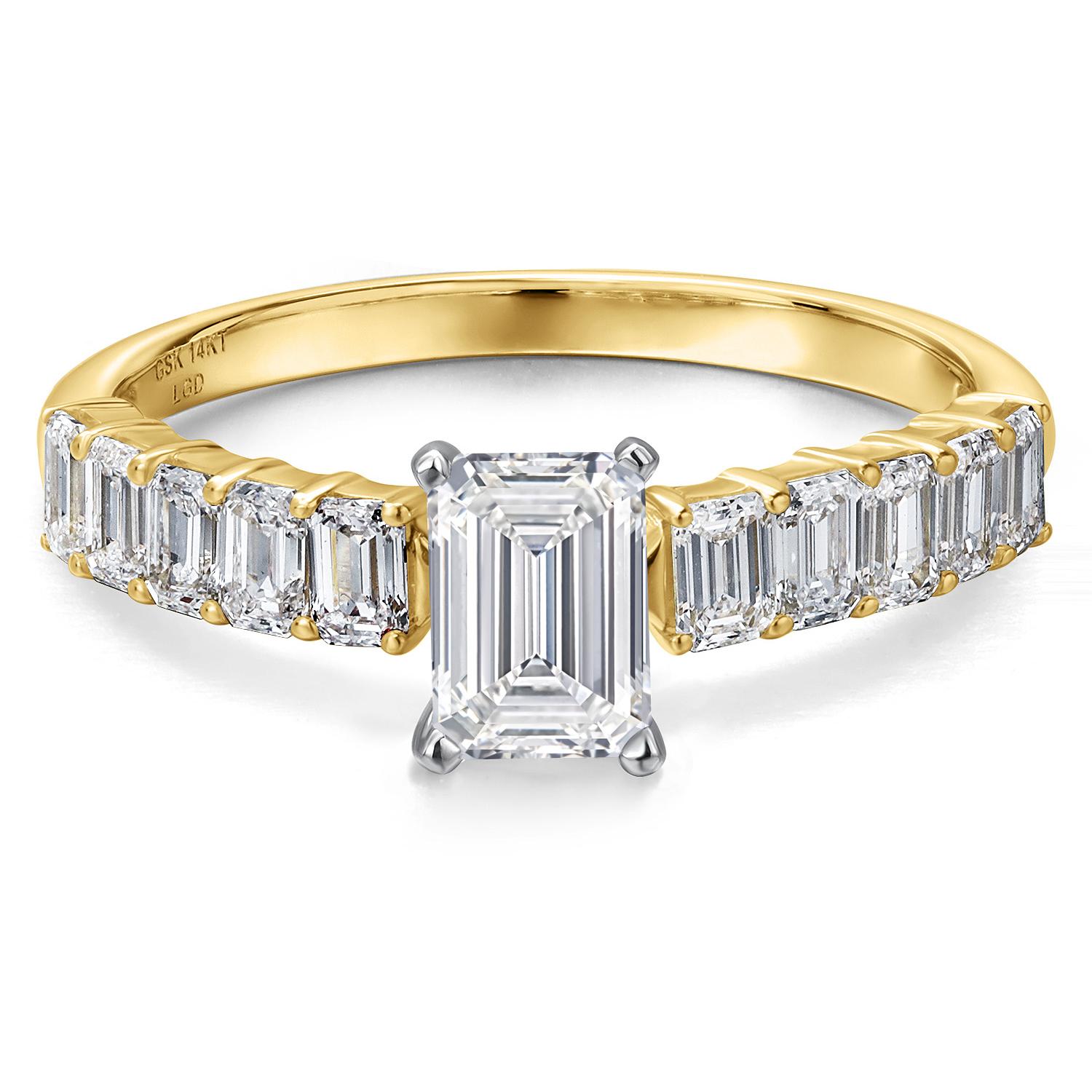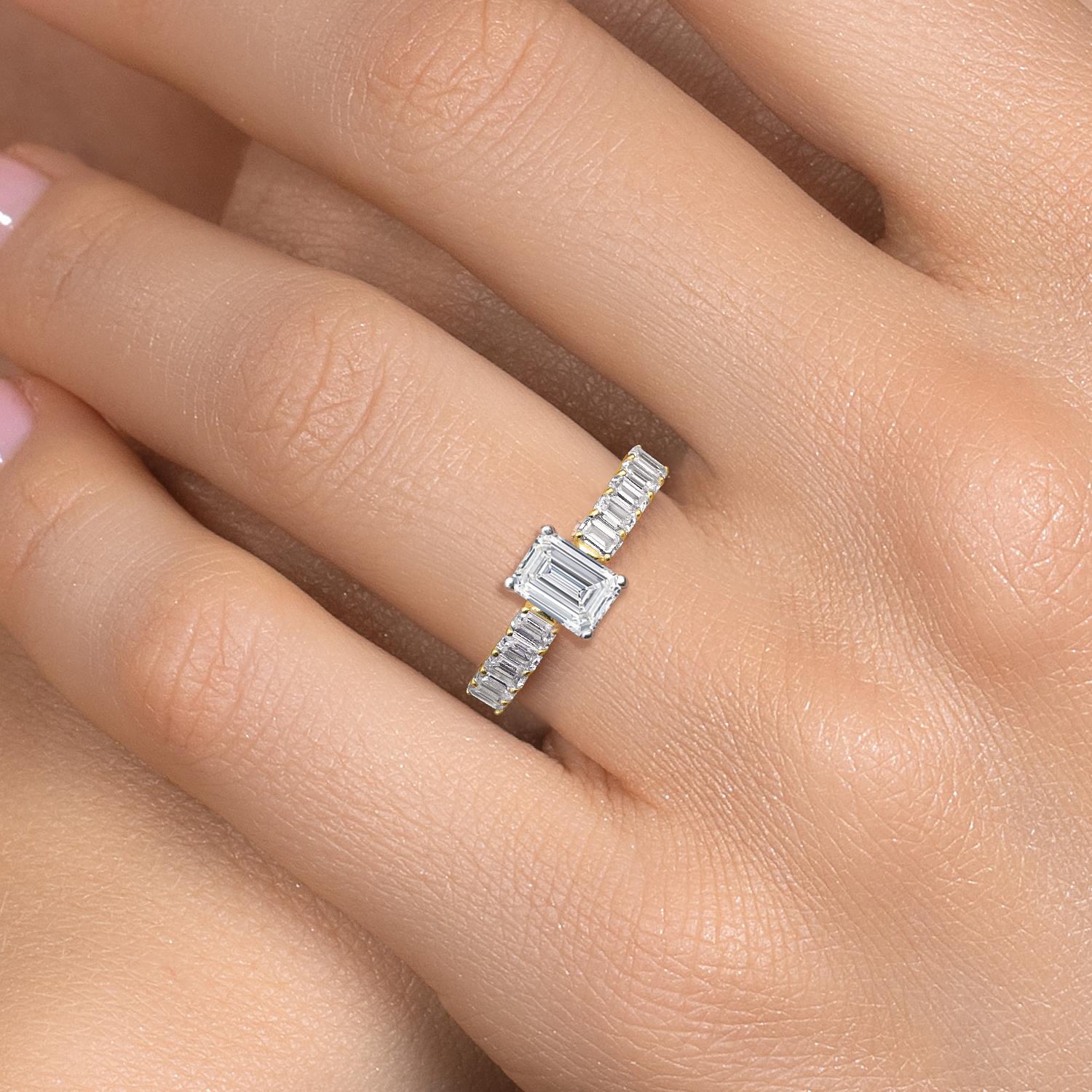 1.60 Cttw IGI Certified Lab Grown Diamond in 14K Two-Tone Gold Engagement Ring for Women | Emerald Cut Center Diamond 0.70 Ct | E-F Color | VS1-VS2 Clarity