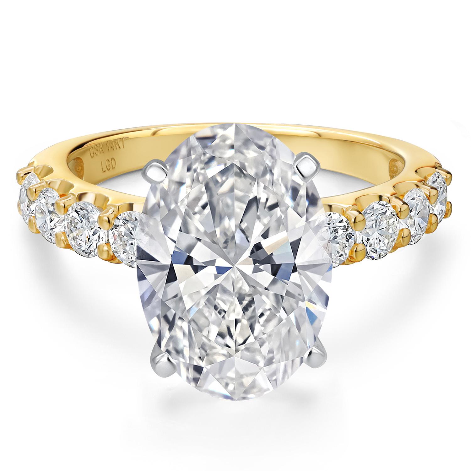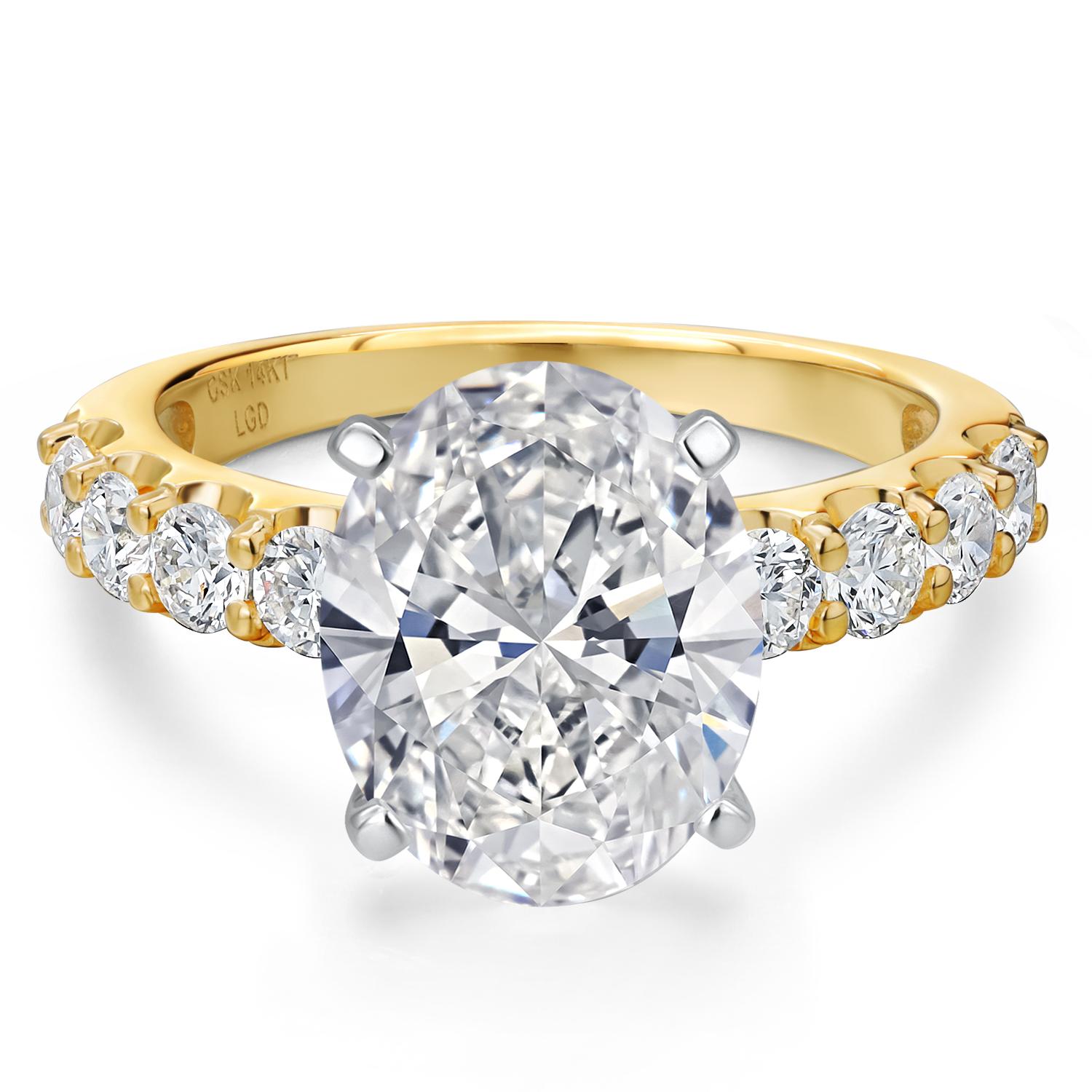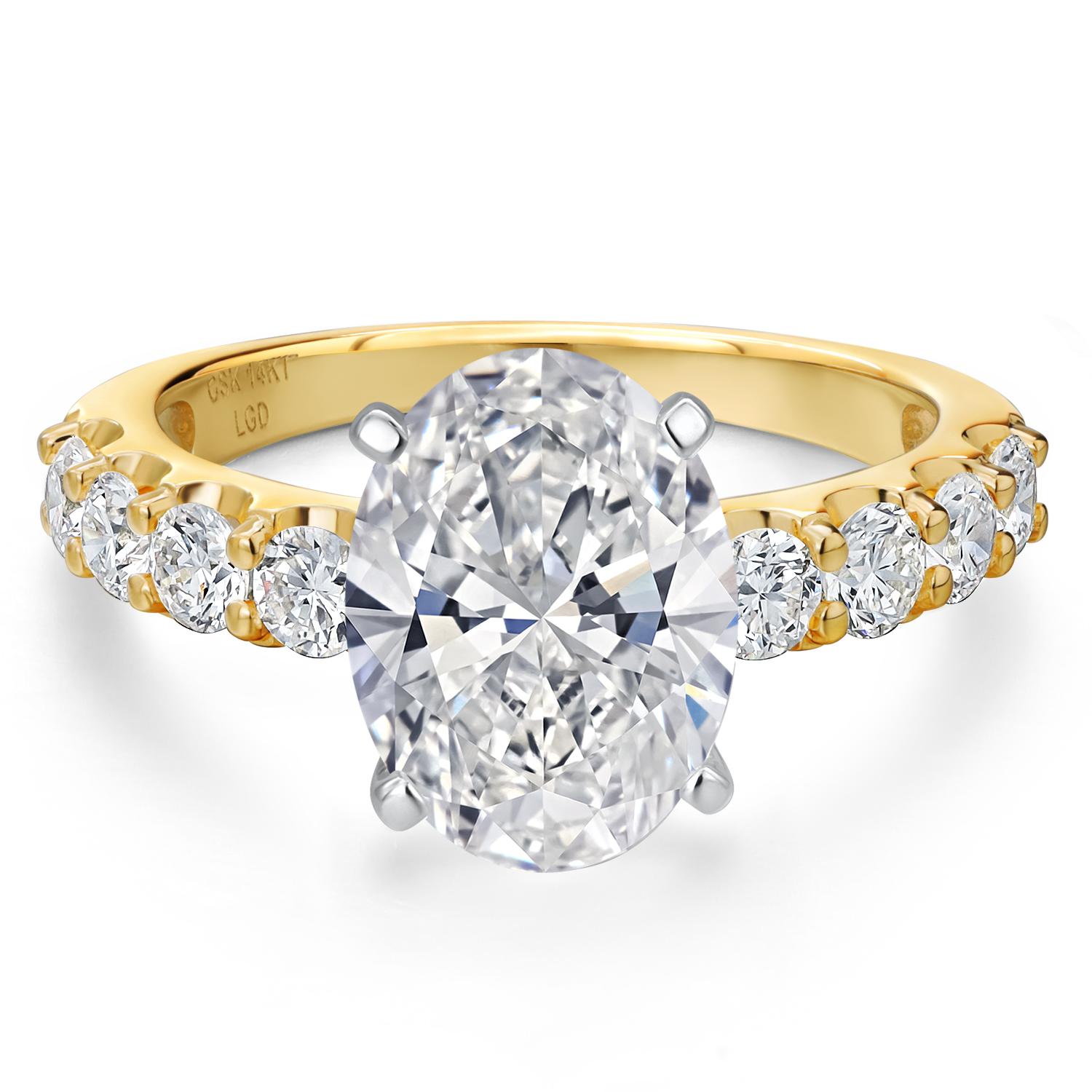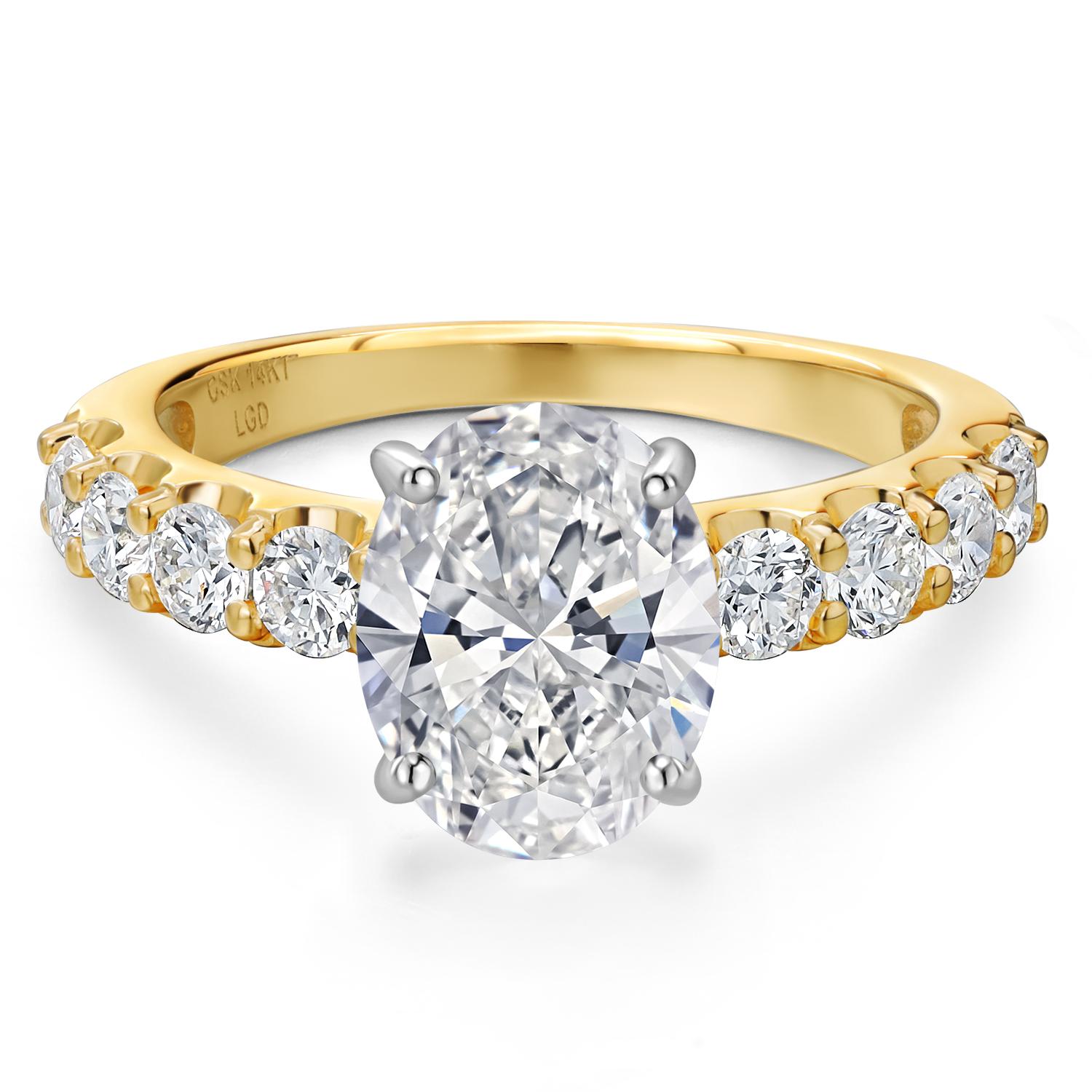 ACCENT DIAMOND BRILLIANCE: The band is adorned with 3MM lab-grown accent diamonds (0.88 cttw) that enhance the center stone’s brilliance and depth. Each accent diamond is precision-set for symmetry and sparkle, adding dimension and elegance to the two-tone gold design.