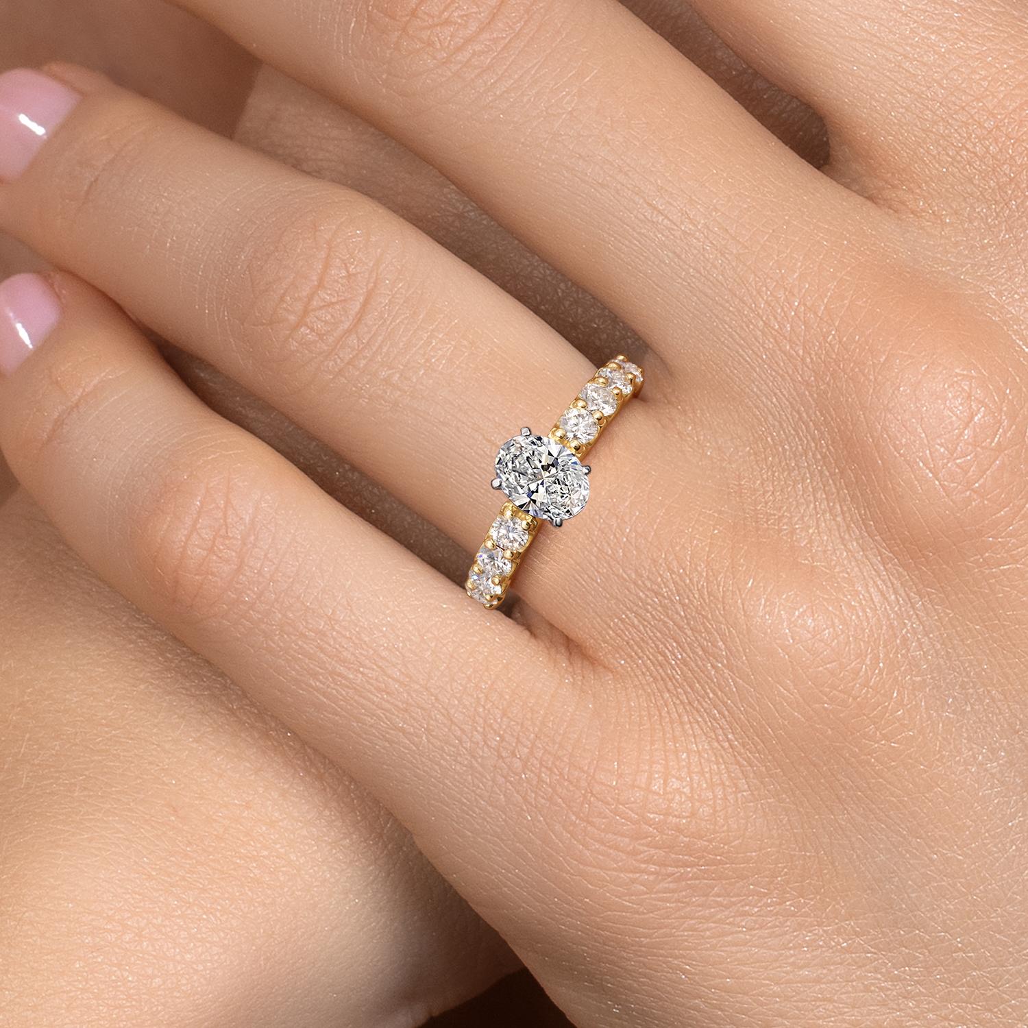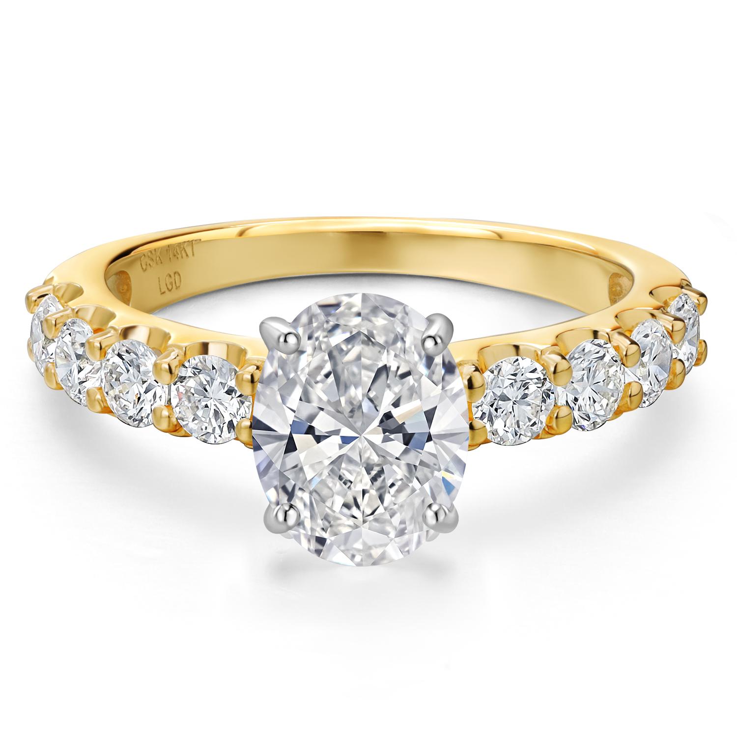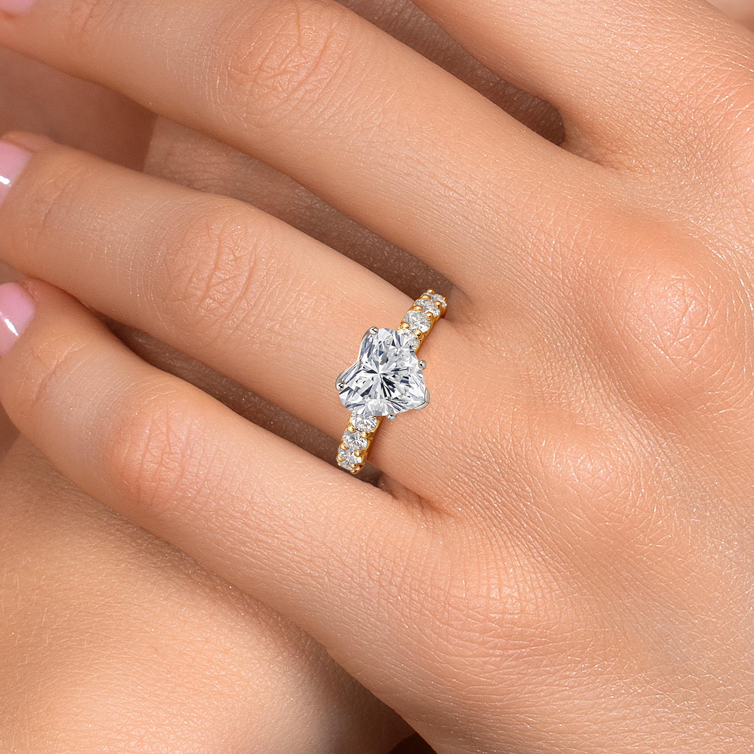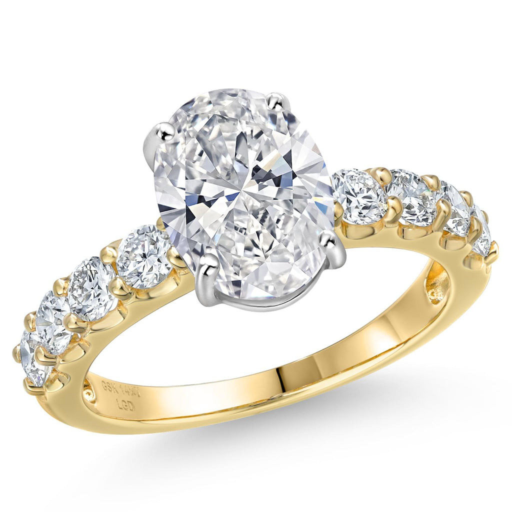 ACCENT DIAMOND BRILLIANCE: The band is adorned with 3MM lab-grown accent diamonds (0.88 cttw) that enhance the center stone’s brilliance and depth. Each accent diamond is precision-set for symmetry and sparkle, adding dimension and elegance to the two-tone gold design.