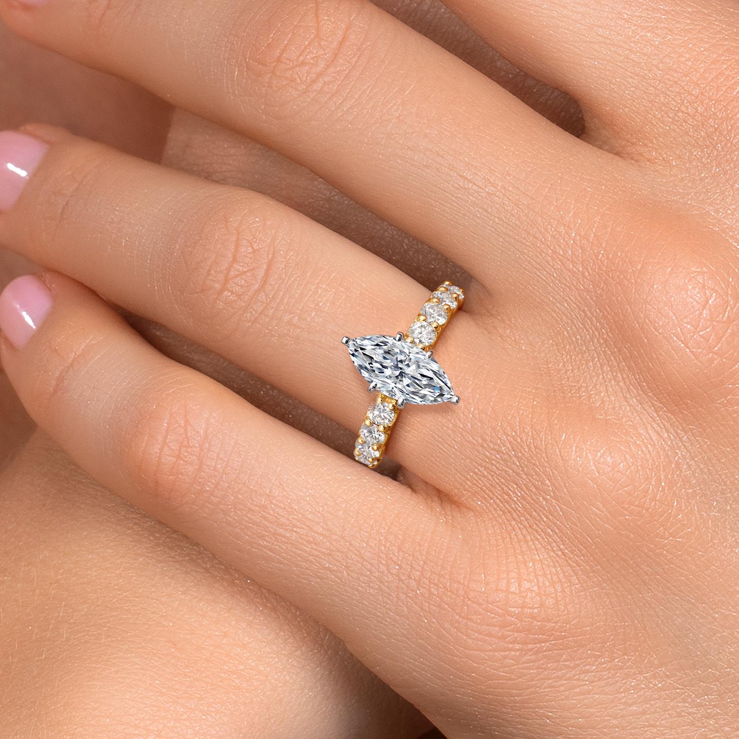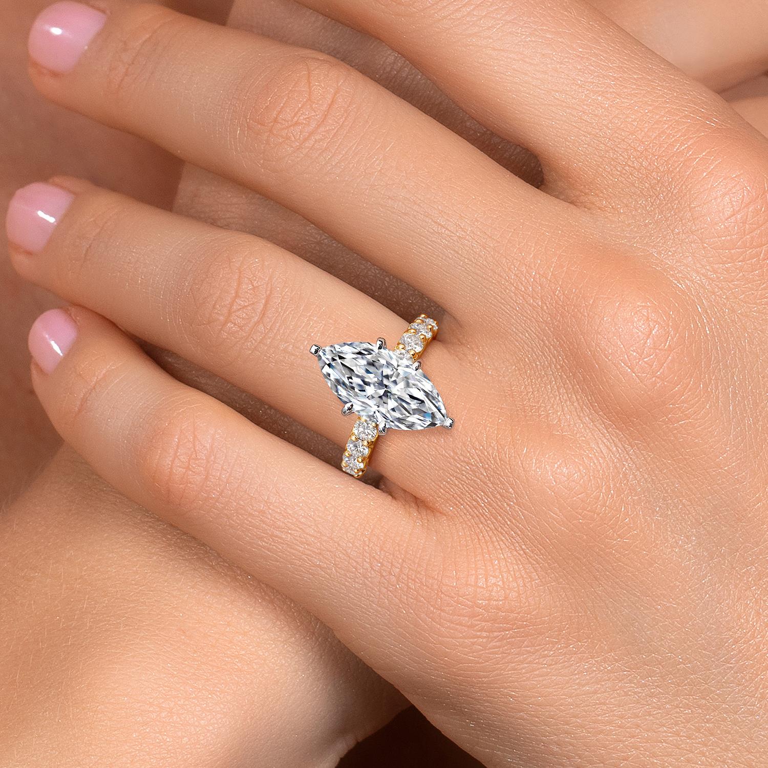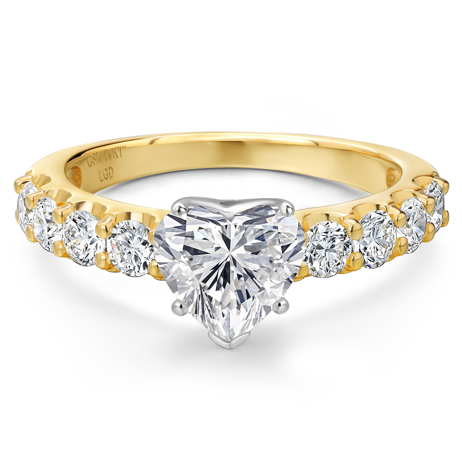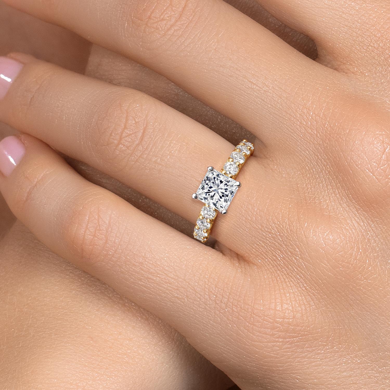 ACCENT DIAMOND BRILLIANCE: The band is adorned with 3MM lab-grown accent diamonds (0.88 cttw) that enhance the center stone’s brilliance and depth. Each accent diamond is precision-set for symmetry and sparkle, adding dimension and elegance to the two-tone gold design.