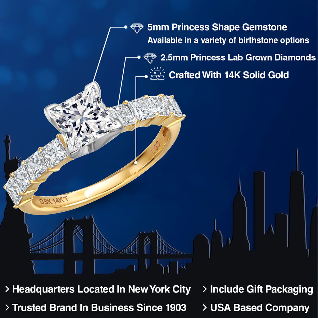 2-Tone Engagement Ring For Women | 925 Silver and 10K Yellow Gold | Gemstone Birthstone | 6MM Cushion Cut | Wedding Anniversary Promise Ring | Available In Size 5, 6, 7, 8, 9