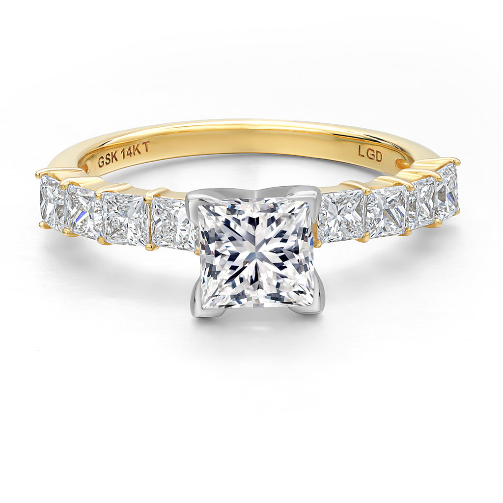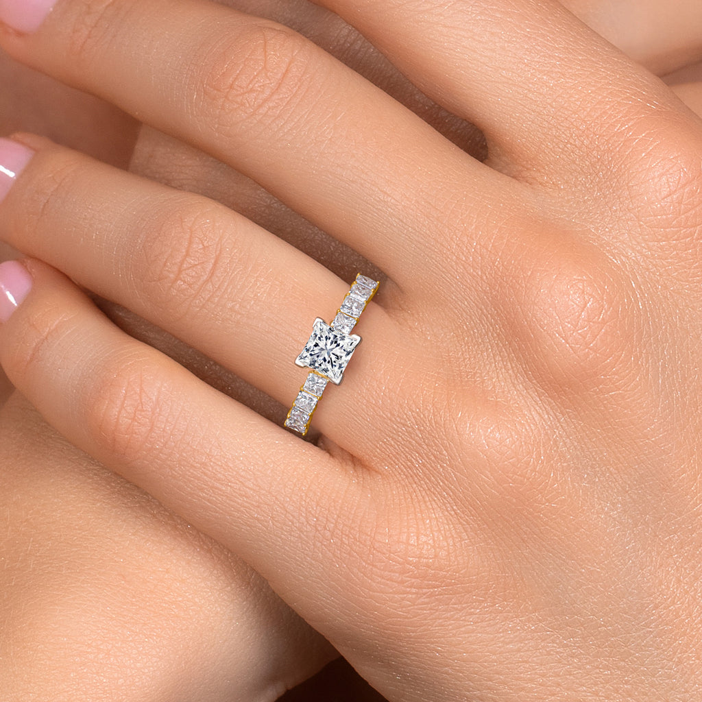 SOPHISTICATED PRINCESS CUT: The princess cut of the main diamond is renowned for its sharp angles and beautiful symmetry, which enhance the stone’s inherent sparkle. This cut is ideal for someone who loves a blend of traditional appeal and contemporary flair in their jewelry.