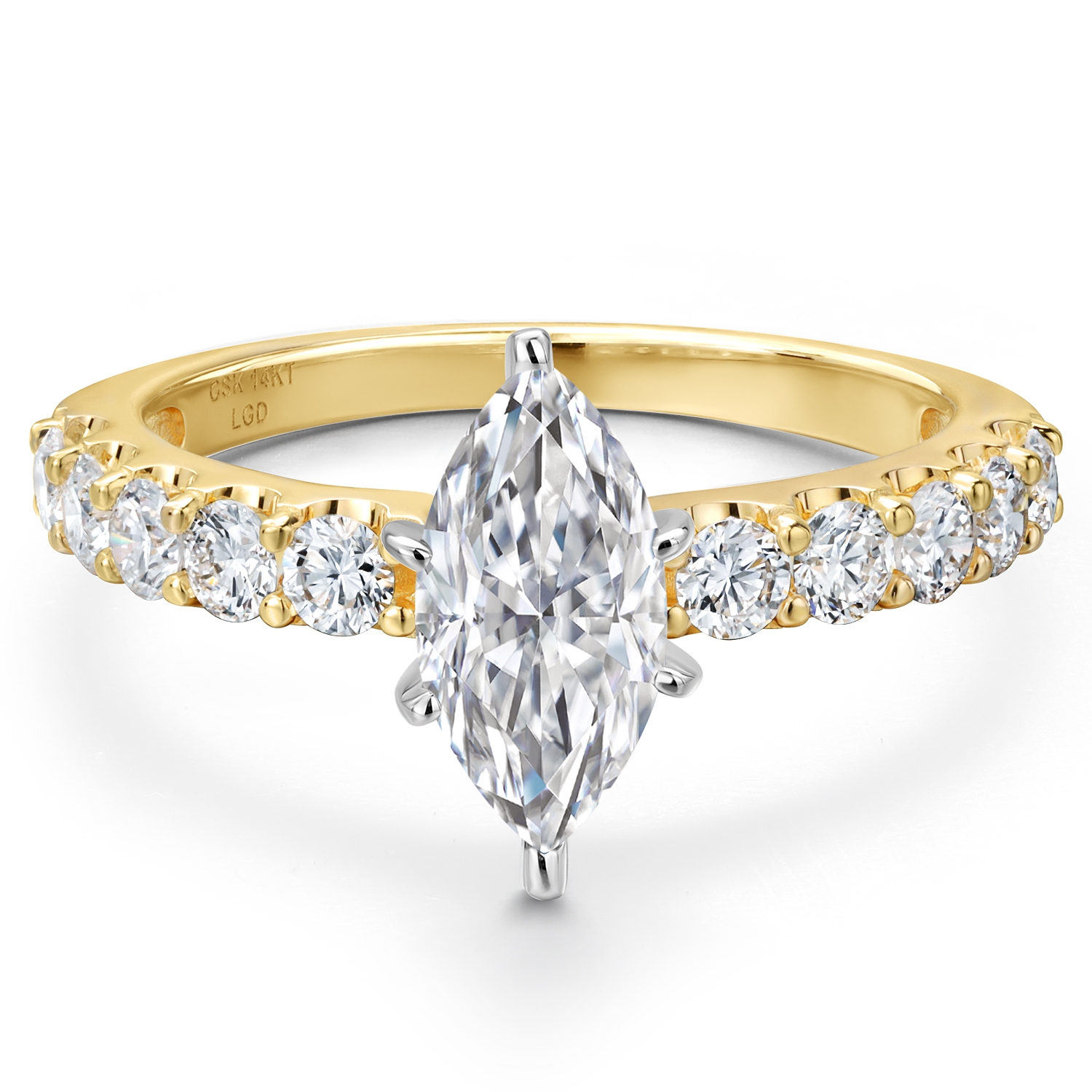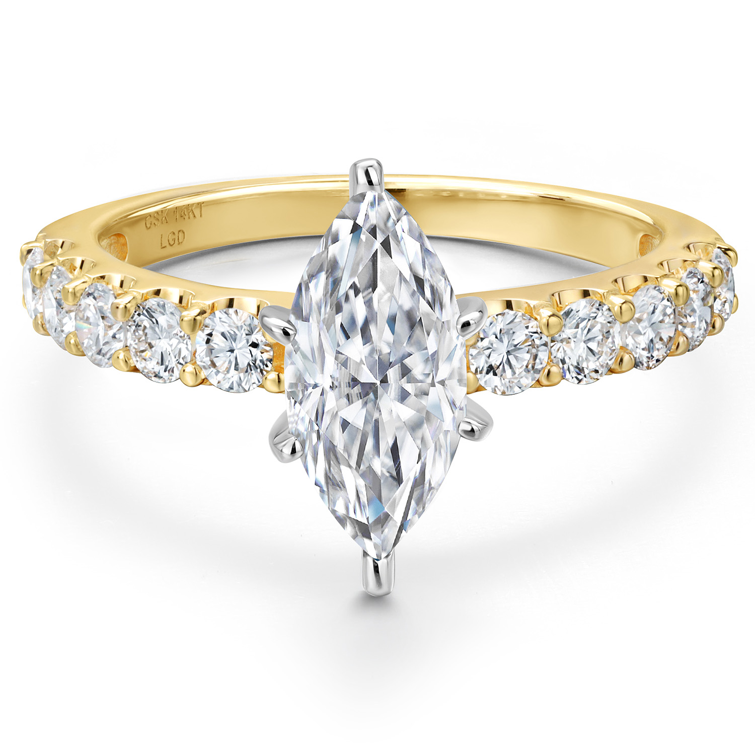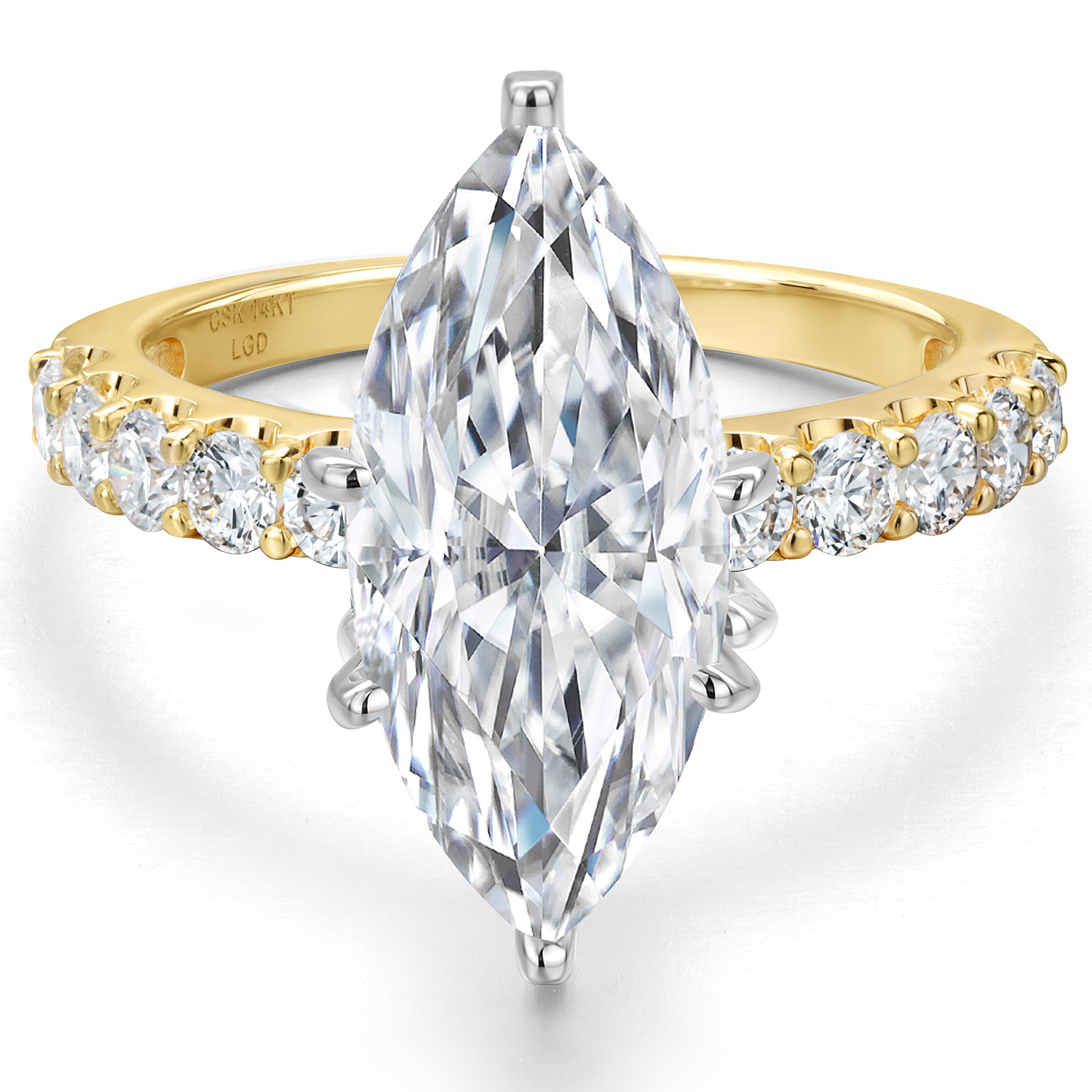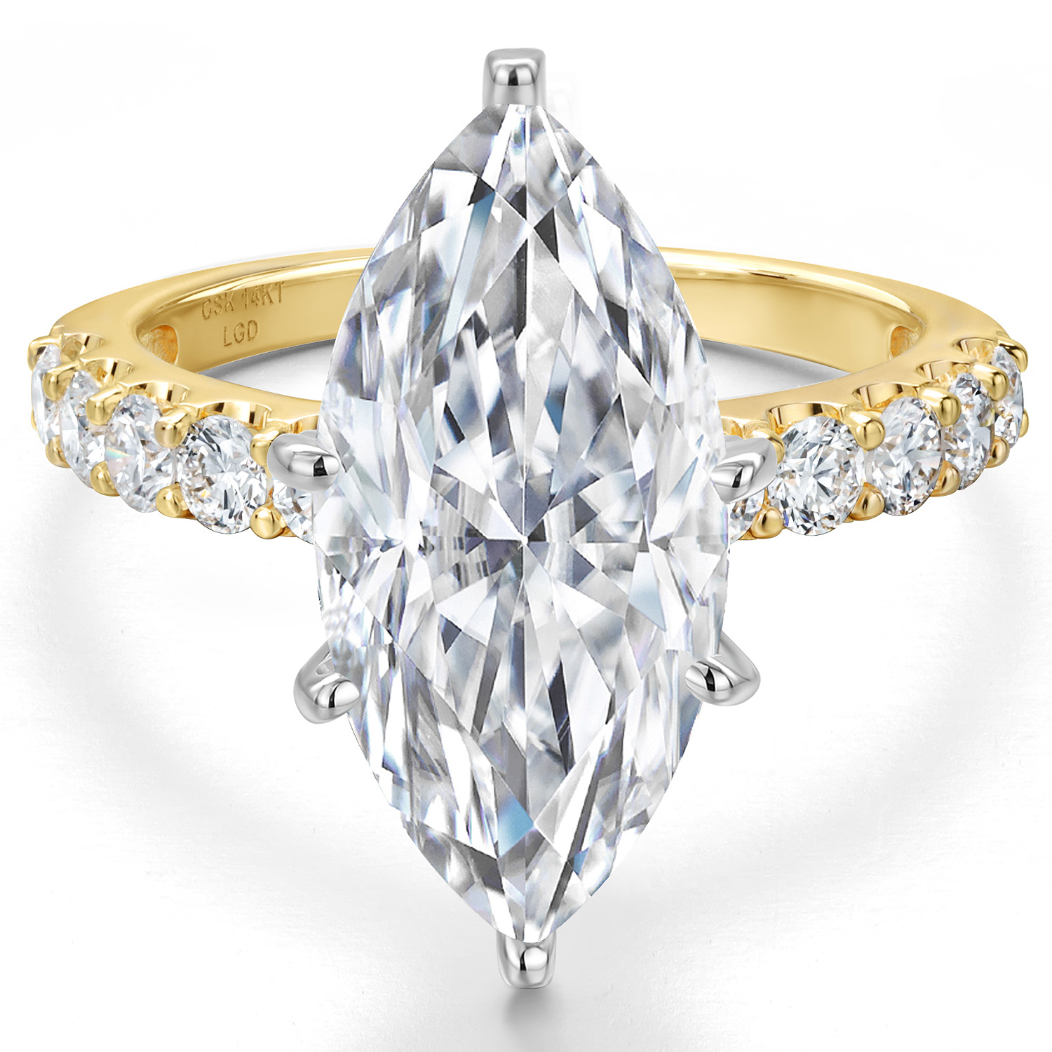 1.70-5.70 Cttw Marquise Cut Lab Grown Diamond Engagement Ring For Women | 2-Tone 14K White and Yellow Gold | IGI Certified | E-F | VS1-VS2 | Wedding Anniversary Ring