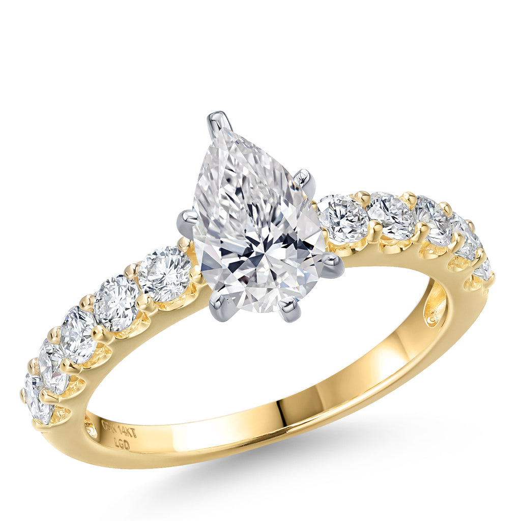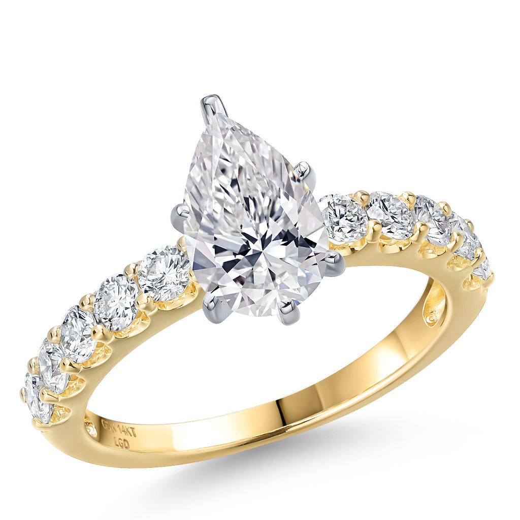 Gem Stone King 1.70-5.70 Cttw IGI Certified Lab Grown Diamond 2-Tone 14K White and Yellow Gold Engagement Ring For Women | Pear Shape | E-F | VS1-VS2 | Wedding Anniversary Ring | Center 1.00ct | 6