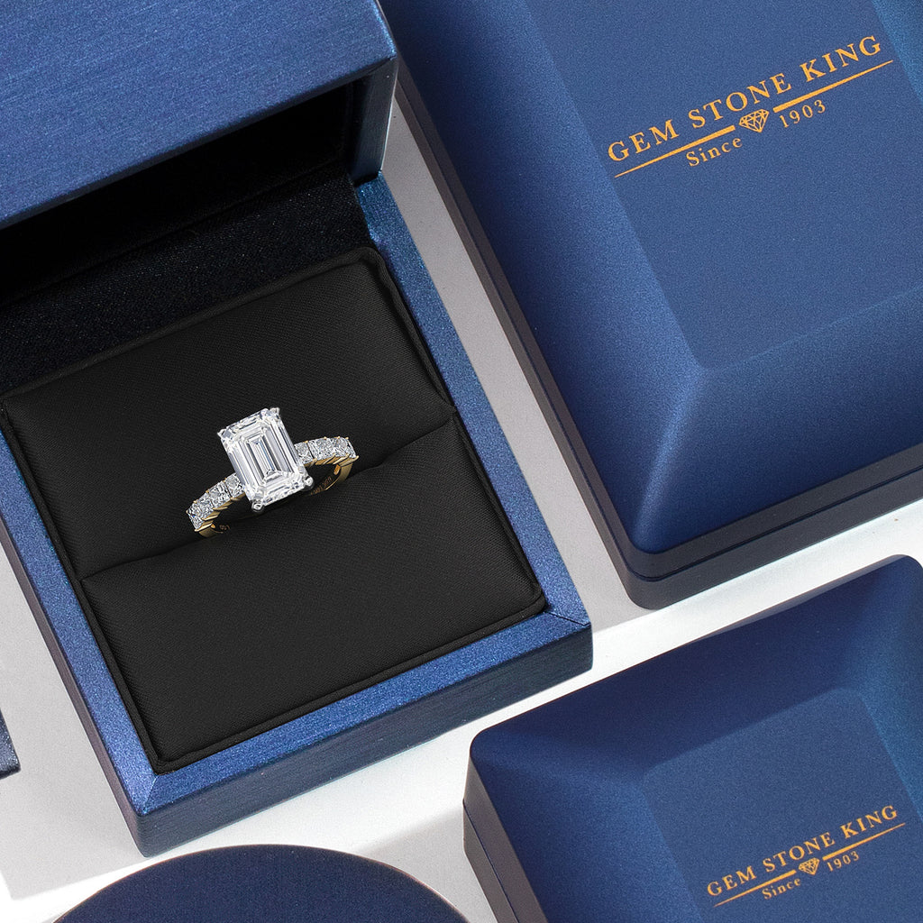 IGI CERTIFIED EMERALD CUT DIAMOND: This elegant engagement ring features an IGI-certified lab-grown diamond ranging from 0.75 to 5 carats, graded E–F color and VS1 clarity. The emerald-cut centerpiece delivers brilliant fire, depth, and timeless sophistication.
