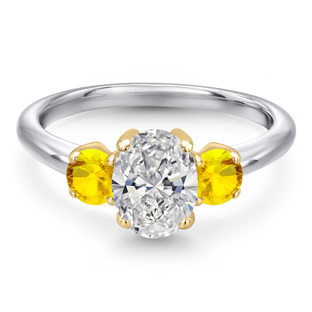 MEASUREMENTS: 8x6mm Oval E - F Lab Grown Diamond, 4x4mm Round Heat-Treated Yellow Sapphire. Total Carat Weight is 1.72 cttw