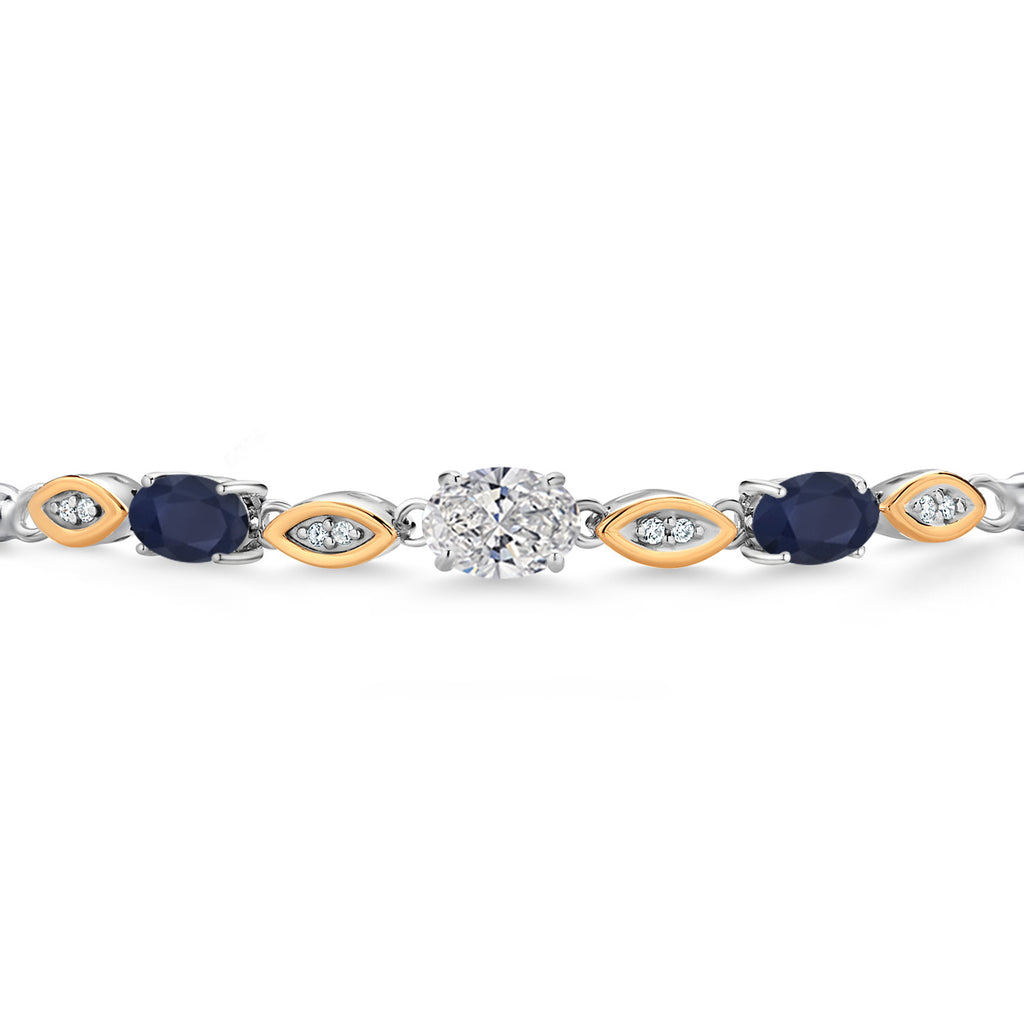 ELEGANT TWO-GEMSTONE DESIGN: This bracelet features a stunning combination of 7x5MM oval lab-grown diamonds (VVS-VS clarity) and 6x4MM oval blue sapphires, totaling 1.81 Cttw, offering a luxurious and timeless look.