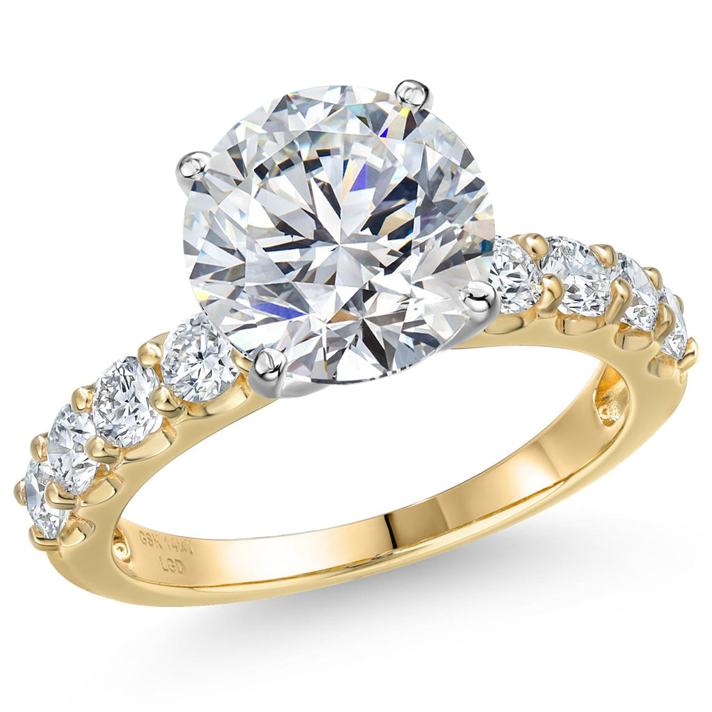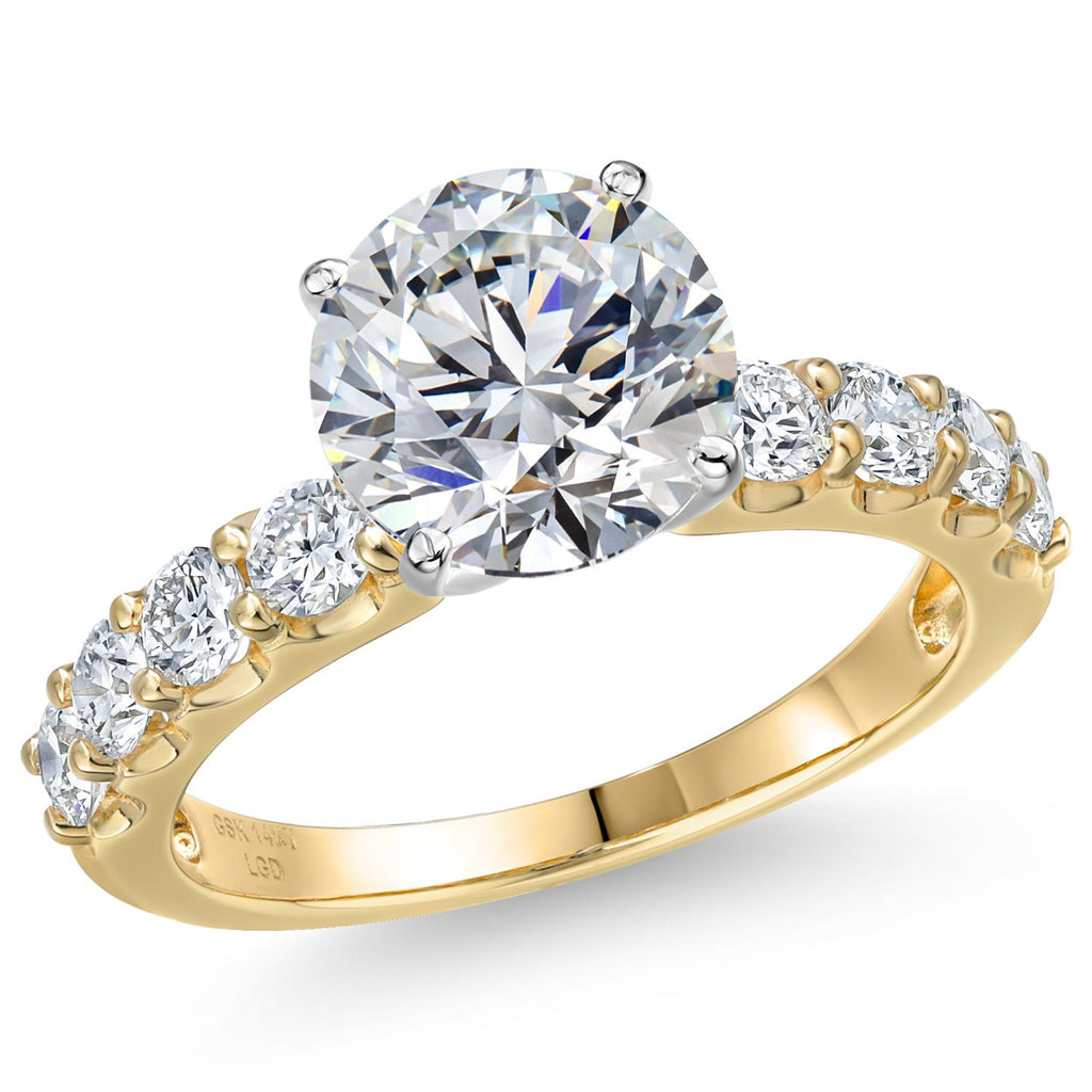 1.63 to 5.88 Cttw Round Lab Grown Diamond Engagement Ring For Women | 14K Yellow and White Gold | IGI Certified | E-F Color VS1 Clarity | Wedding Anniversary Ring | Size 5, 6, 7, 8, 9