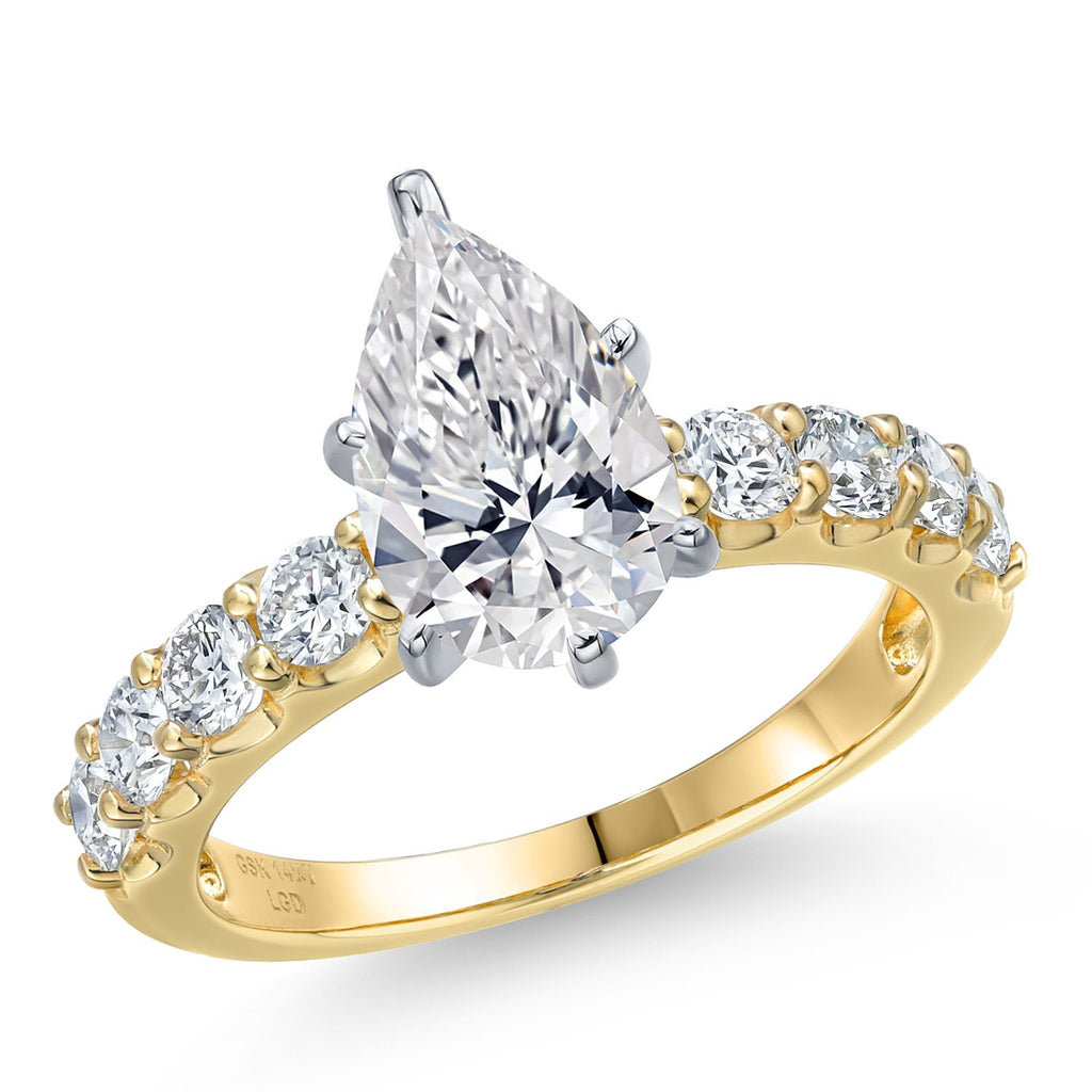1.88 to 4.88 Cttw IGI Certified Lab Grown Diamond 14K Yellow and White Gold Engagement Ring For Women | Pear Shape | E-F Color VS1 Clarity | Wedding Anniversary Ring
