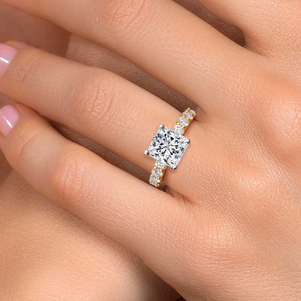 1.88 to 5.88 Cttw Princess Lab Grown Diamond Engagement Ring For Women | 14K Yellow and White Gold | IGI Certified | E-F Color | VS1 Clarity | Wedding Anniversary Ring