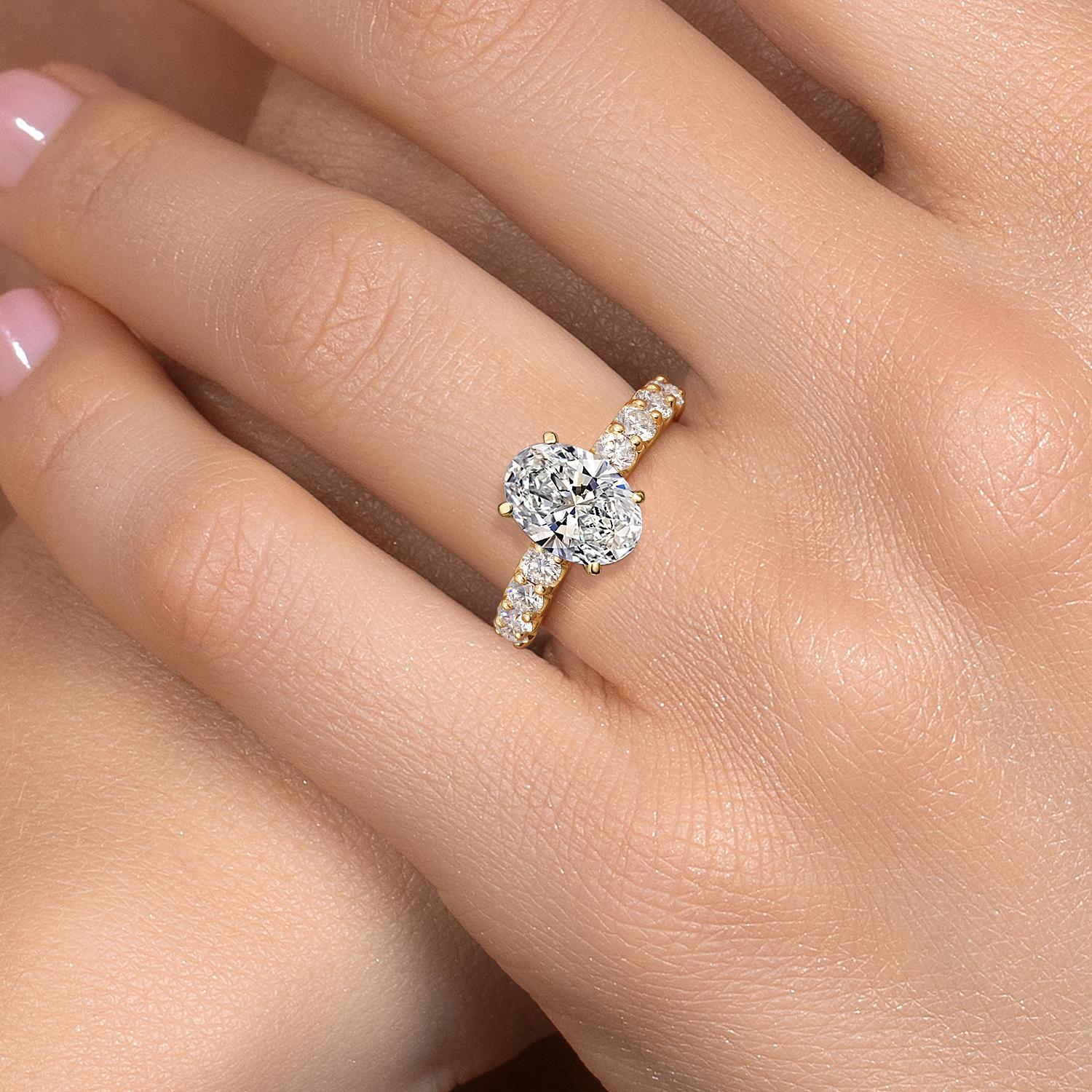 1.88 to 5.88 Cttw IGI Certified Lab Grown Diamond in 14K Yellow Gold Engagement Ring For Women | Oval Cut | E-F Color | VS1 Clarity | Wedding Anniversary Gold Ring