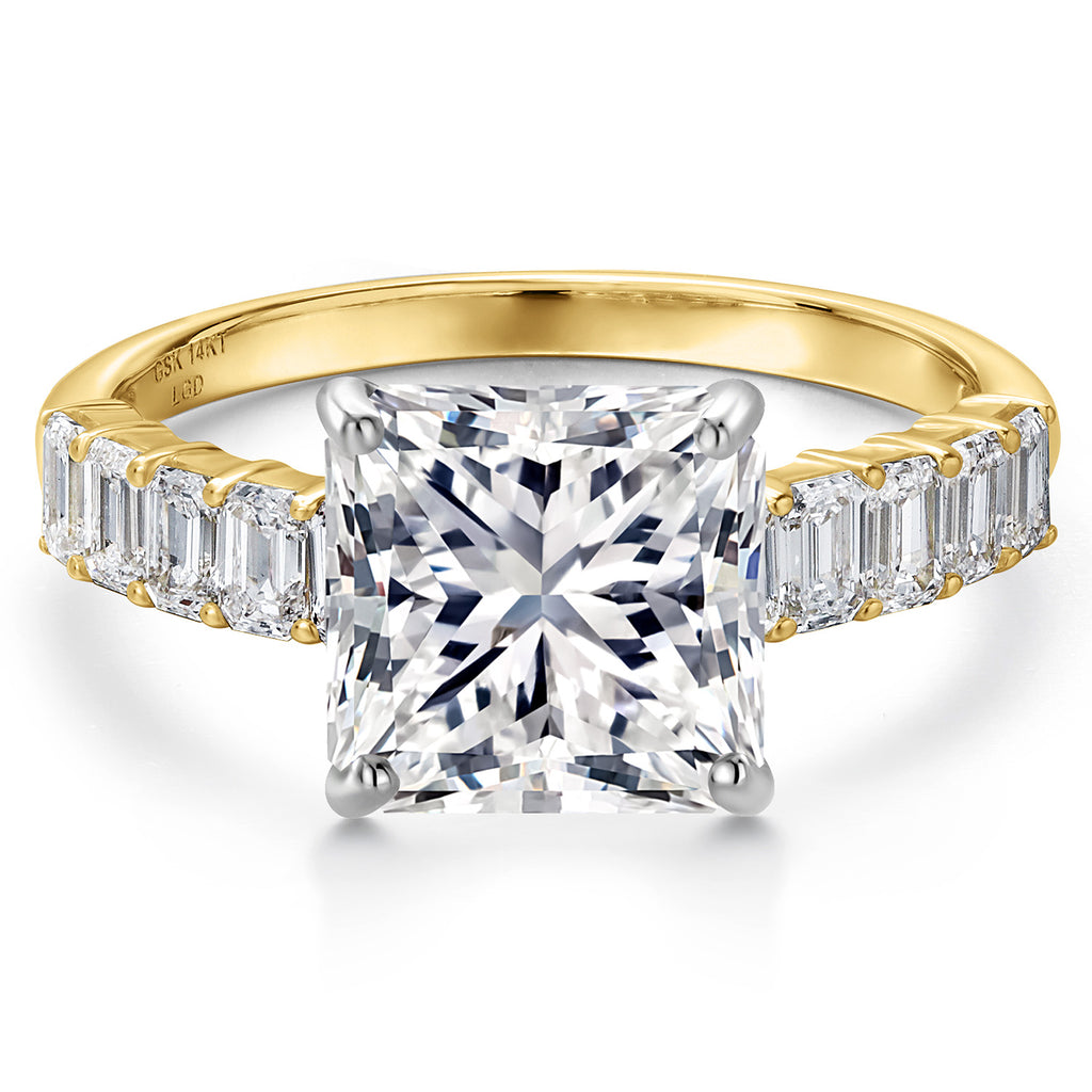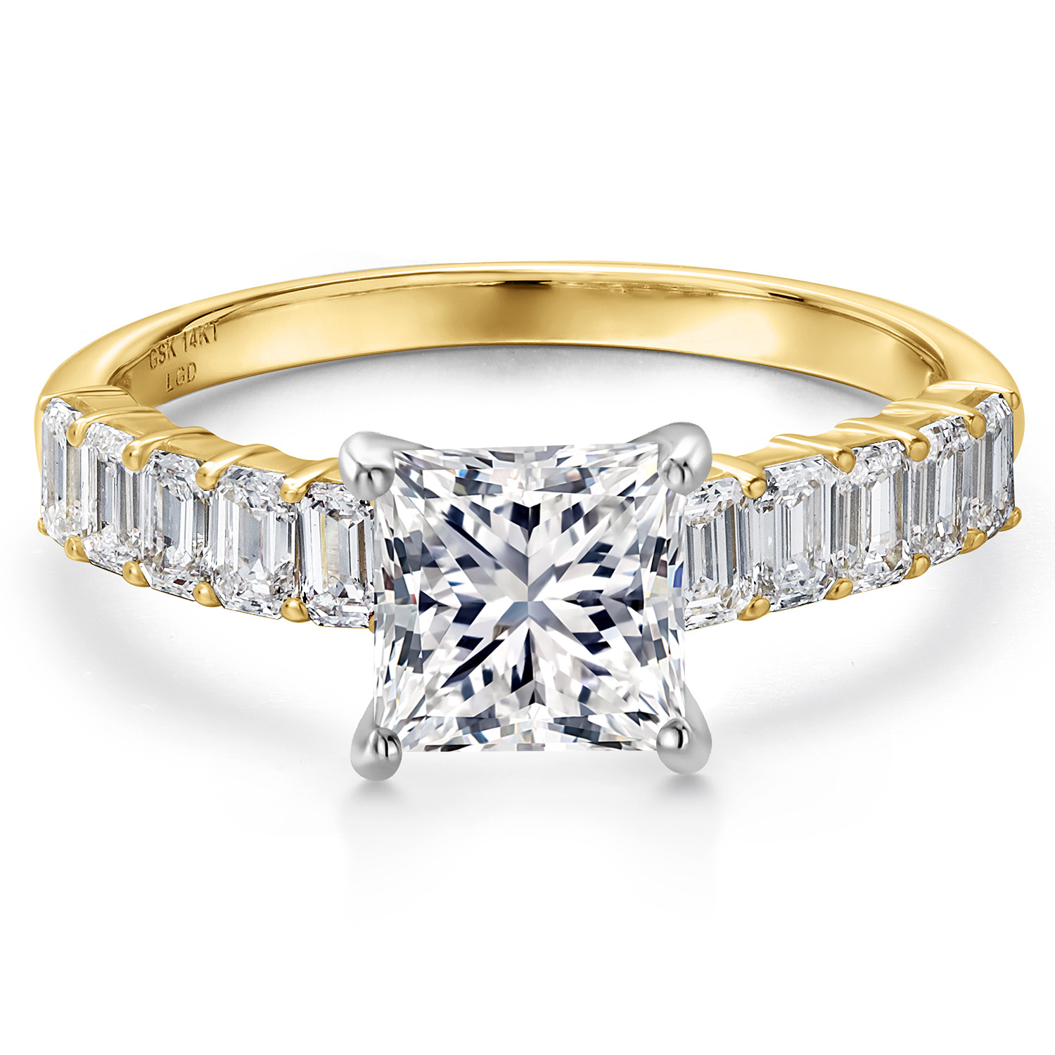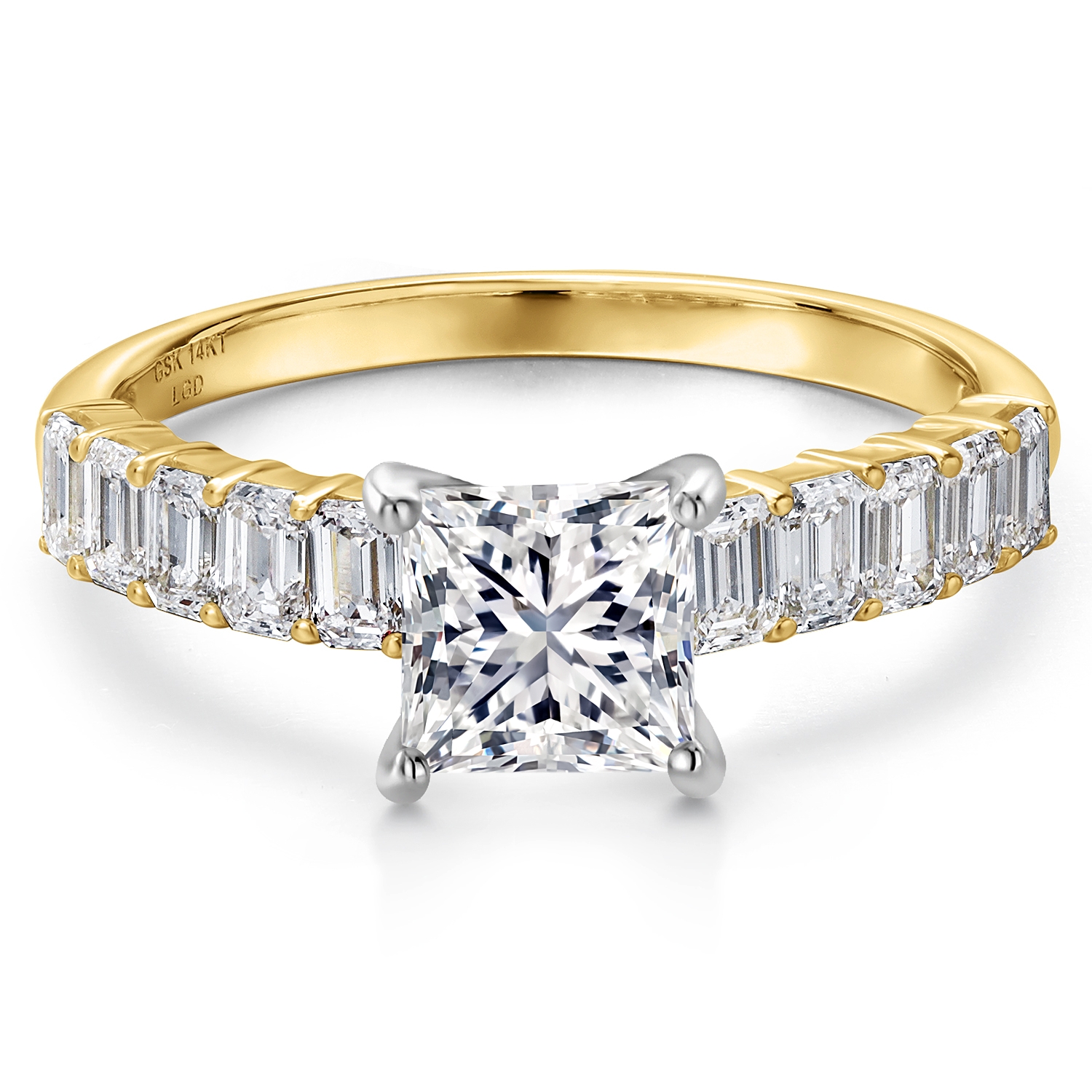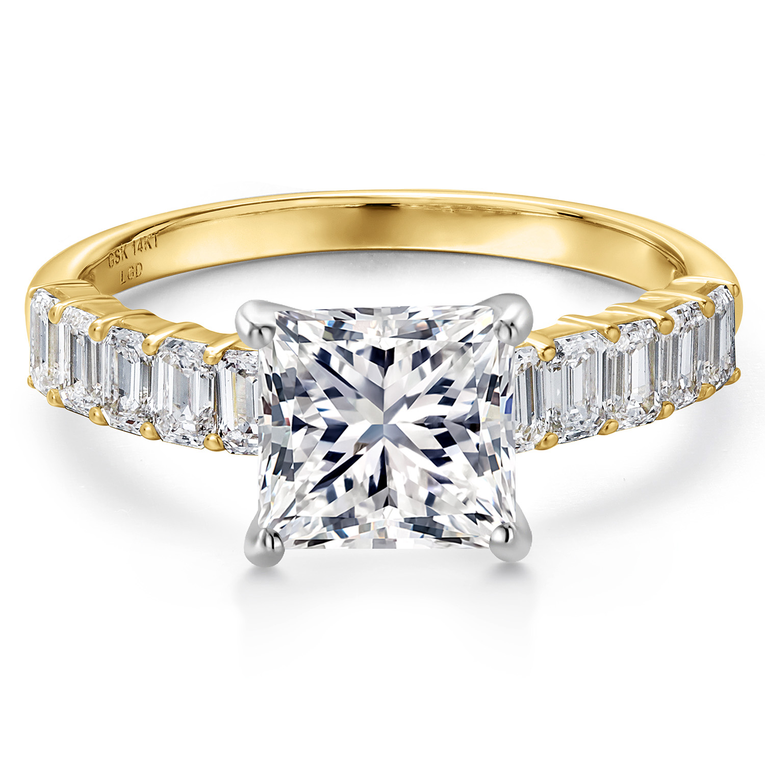 1.90 to 5.90 Cttw Princess Cut Lab Grown Diamond Anniversary Engagement Ring For Women | 2-Tone 14K White and Yellow Gold | IGI Certified | E-F Color | VS1 Clarity