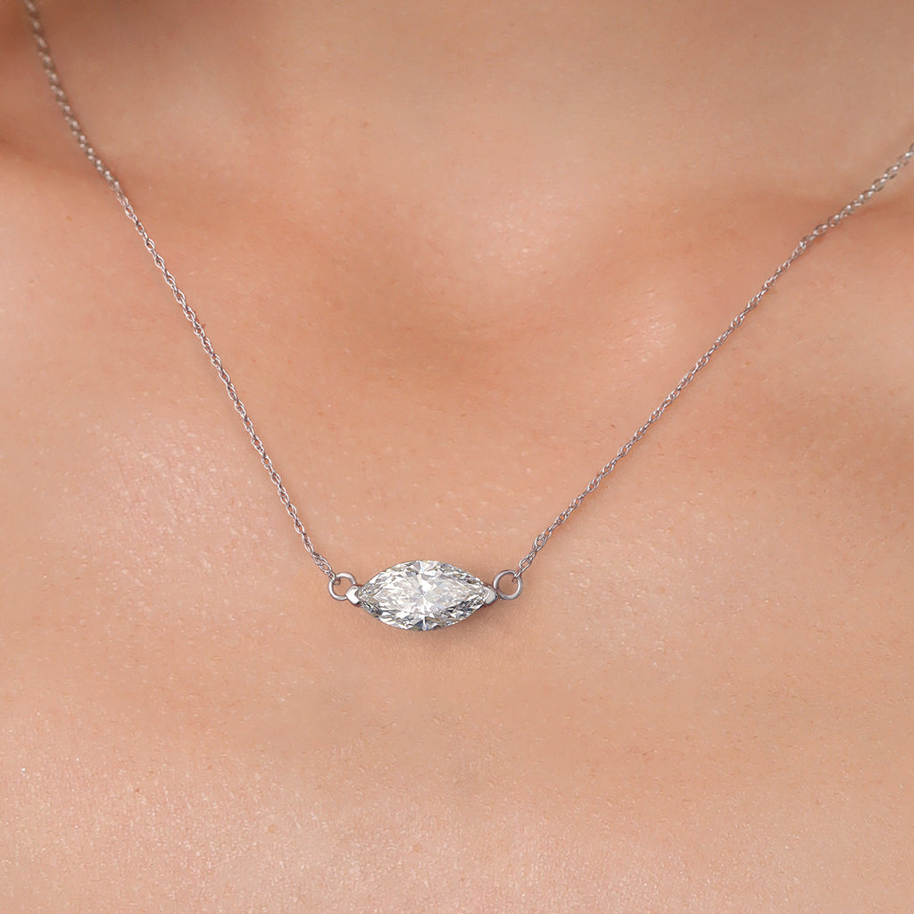 EXCEPTIONAL QUALITY AND CERTIFICATION: This pendant necklace features a stunning 1-carat marquise cut lab-grown diamond, certified by IGI for its exceptional quality. With E-F color and VS1-VS2 Clarity, the diamond exhibits remarkable brilliance and clarity, rivaling natural diamonds in beauty and value.