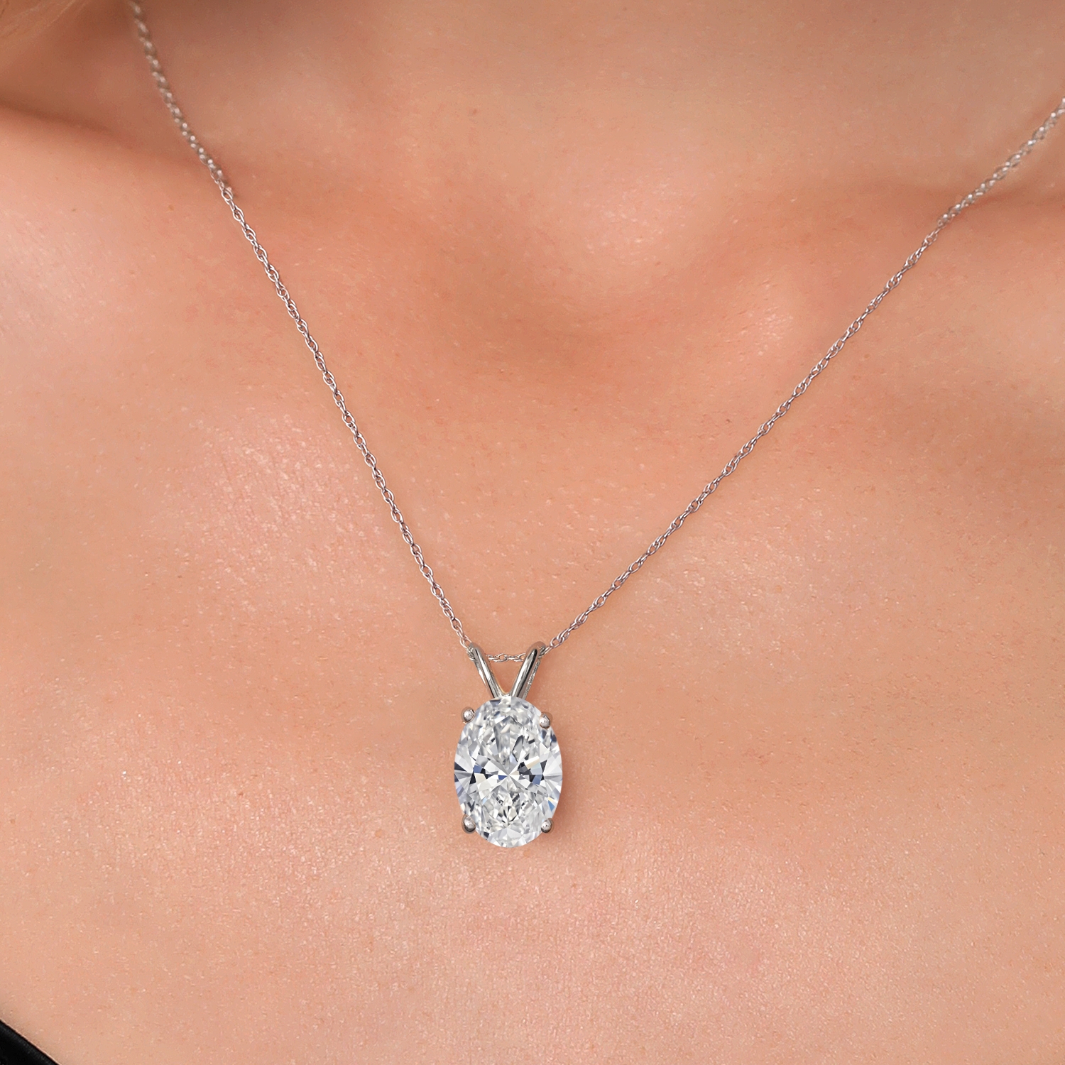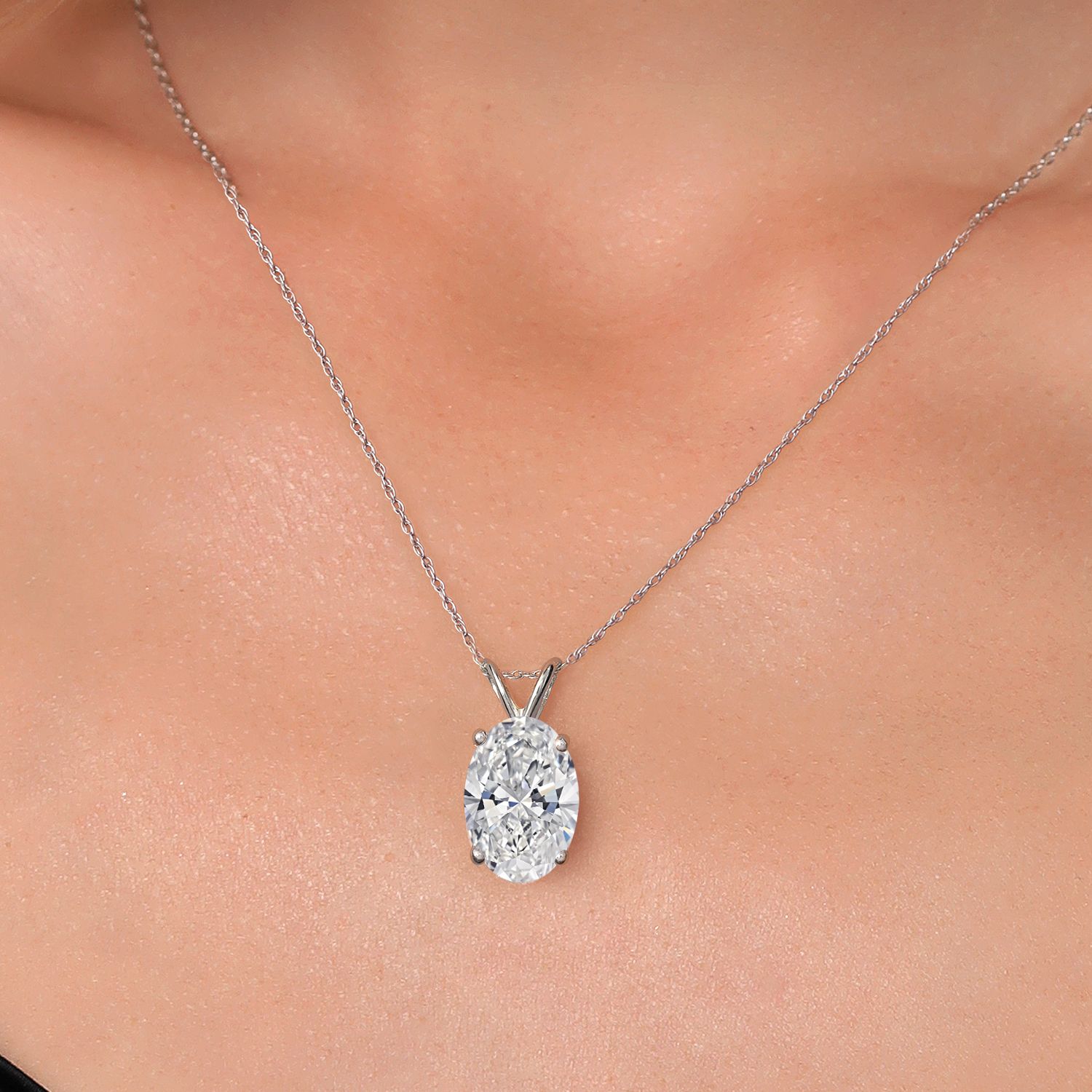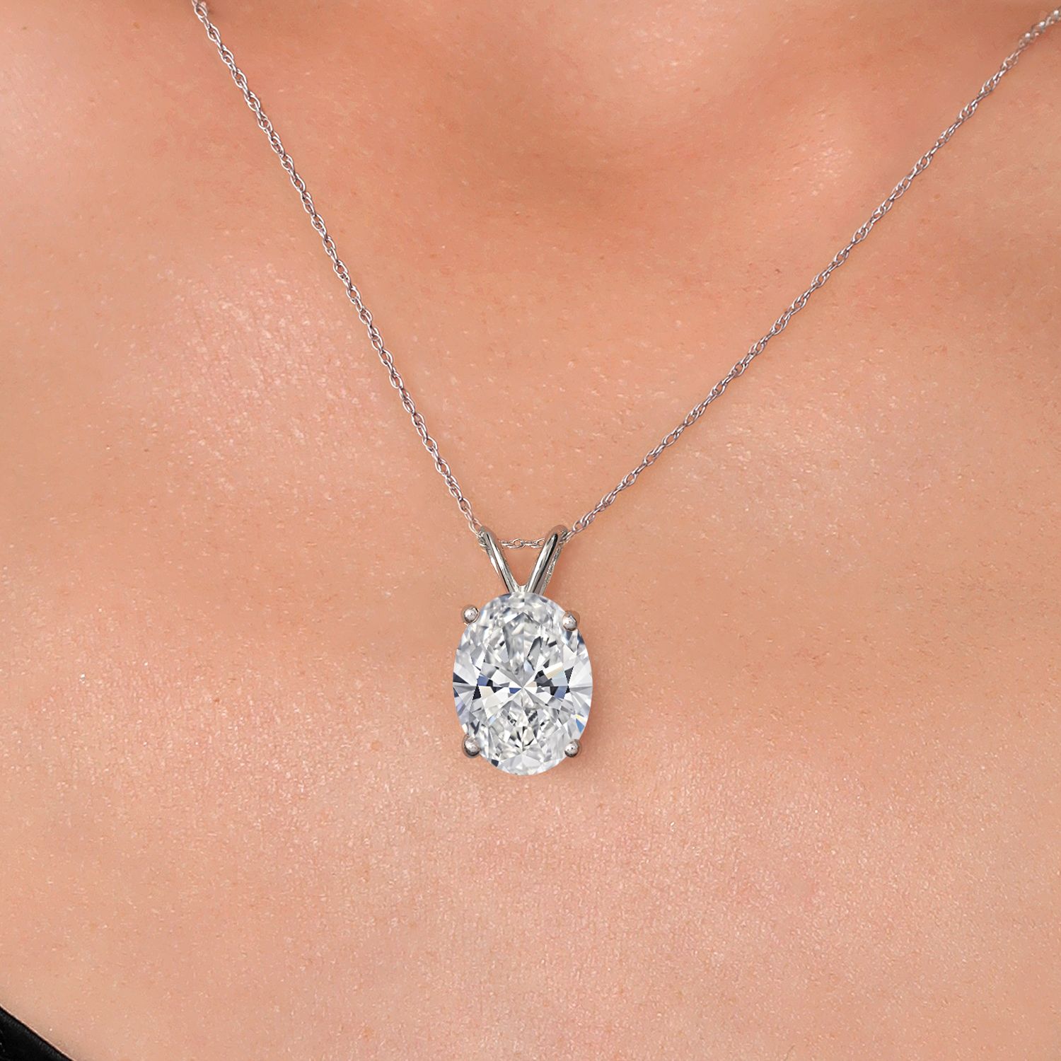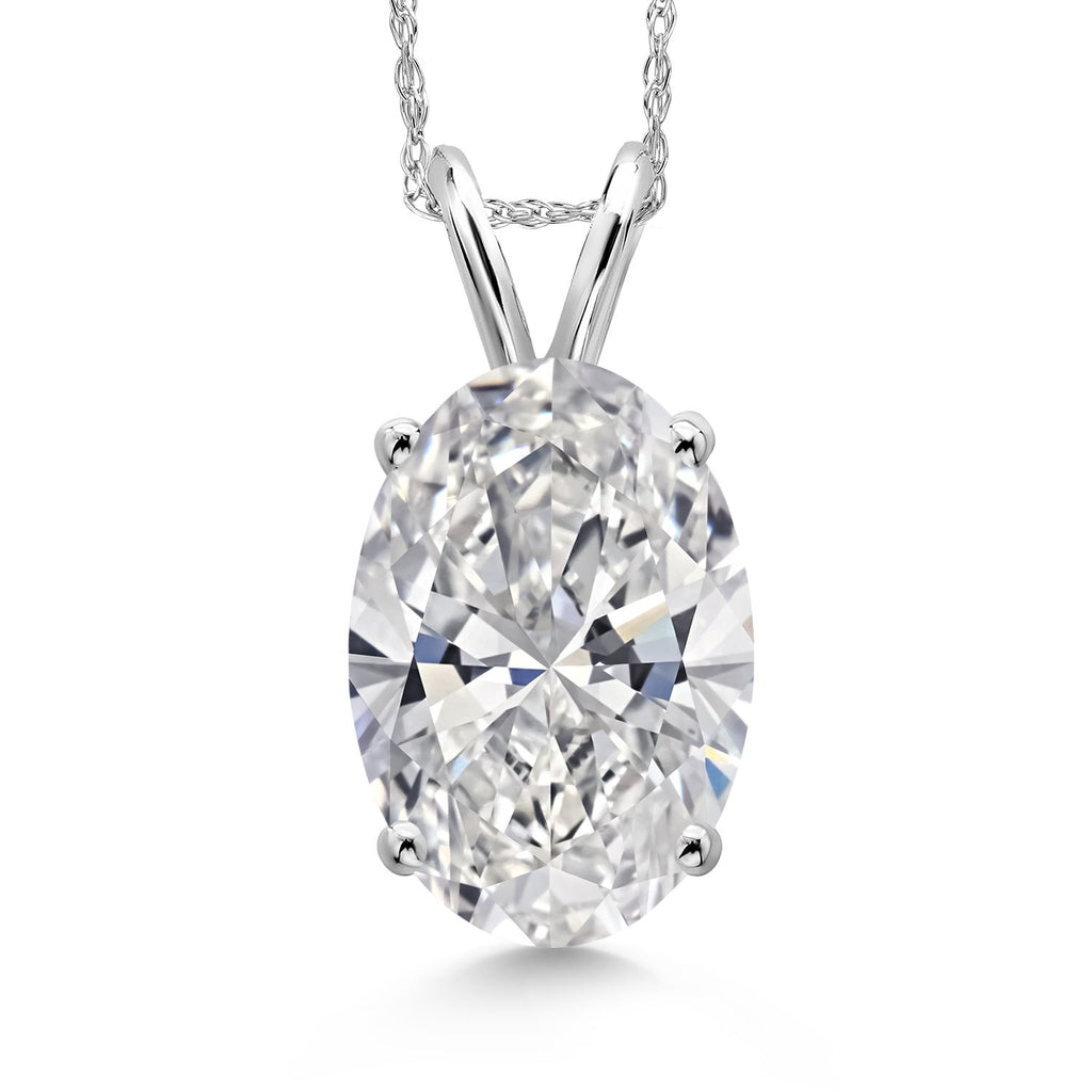 EXQUISITE 1–5 CT IGI-CERTIFIED OVAL CUT DIAMOND: This pendant features a dazzling oval-cut lab grown diamond available in carat weights of 1.00, 1.50, 2.00, 2.50, 3.00, 4.00, and 5.00. Certified by IGI for quality and authenticity, the diamond boasts a near-colorless E-F Color grade and VS1-VS2 Clarity, ensuring exceptional brilliance and minimal inclusions. The elegant oval shape enhances its sparkle and creates a timeless centerpiece for any occasion.
