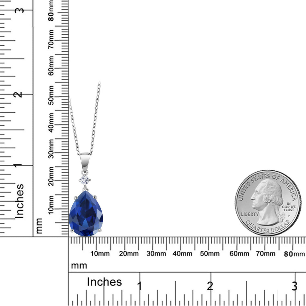 STRIKING BLUE SIMULATED SAPPHIRE: Centering this exquisite pendant is a pear-shaped 16X12MM blue simulated sapphire, totaling an impressive 10.30 Cttw. This vibrant gemstone offers the mesmerizing beauty of sapphires, making it a stunning focal point that captures the essence of sophistication and elegance.