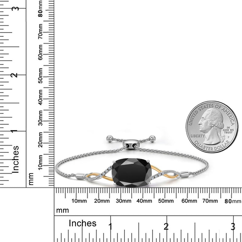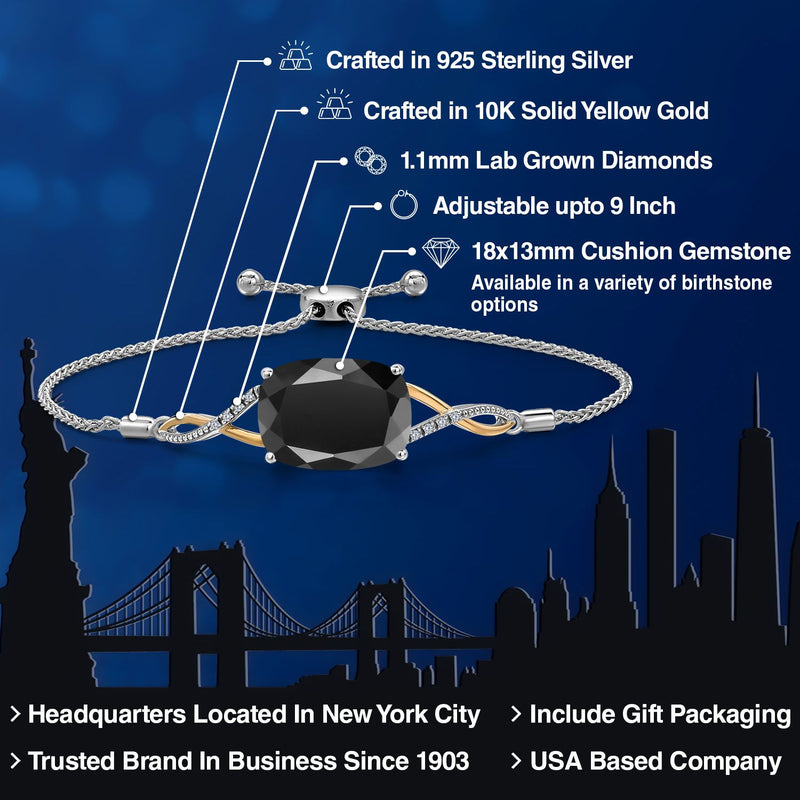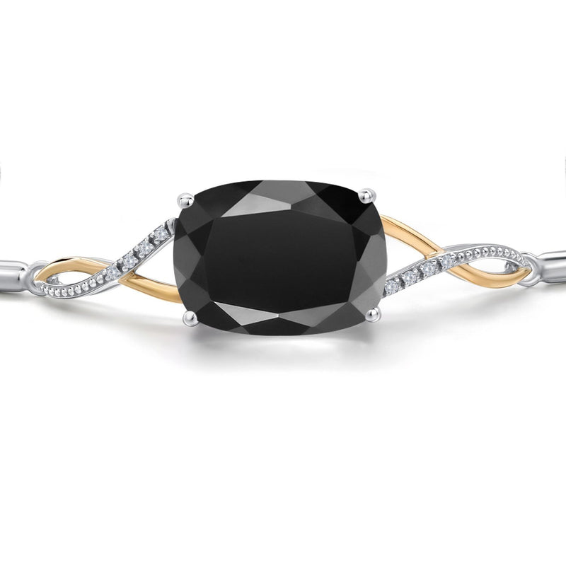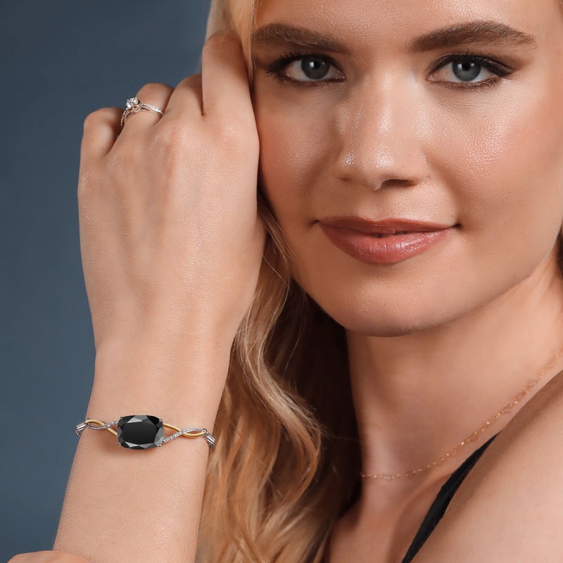 LUXURIOUS DESIGN: This exquisite bracelet features a striking 18X13MM Cushion Cut Black Onyx, beautifully accented by sparkling White Lab Grown Diamonds, totaling 10.62 Cttw. The combination of 925 Silver and 10K Yellow Gold adds a touch of luxury and sophistication.