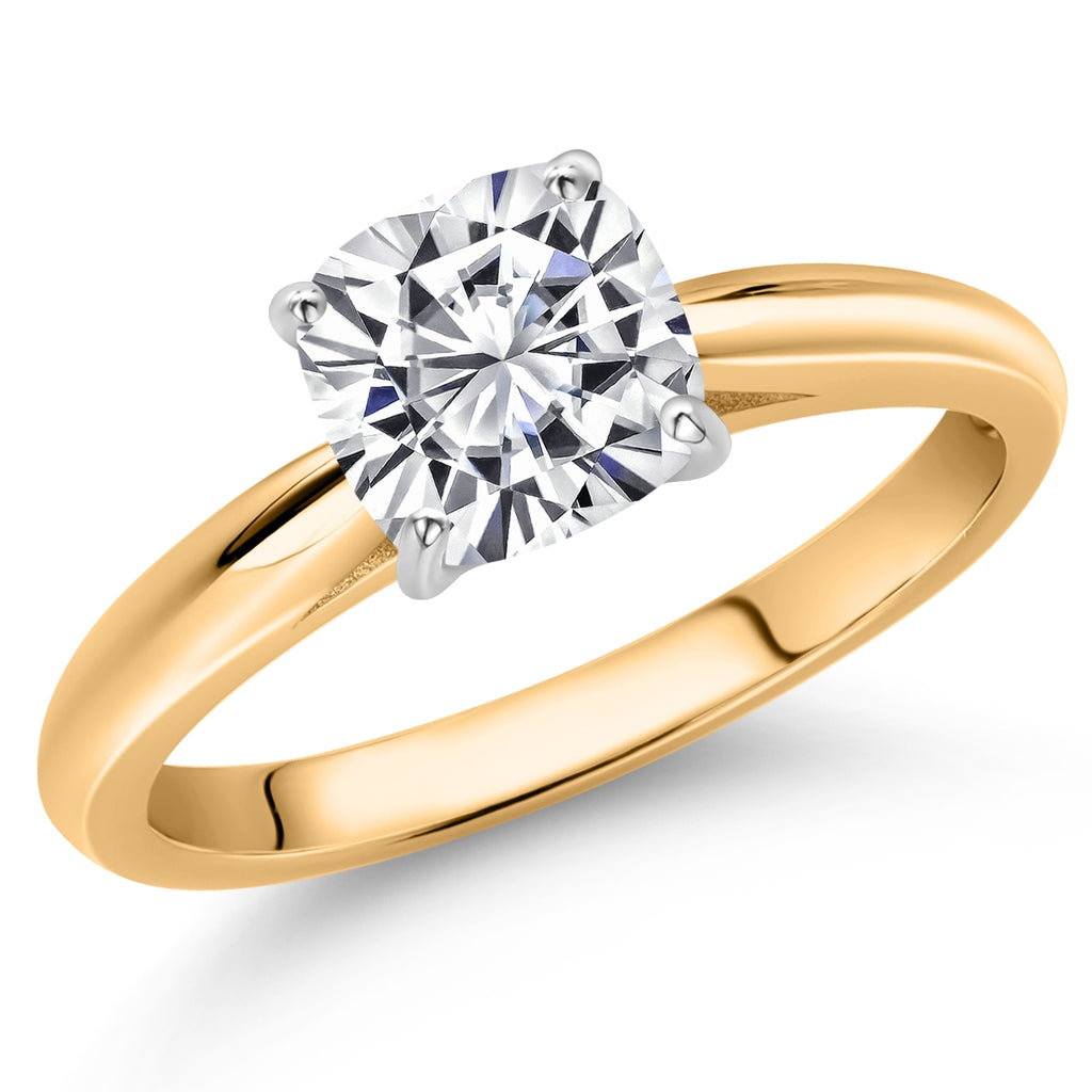 2-Tone Engagement Ring For Women | 925 Silver and 10K Yellow Gold | Gemstone Birthstone | 6MM Cushion Cut | Wedding Anniversary Promise Ring | Available In Size 5, 6, 7, 8, 9