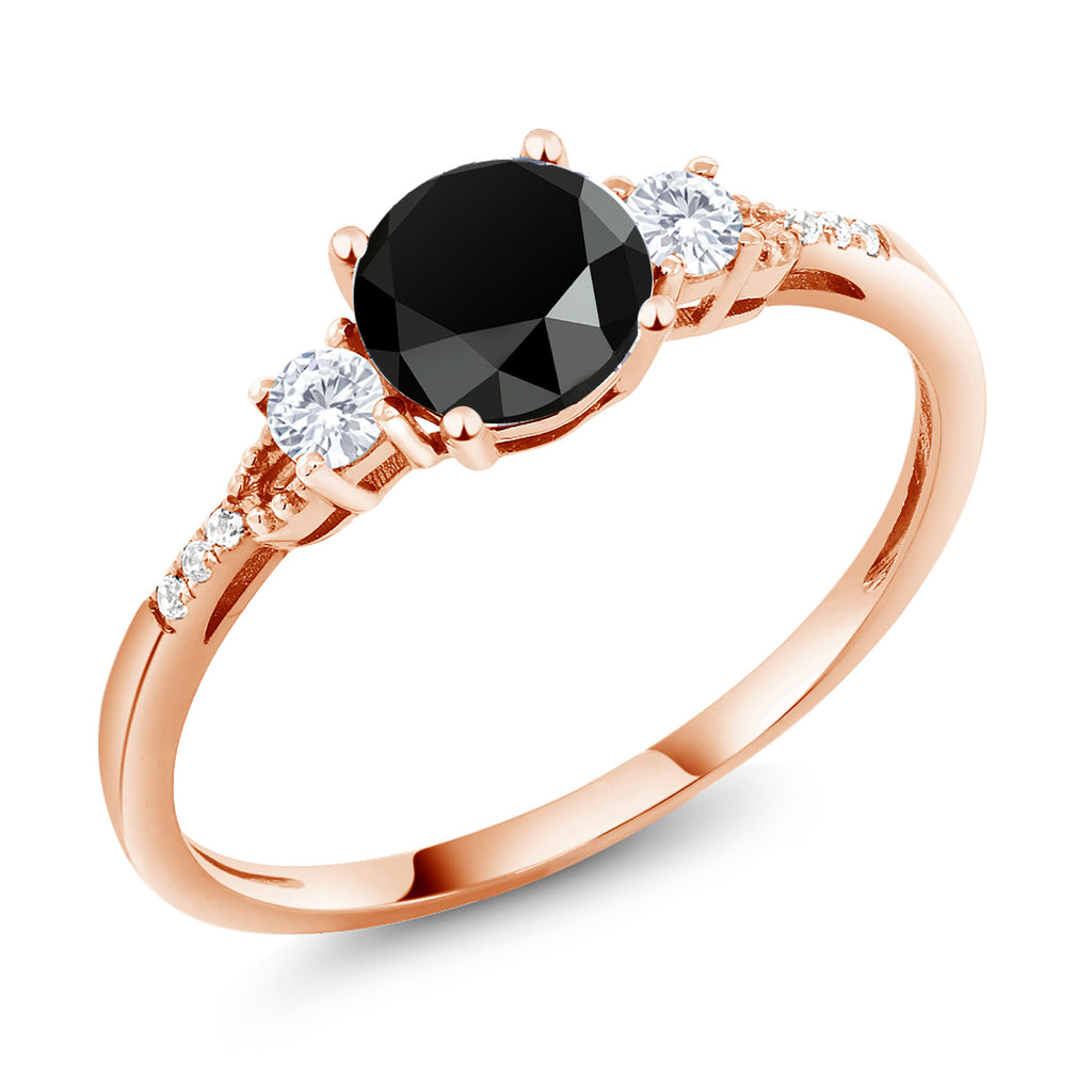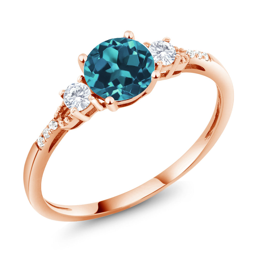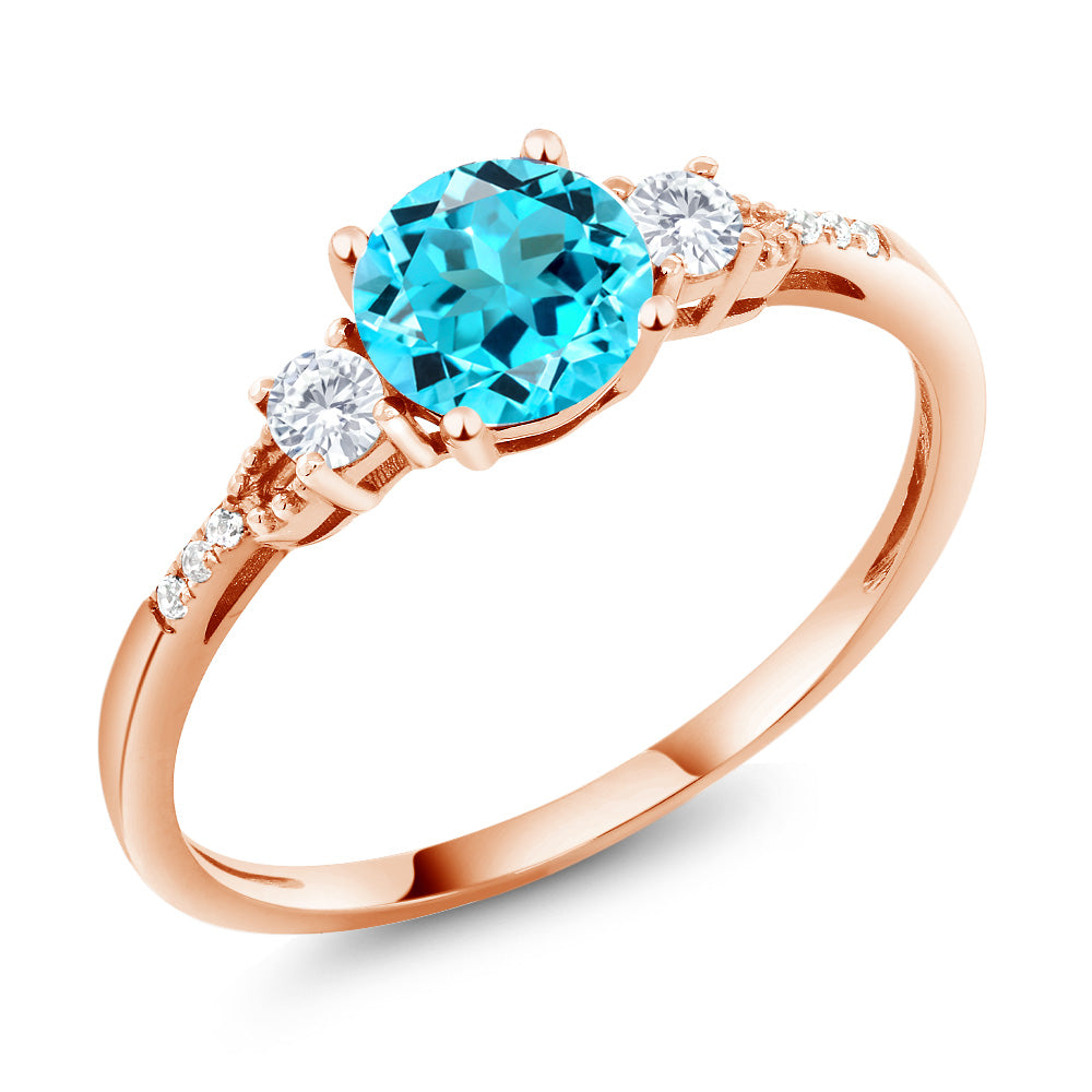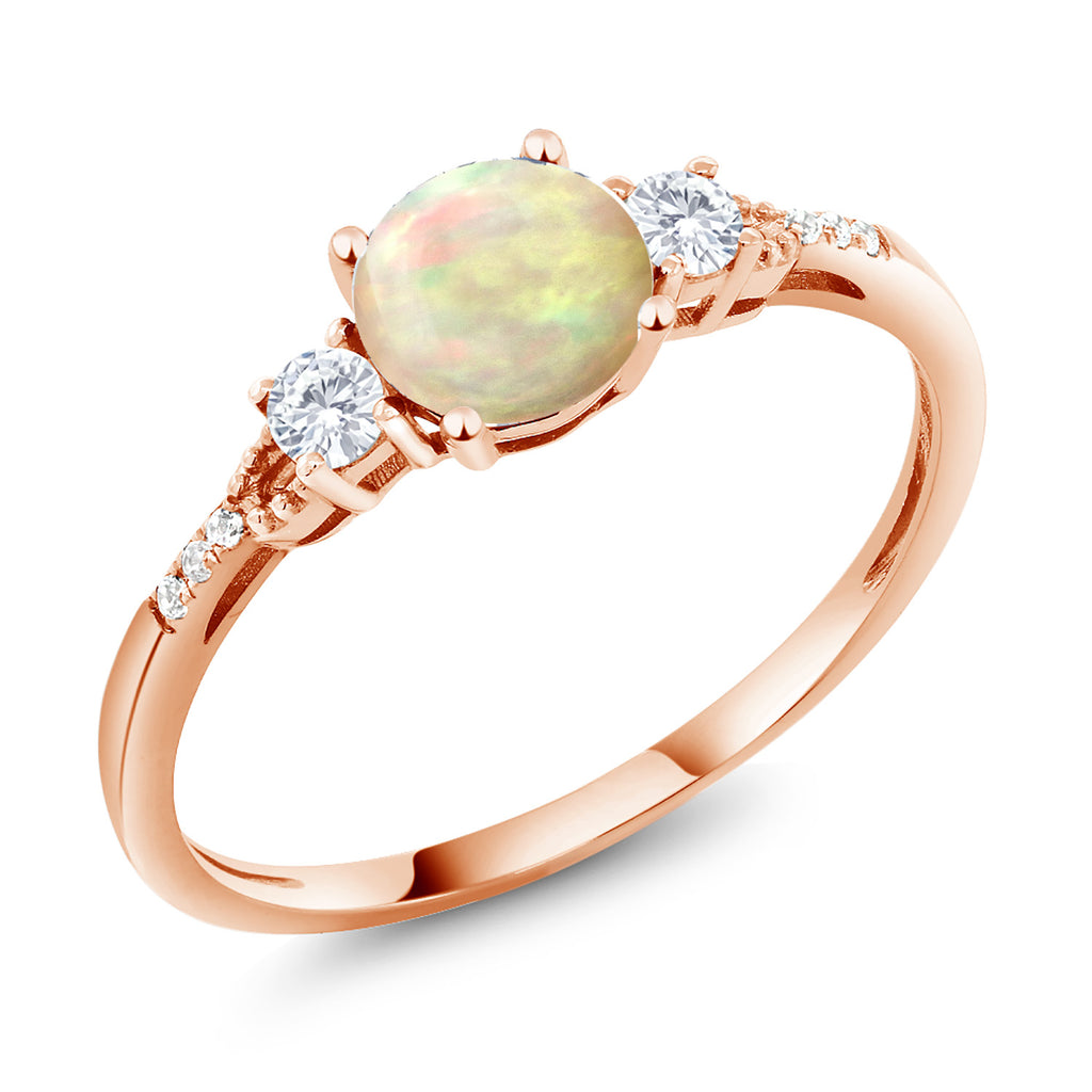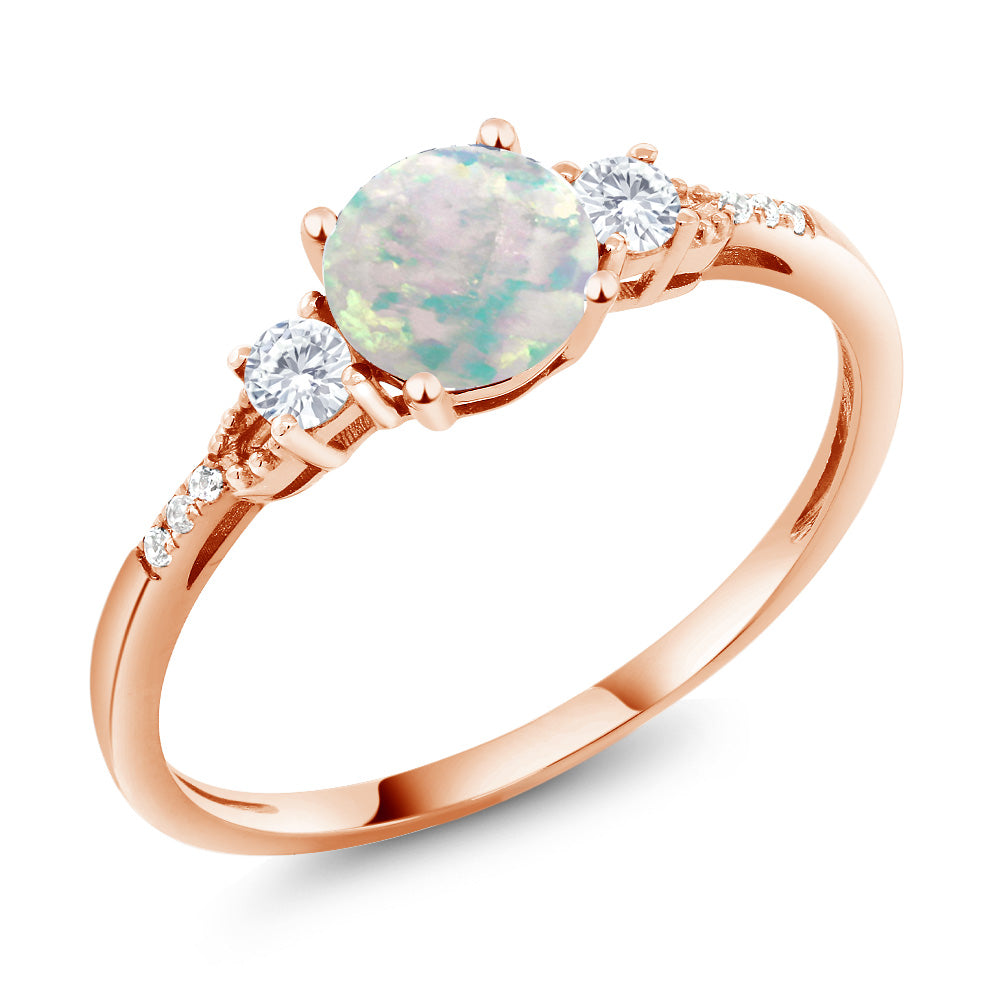 10K Rose Gold 6MM Round Gemstone Birthstone White Created Sapphire and White Diamond Accent 3-Stone Engagement Ring | Three-Stone Wedding Anniversary Promise Ring For Women