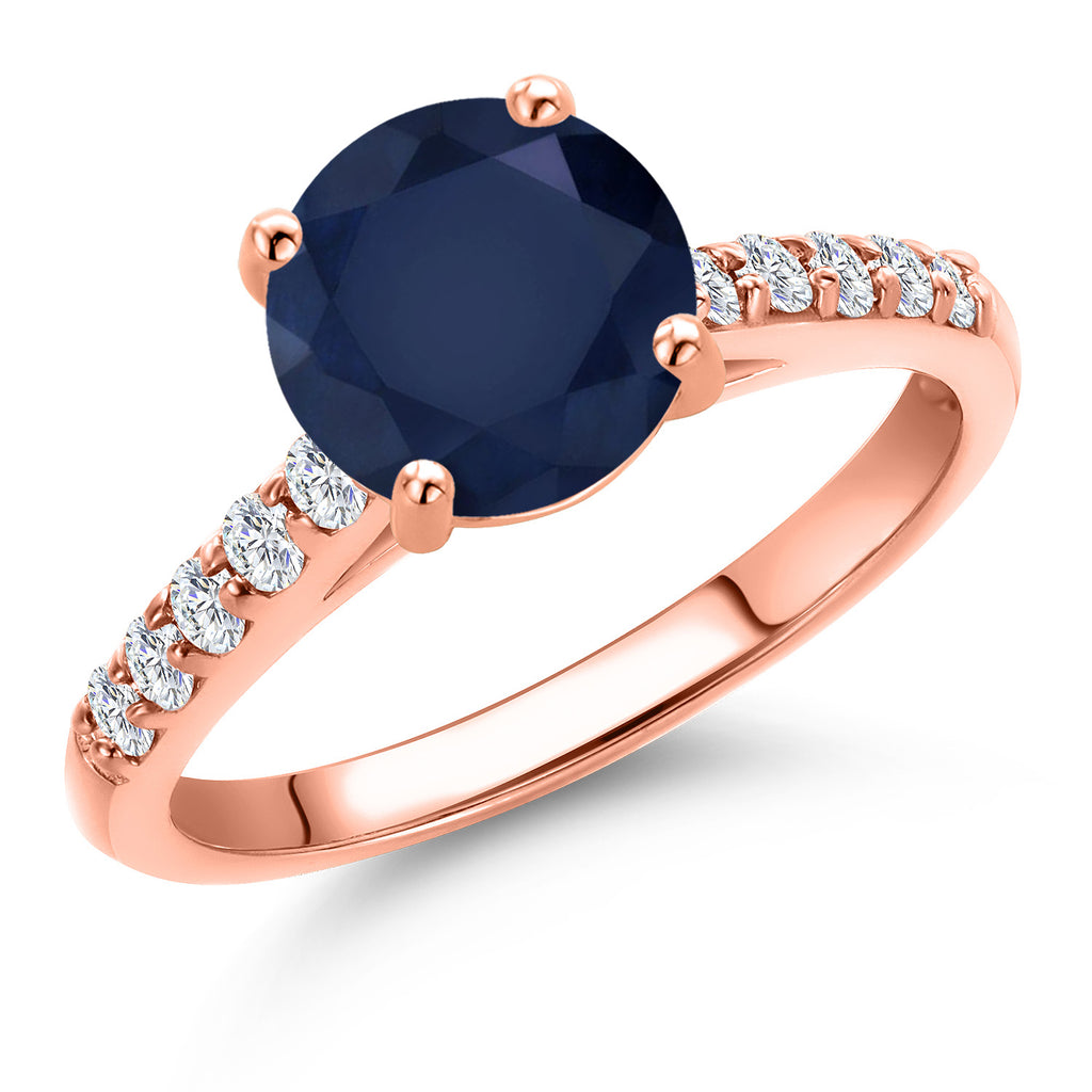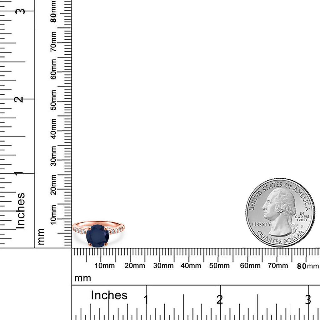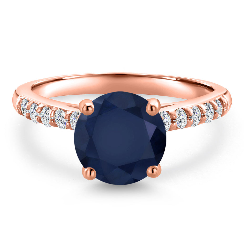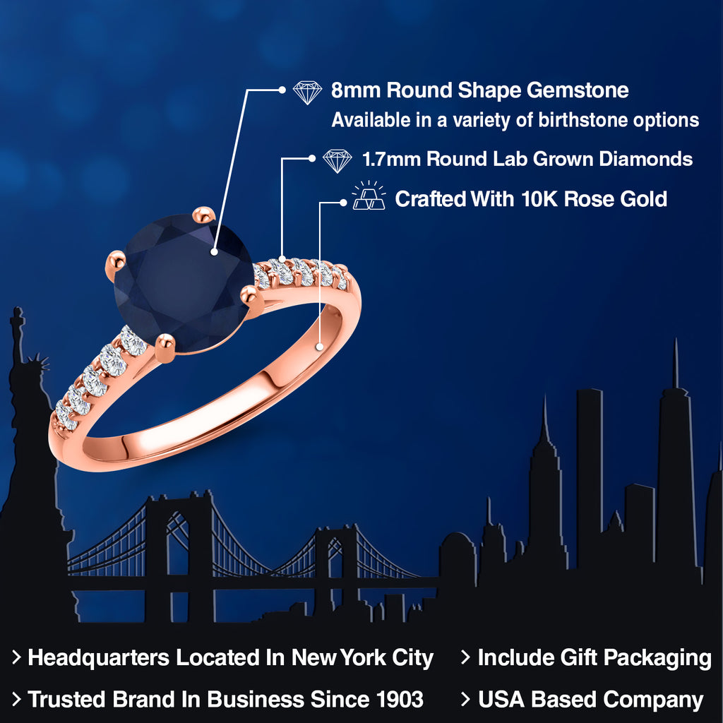 10K Rose Gold Blue Sapphire and Lab Grown Diamond Engagement Ring For Women | 2.66 Cttw | Round 8MM | Gemstone September Birthstone | Available in Size 5,6,7,8,9