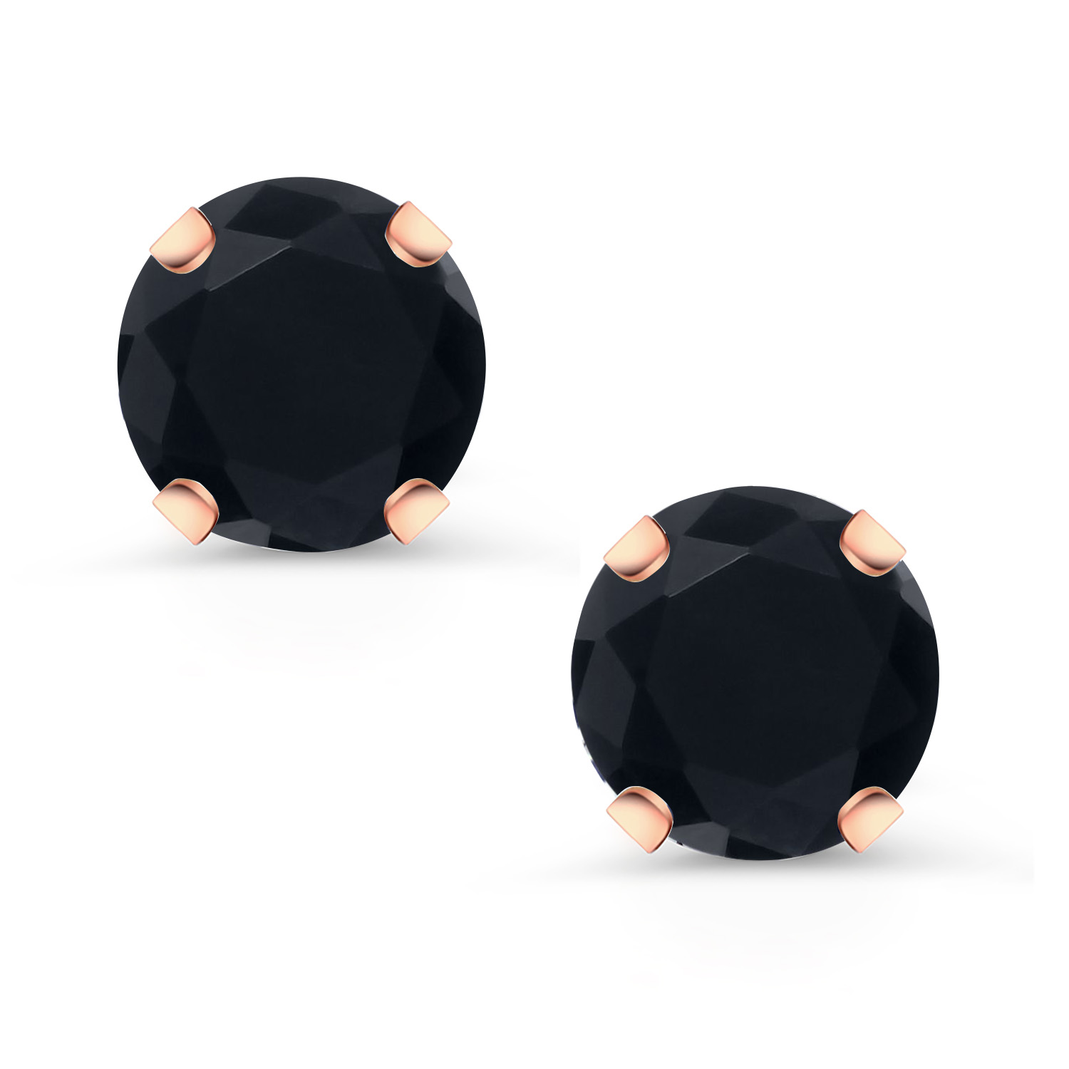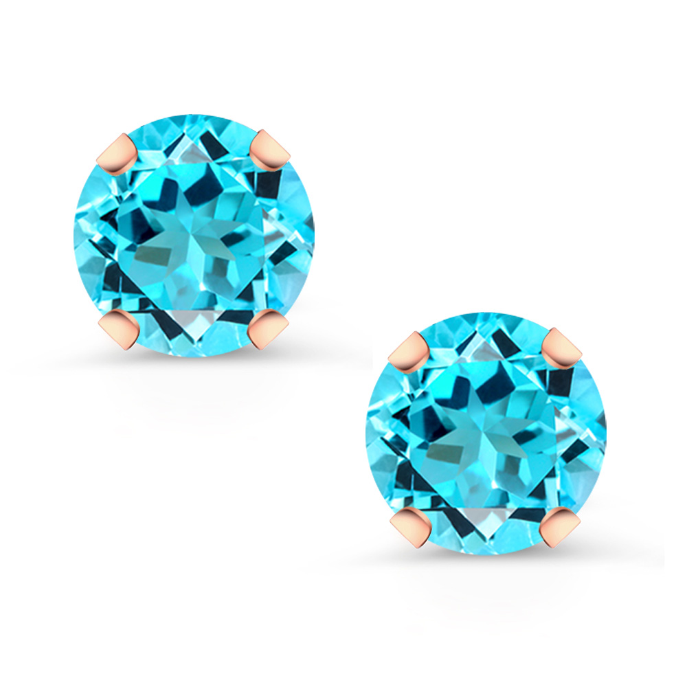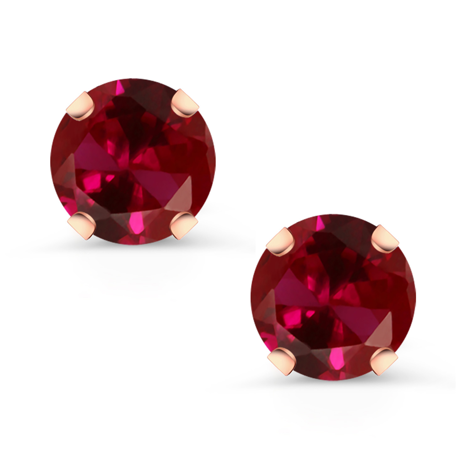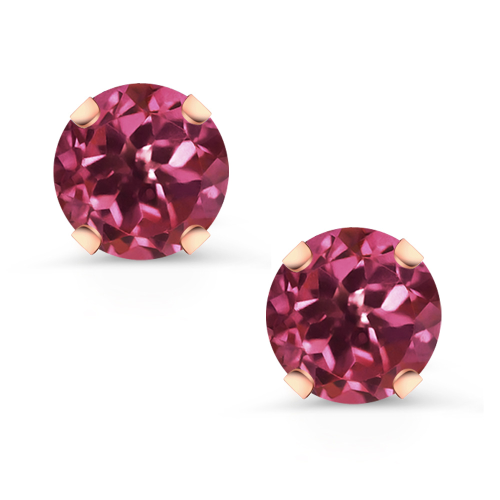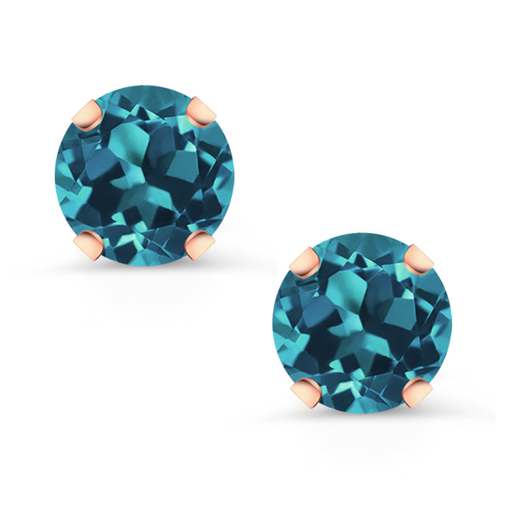 10K Rose Gold Gemstone Birthstone Stud Earrings | Round 5MM | Gold Earrings For Women Men