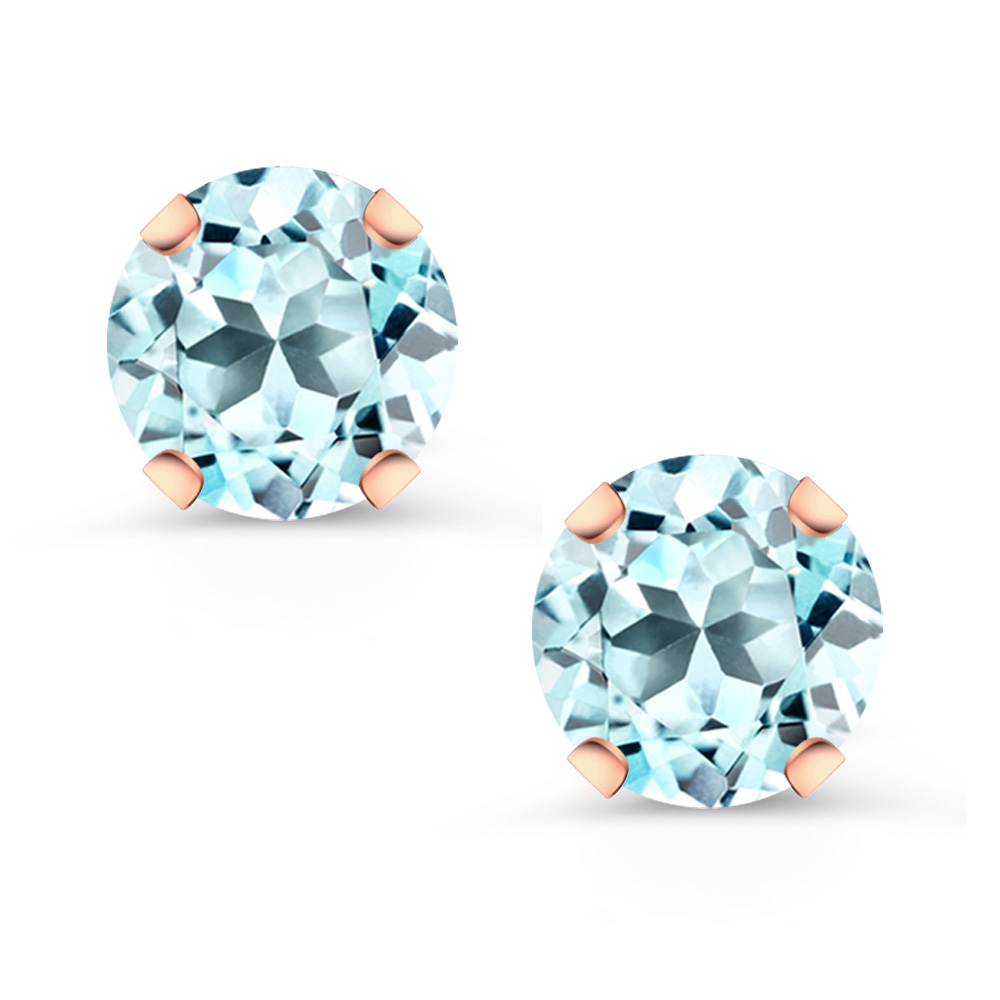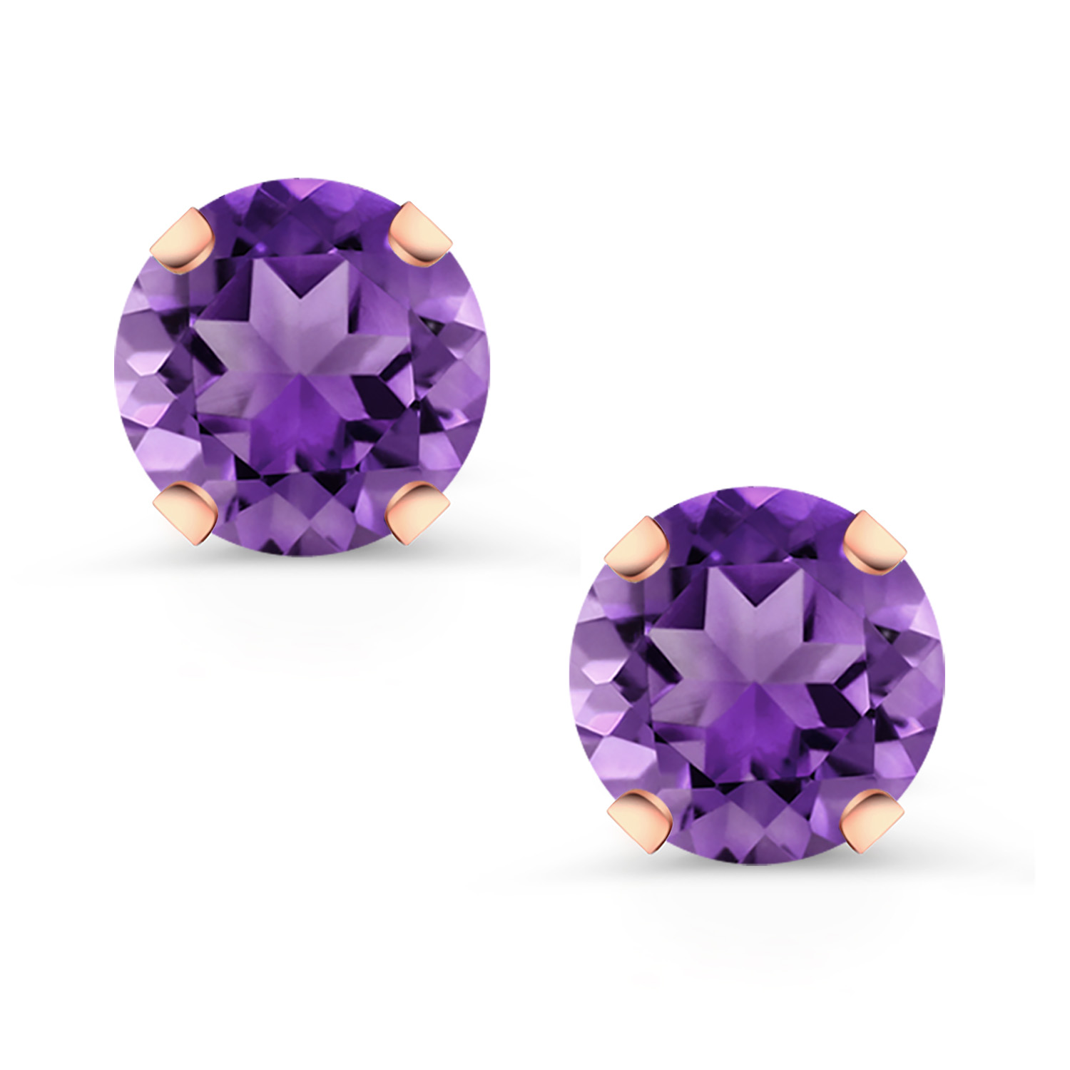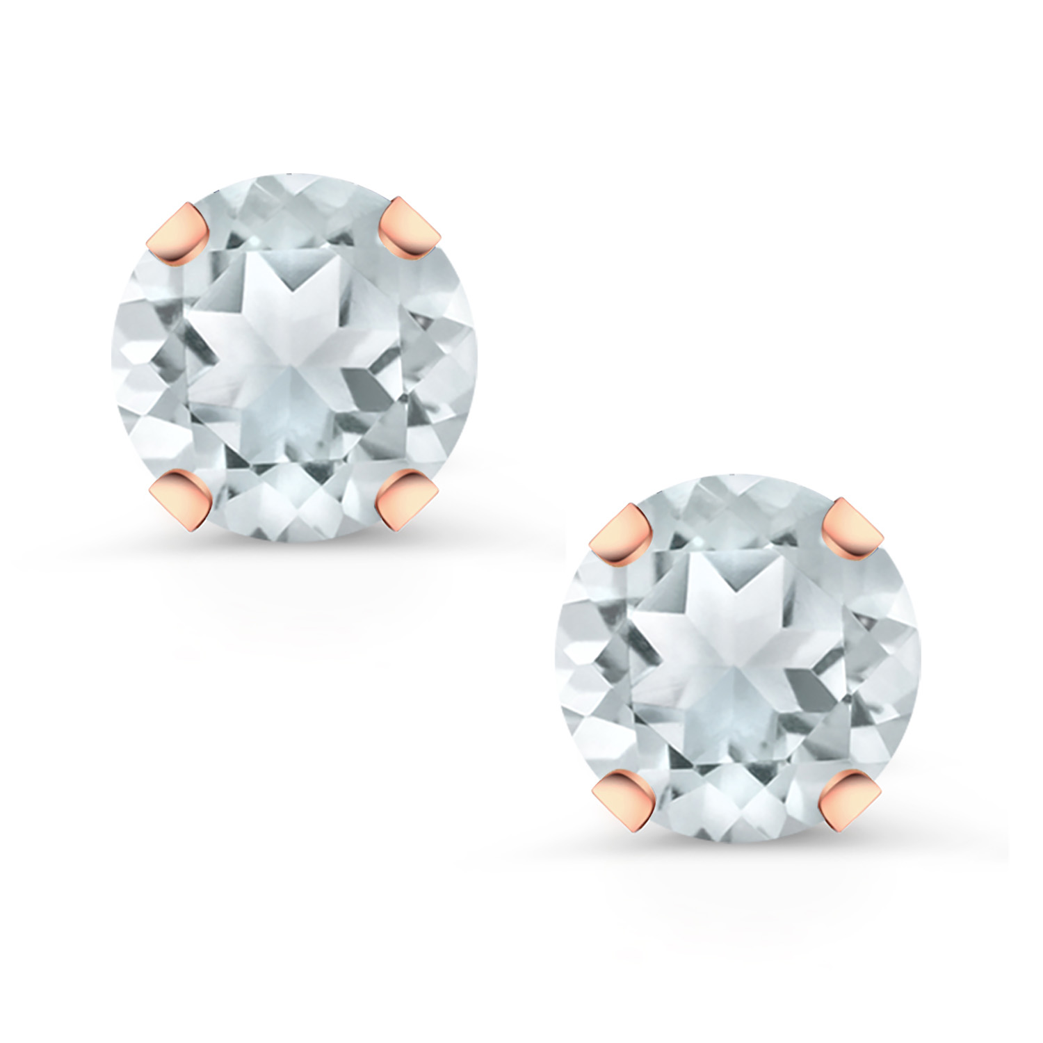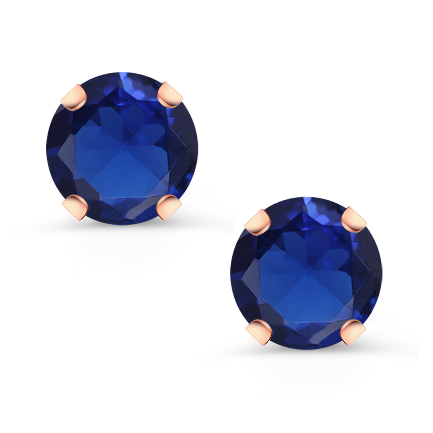 10K Rose Gold Gemstone Birthstone Stud Earrings | Round 5MM | Gold Earrings For Women Men