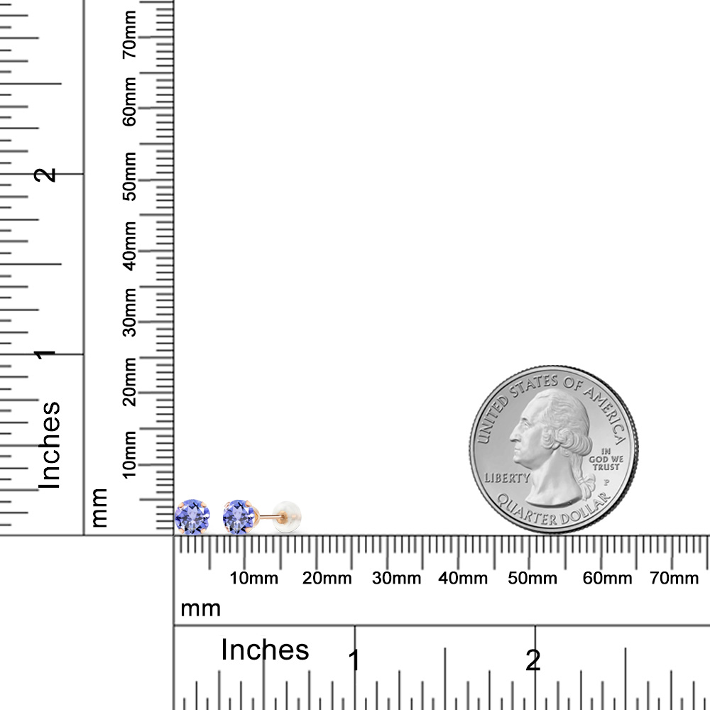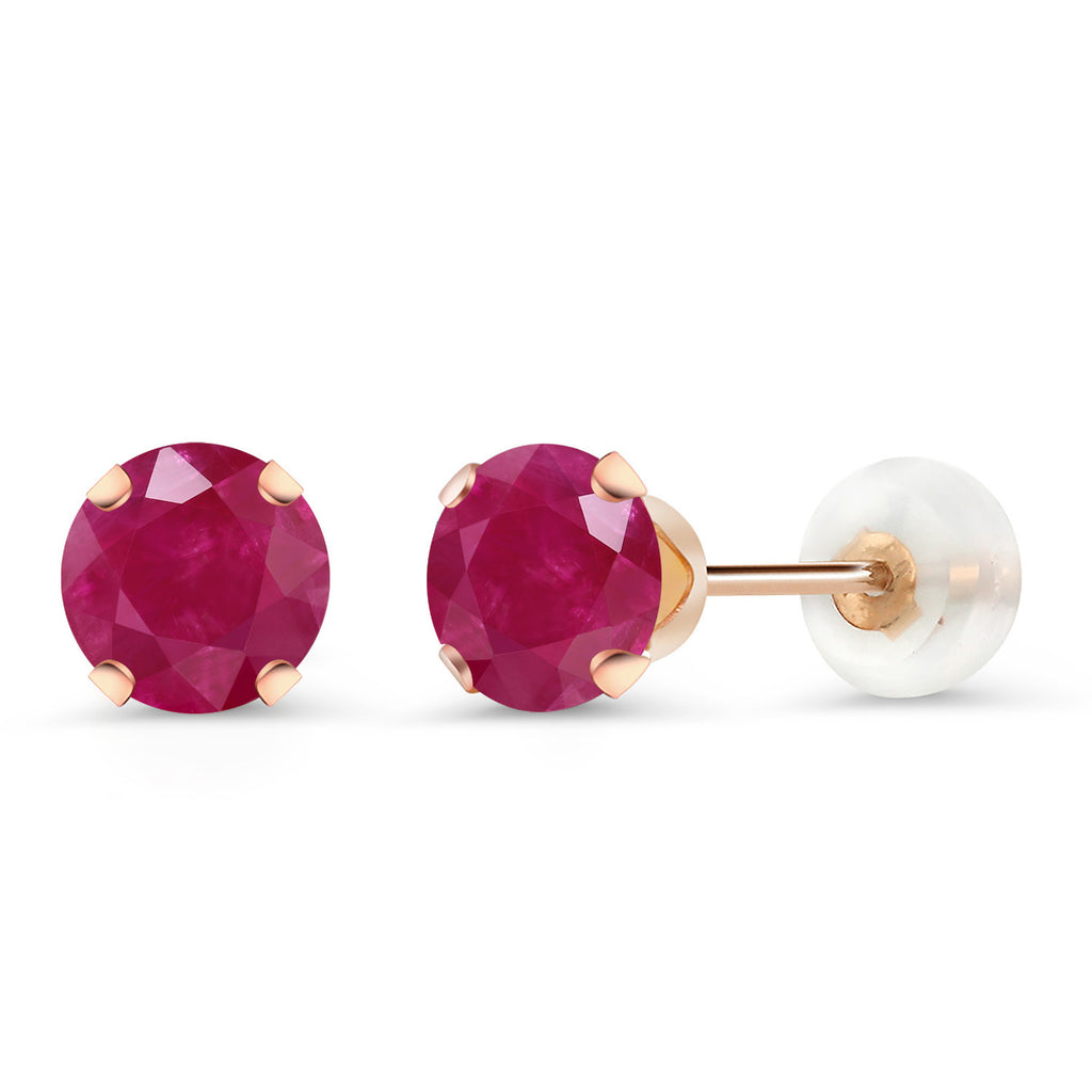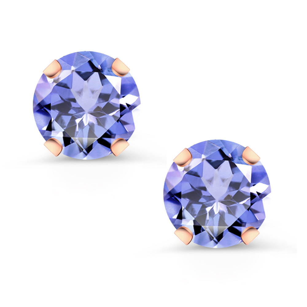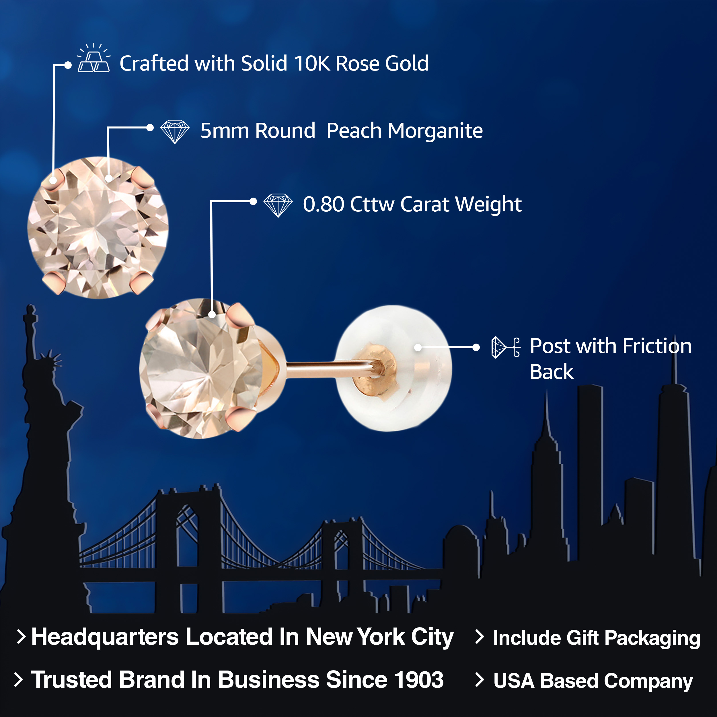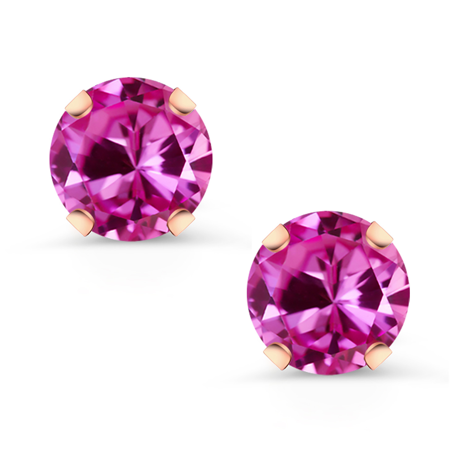 10K Rose Gold Gemstone Birthstone Stud Earrings | Round 5MM | Gold Earrings For Women Men