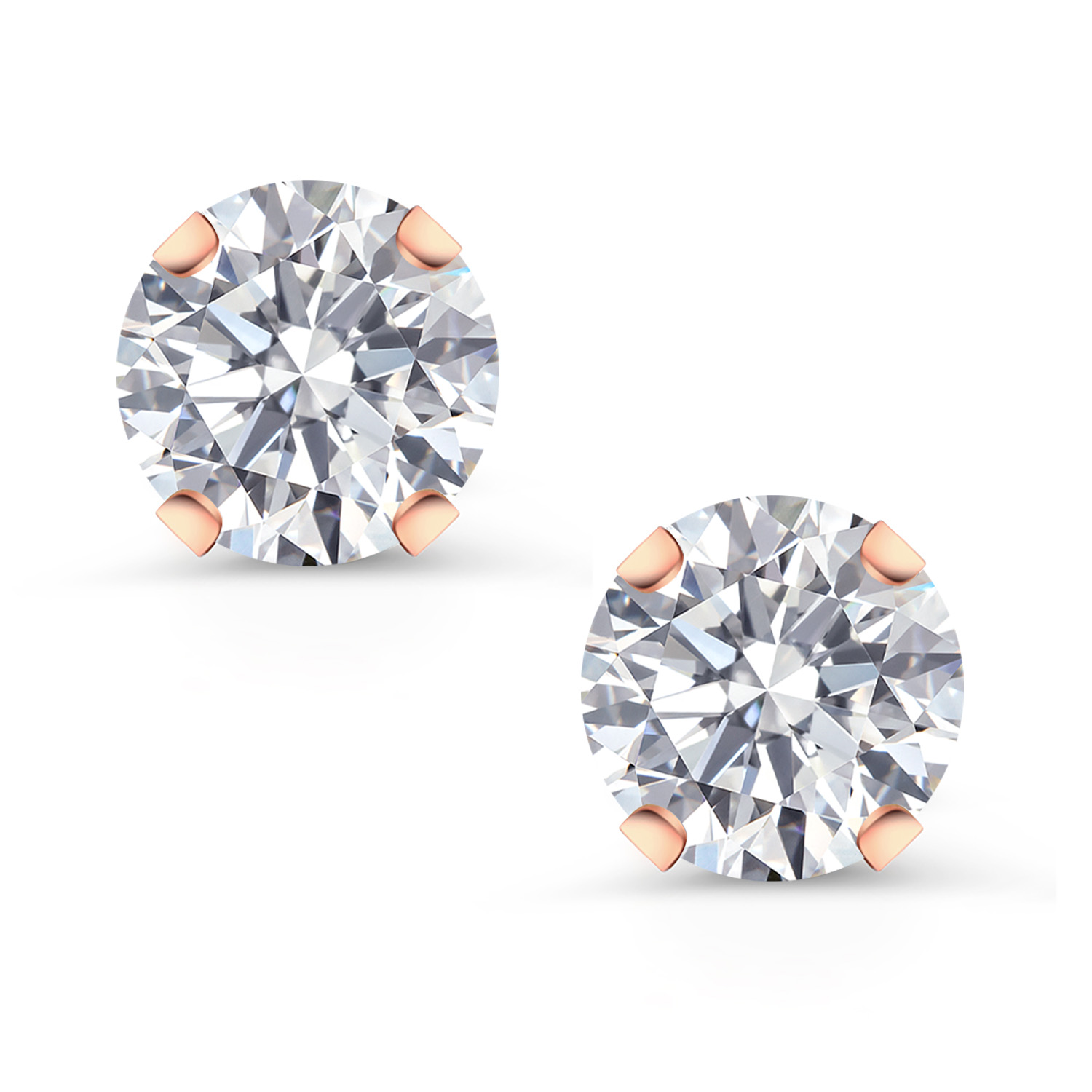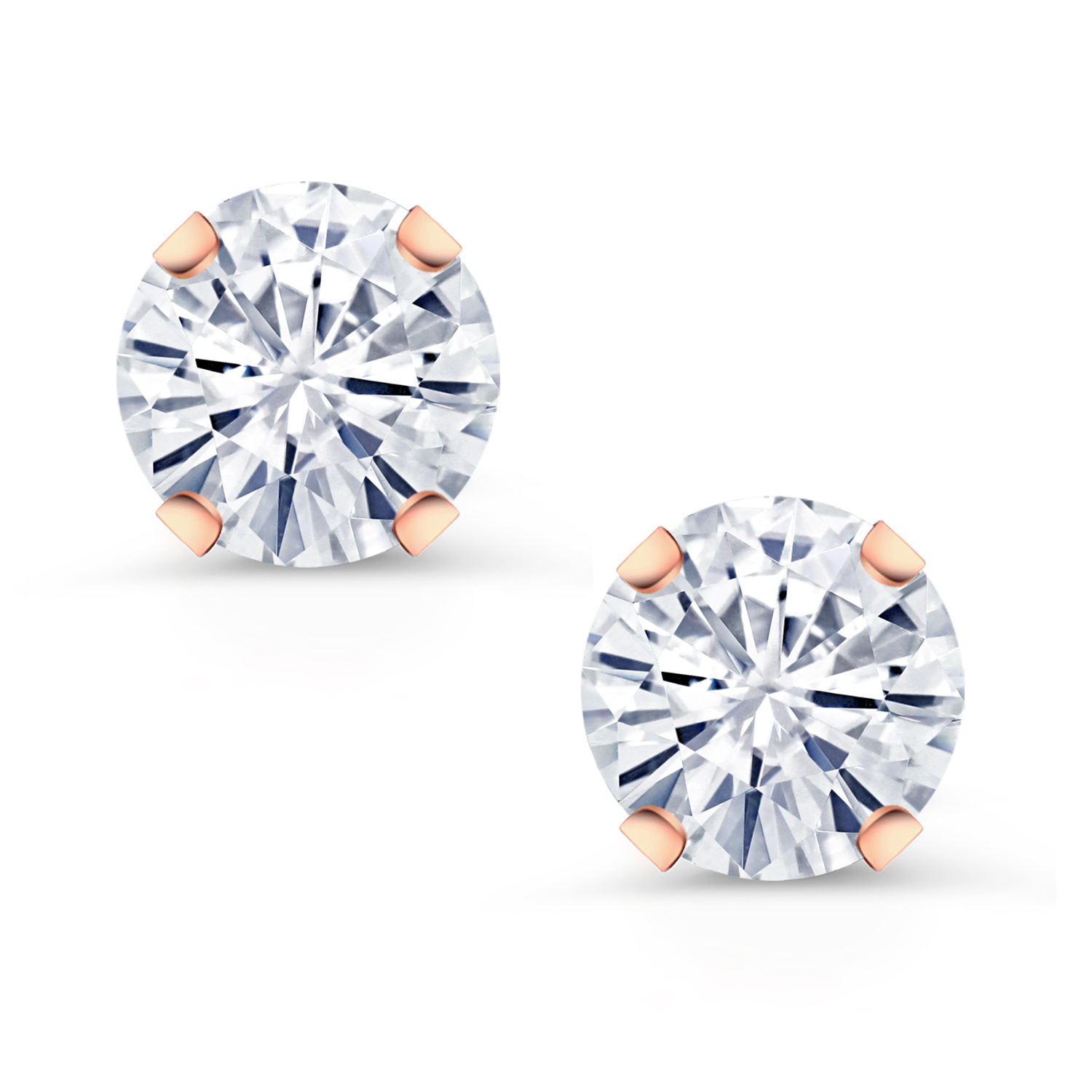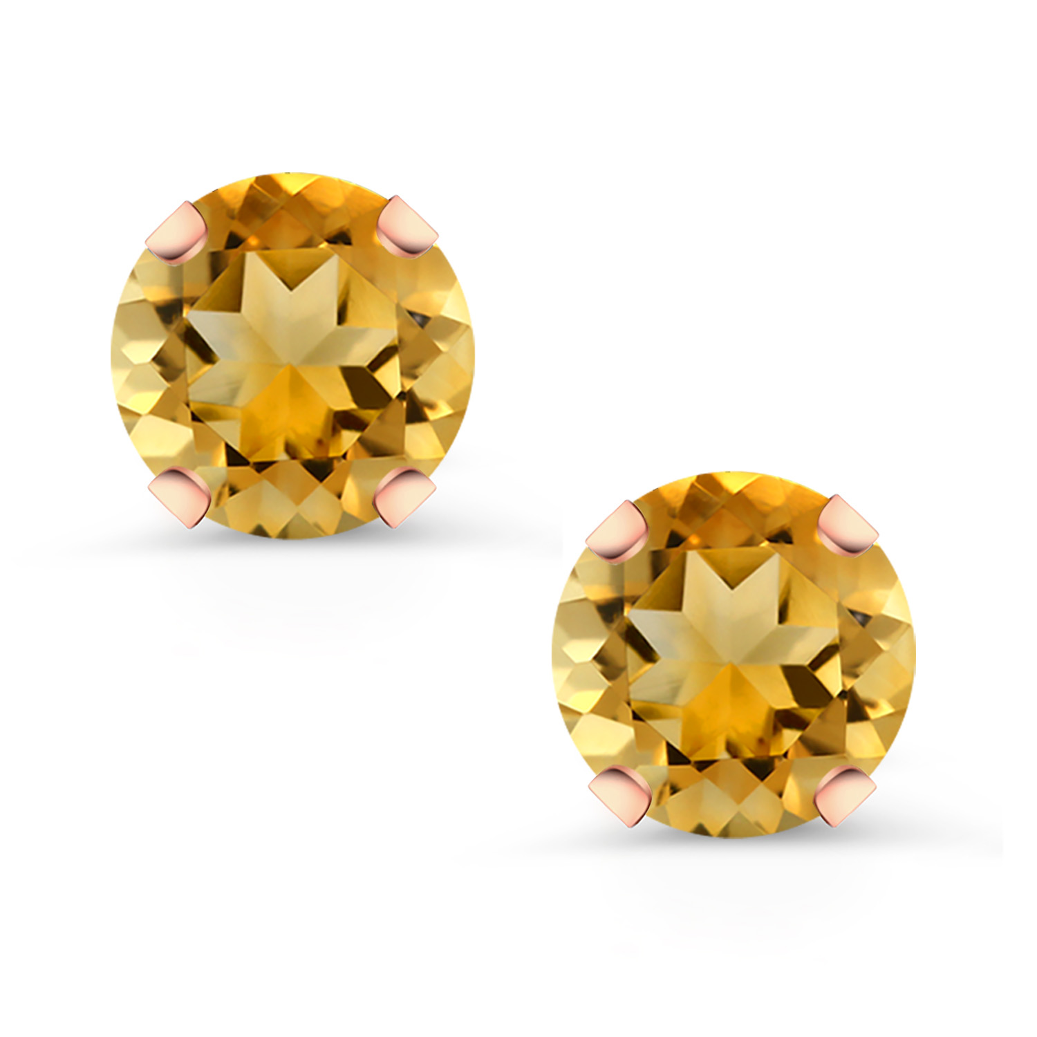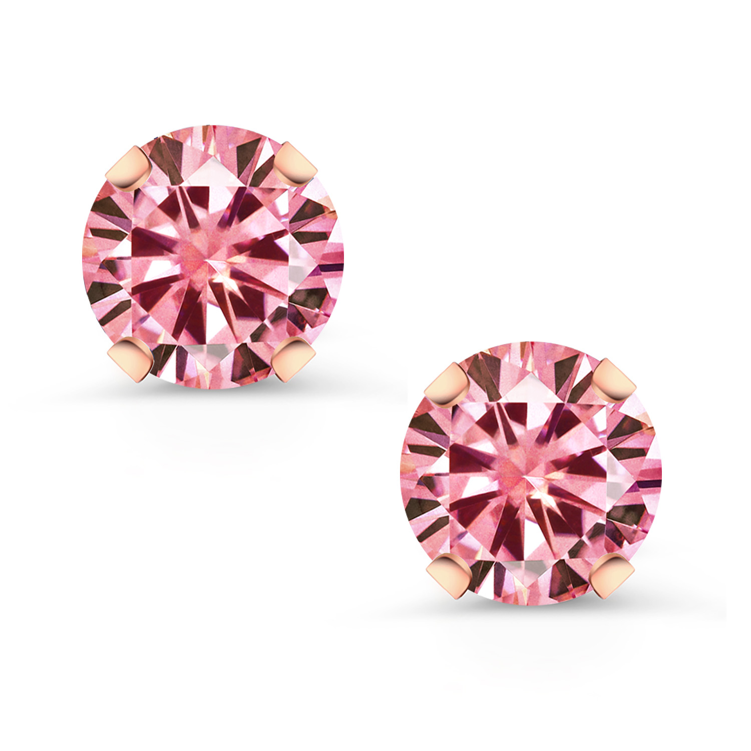 10K Rose Gold Gemstone Birthstone Stud Earrings | Round 5MM | Gold Earrings For Women Men