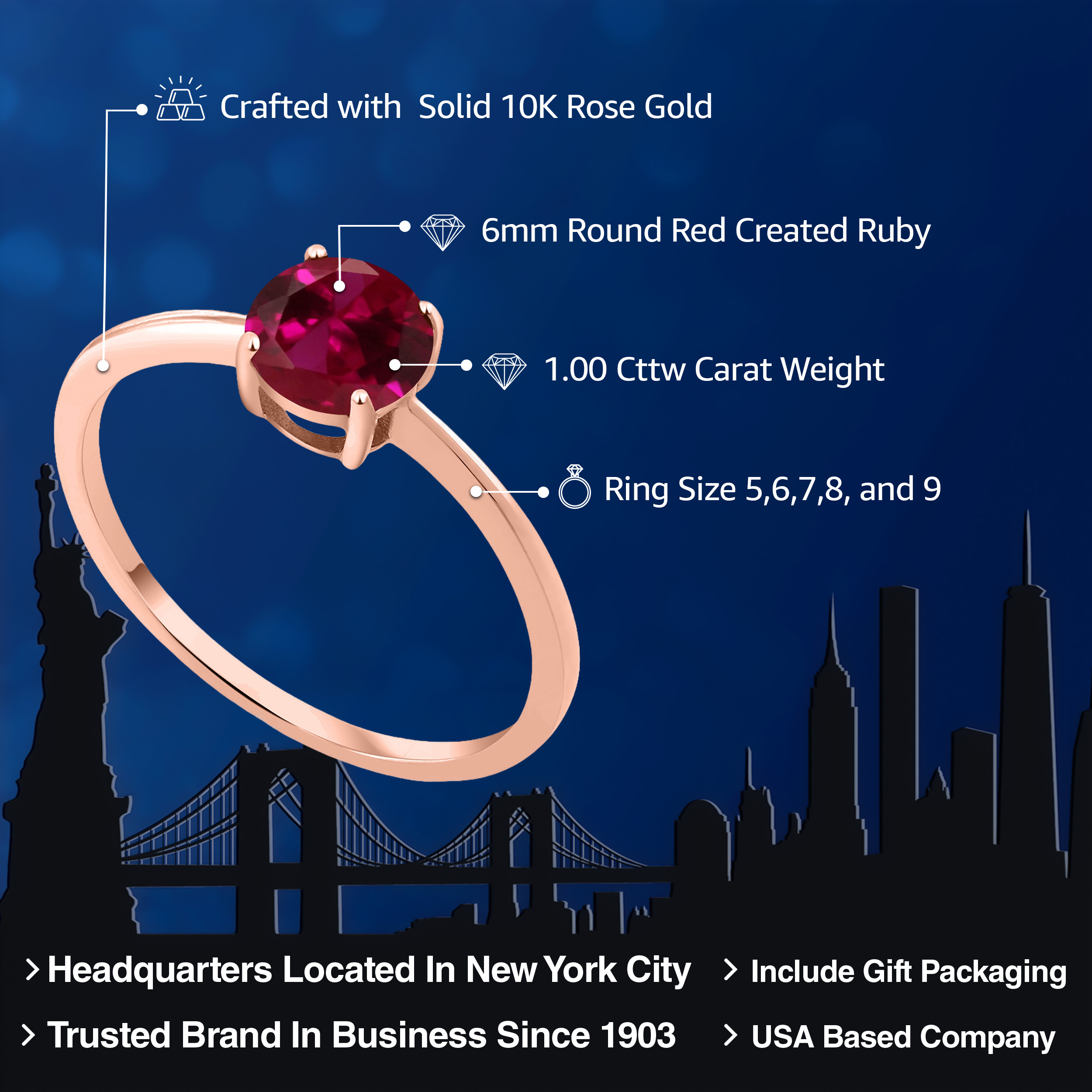 METAL OF THE JEWELRY: Crafted from premium 10K rose gold, this engagement ring combines luxury with durability, offering a timeless and romantic hue that complements the gemstone's brilliance. The rose gold’s lustrous finish adds a touch of sophistication and warmth, appealing to those who appreciate fine craftsmanship and exquisite materials. Its hypoallergenic properties ensure comfort and suitability for everyday wear, making it a perfect choice for sensitive skin.